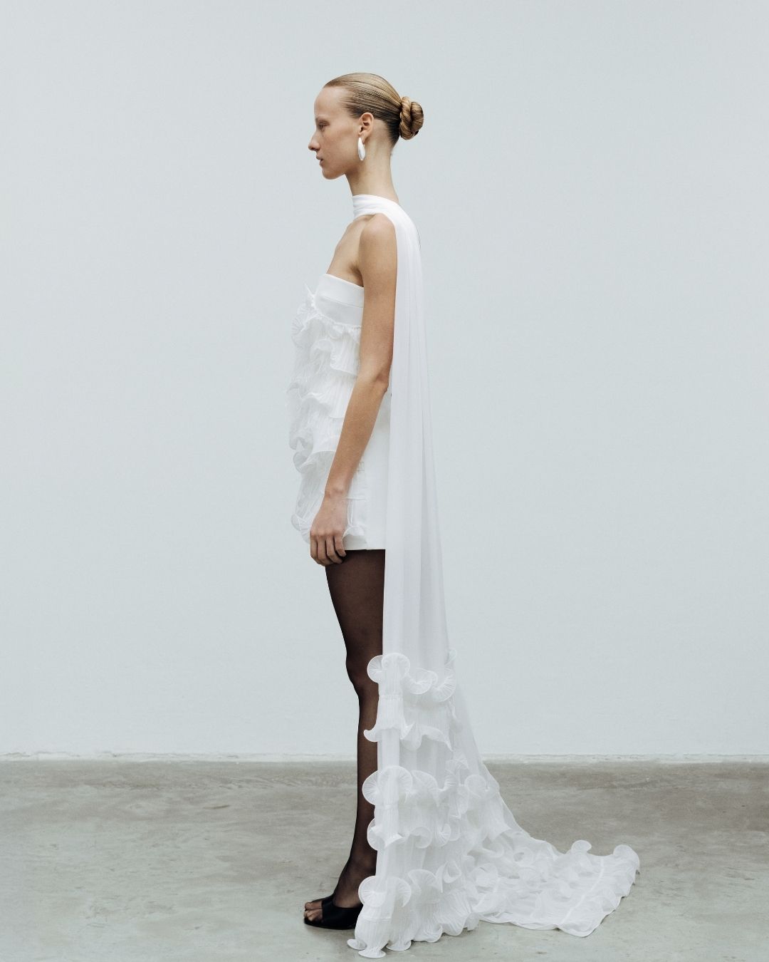 Solene-Lace Mini Dress With Silk Tuxedo Collar
