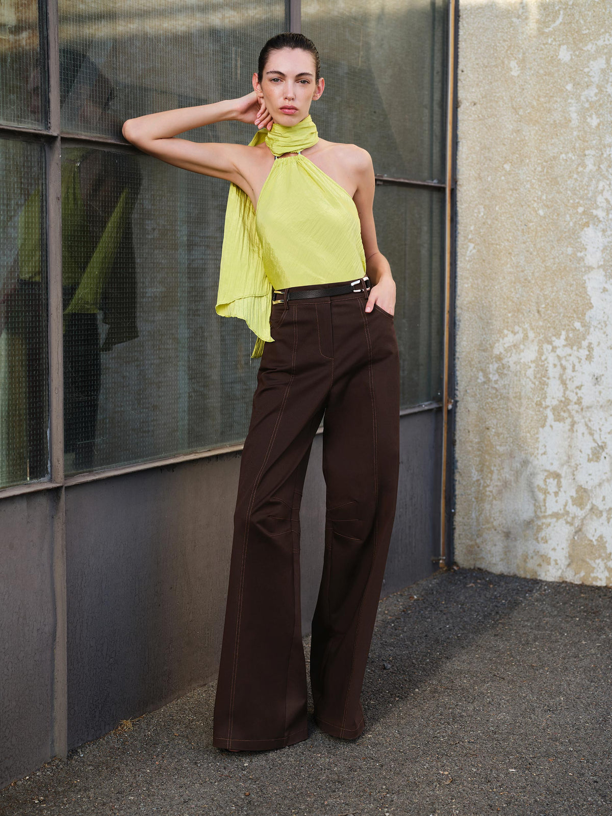 Camia-Feather Trimmed Halter Neck Mini Dress