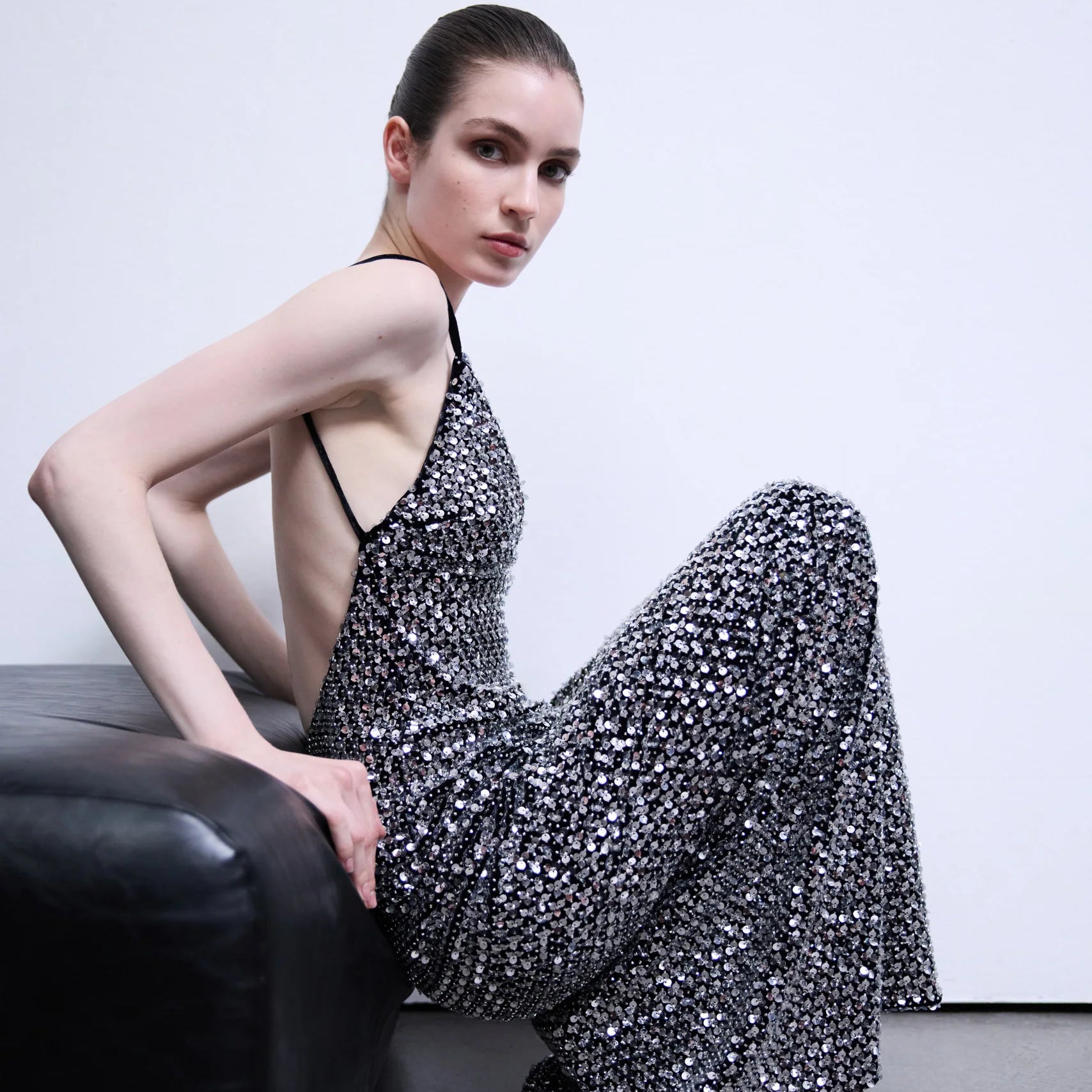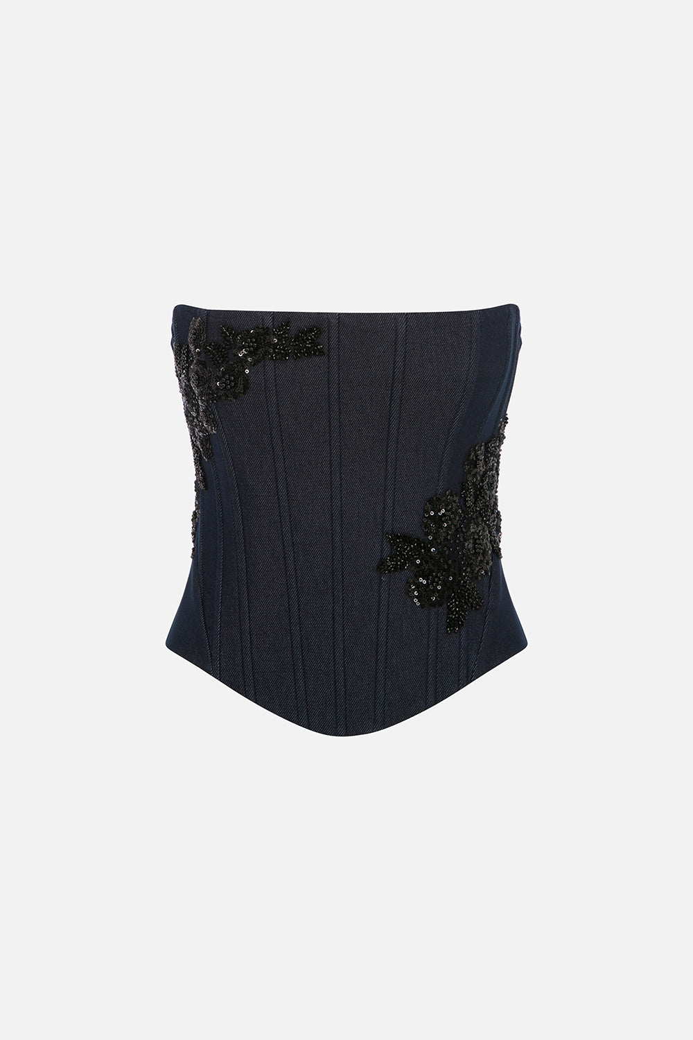 Mai - Strapless Mini Sequin Dress in Navy Blue