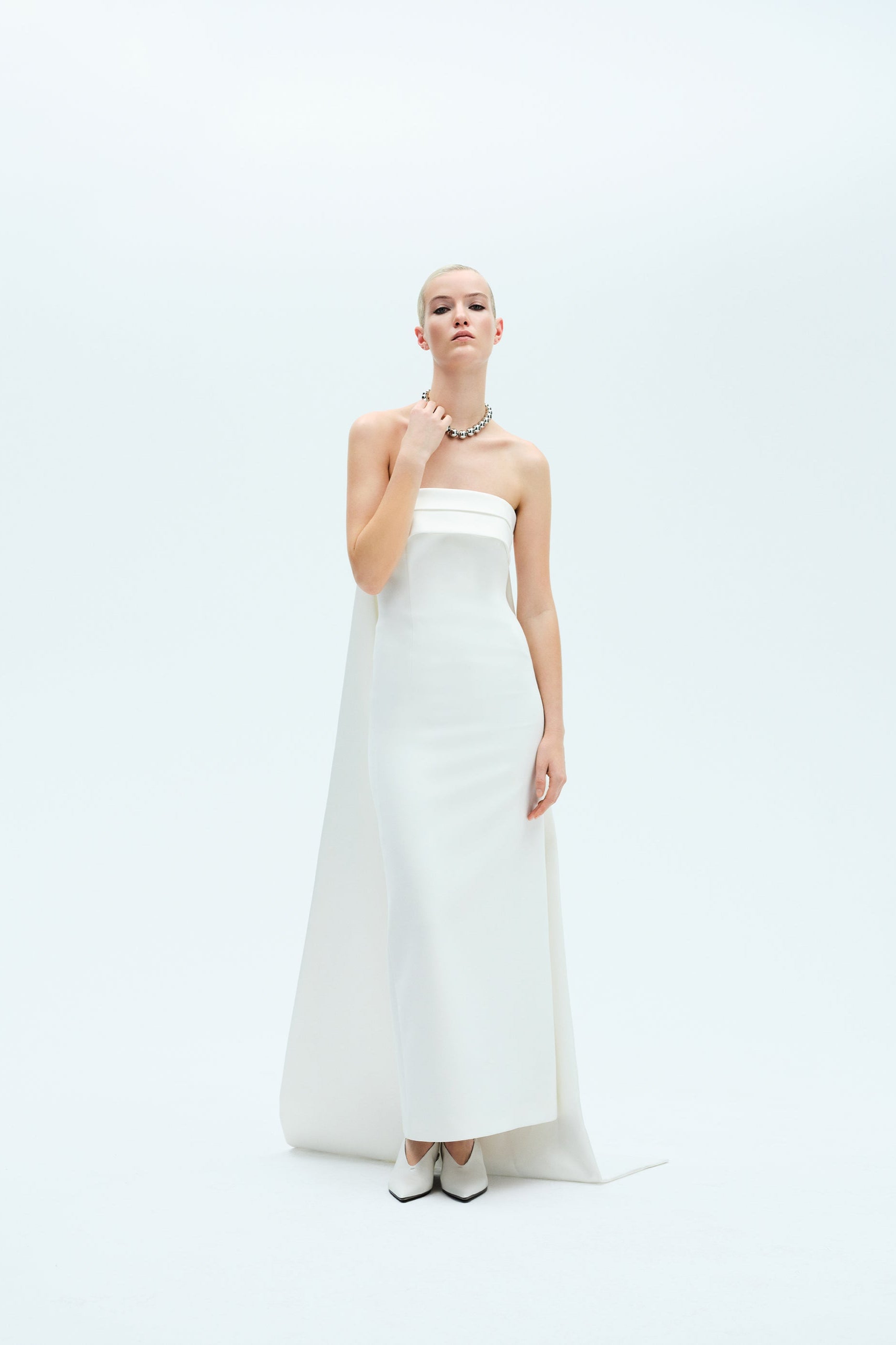 Arielle - Strapless Midi Dress With Long Train On The Back
