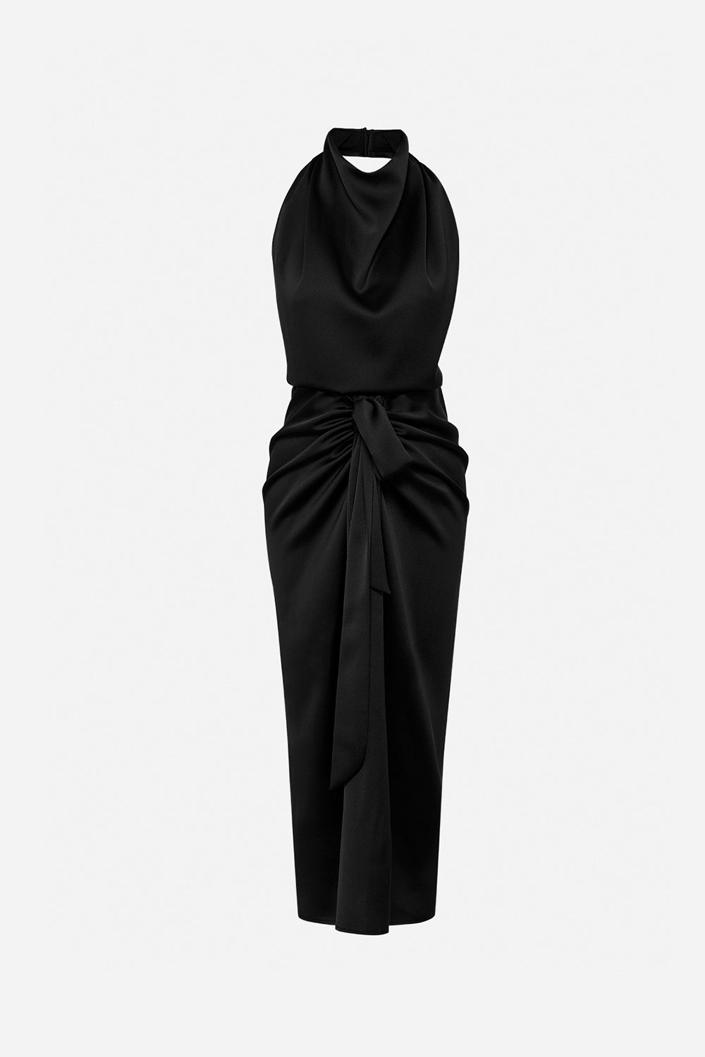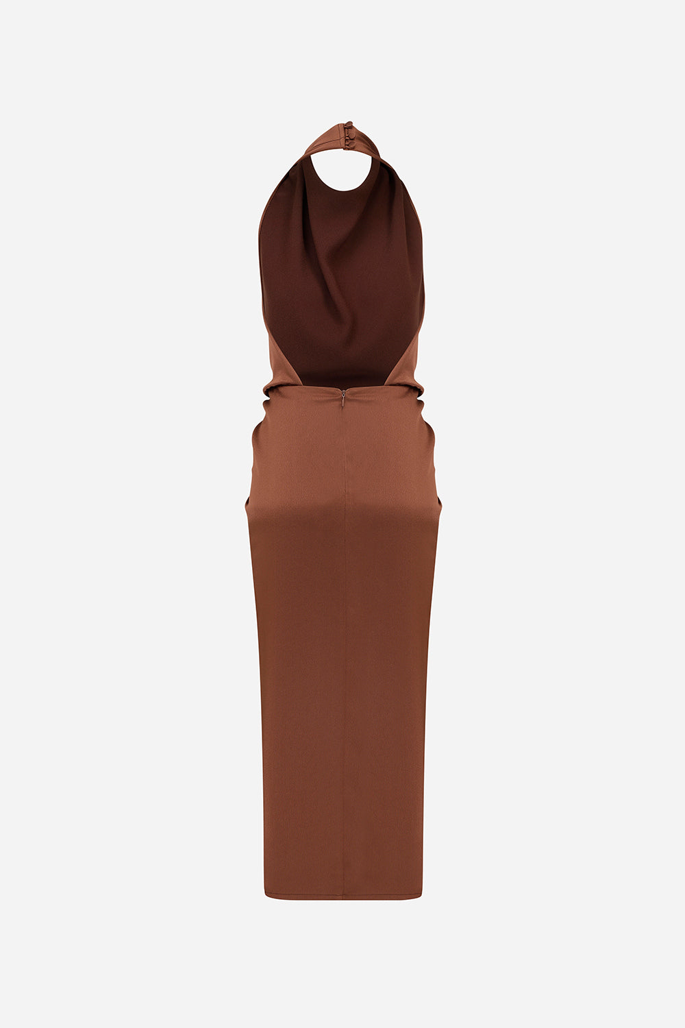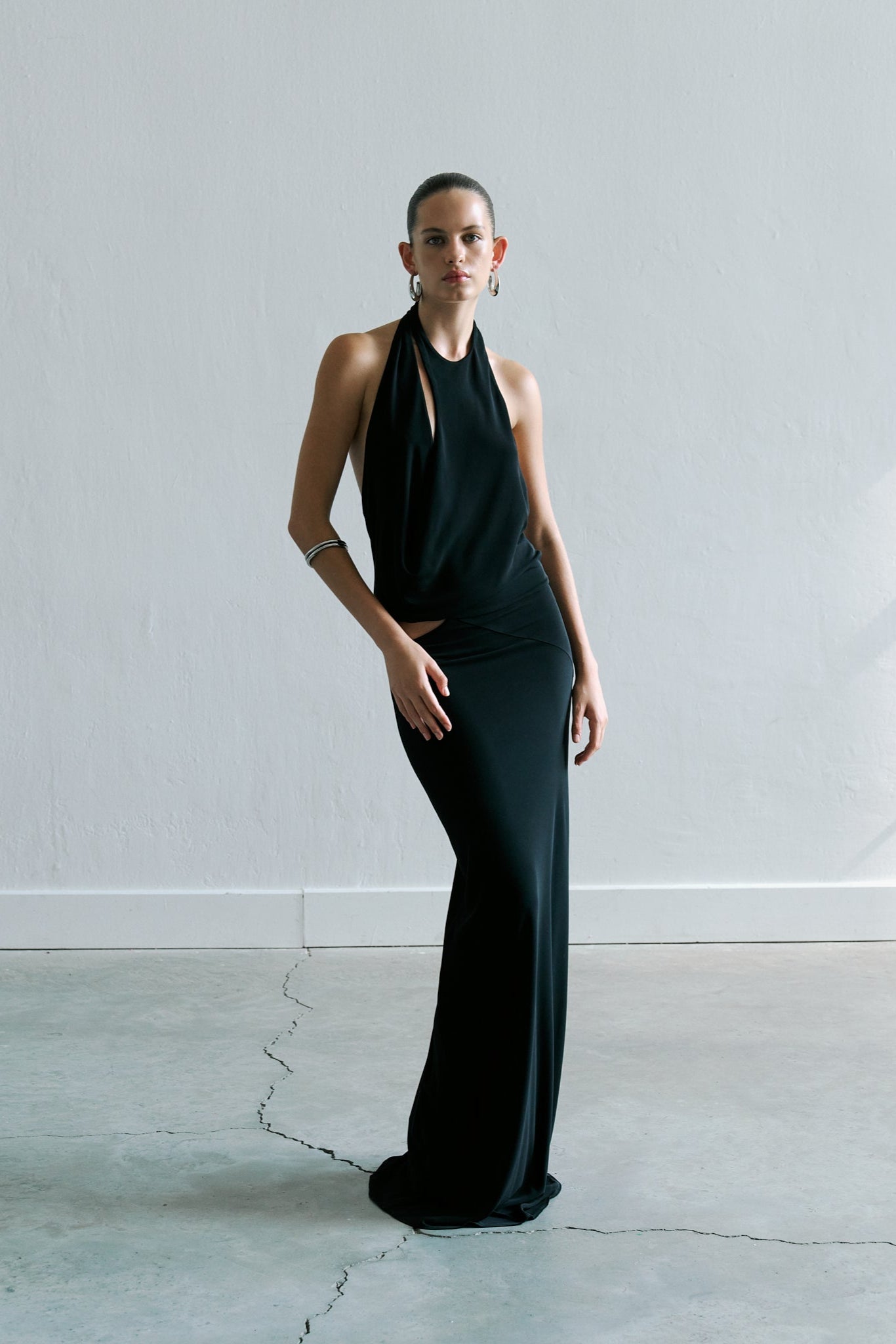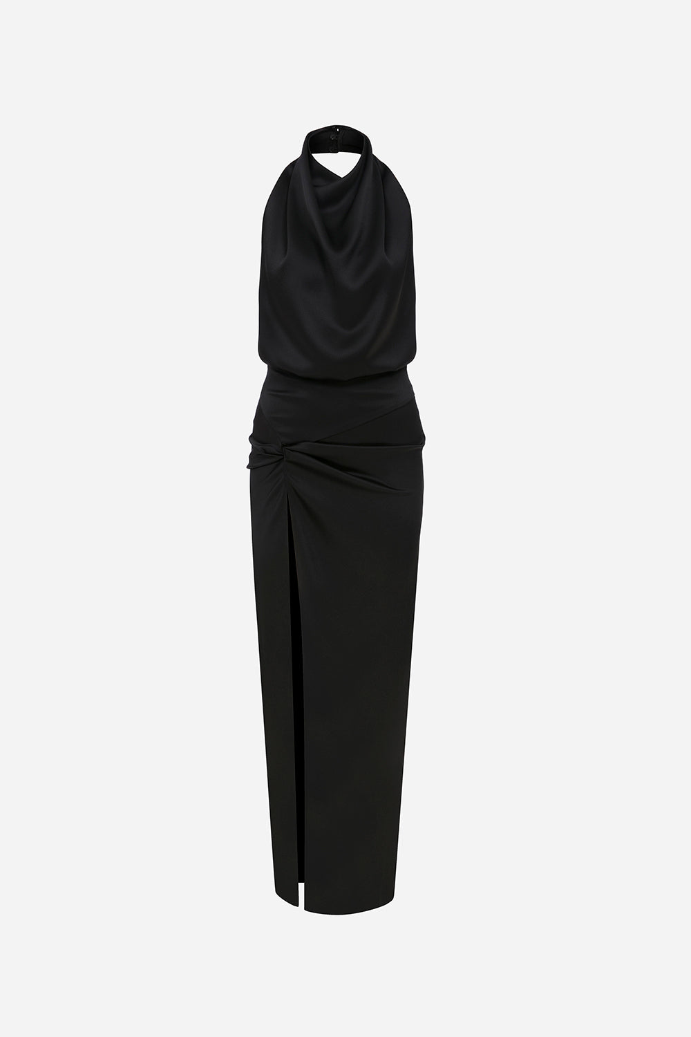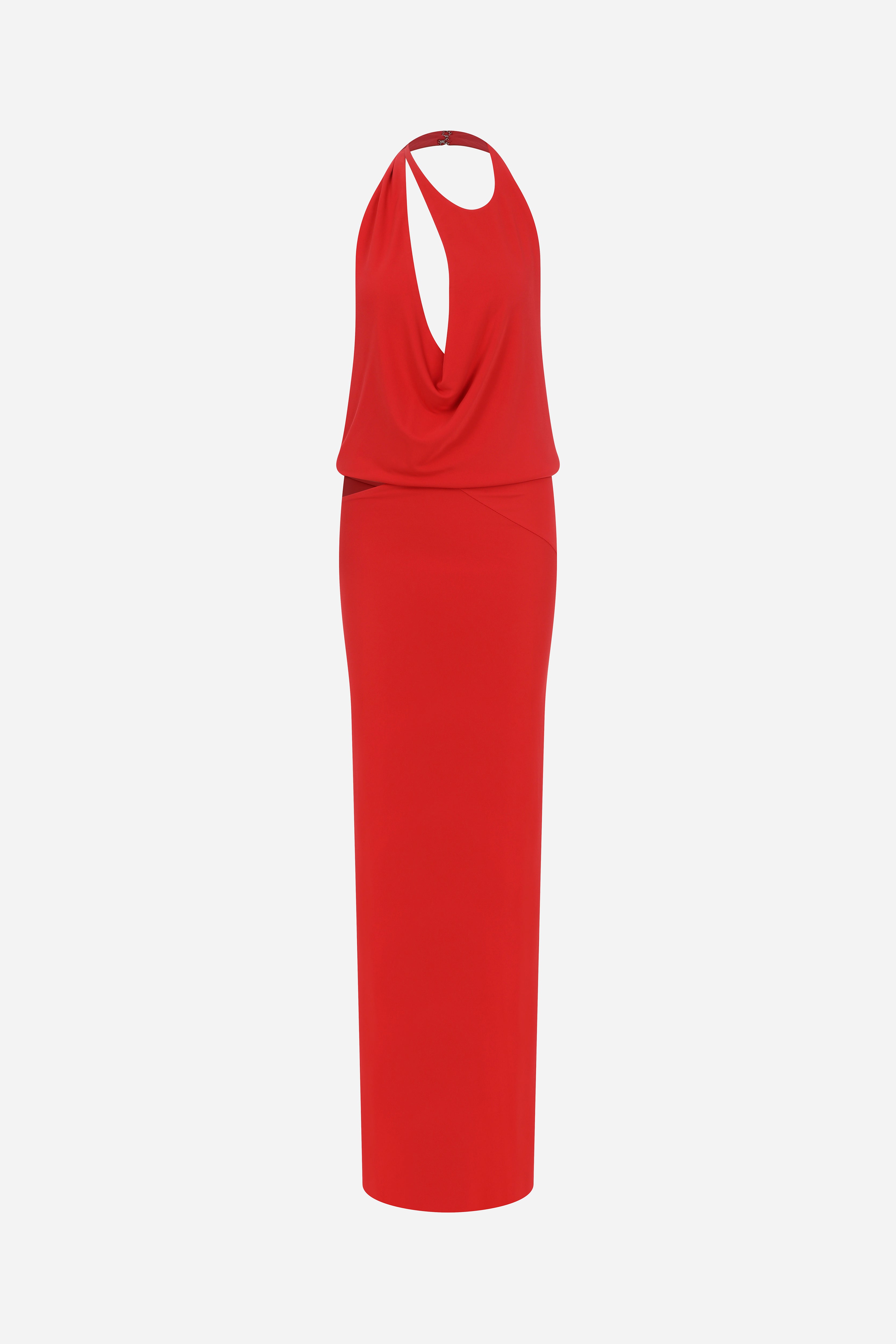 Anya - Cowl Neck Maxi Jersey Dress with Cut-Outs