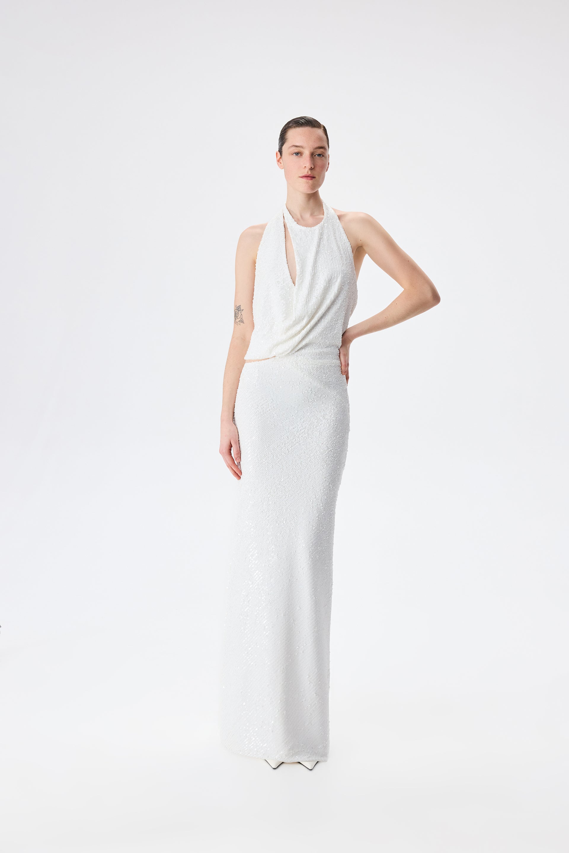 Anya - Cowl Neck Maxi Sequin Dress with Cut-Outs