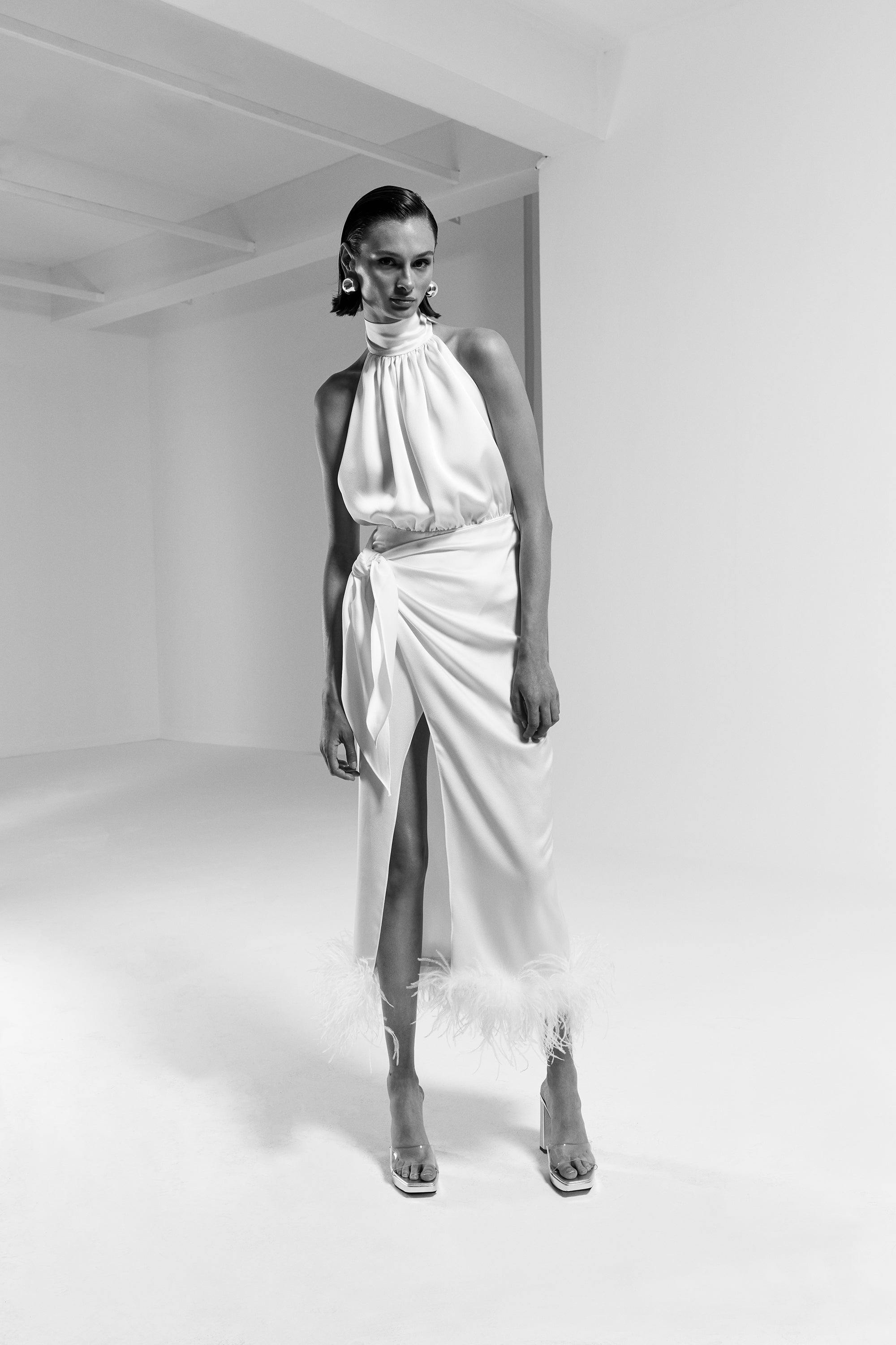 Amanda - Wrap Up Backless Dress with Ostrich Details