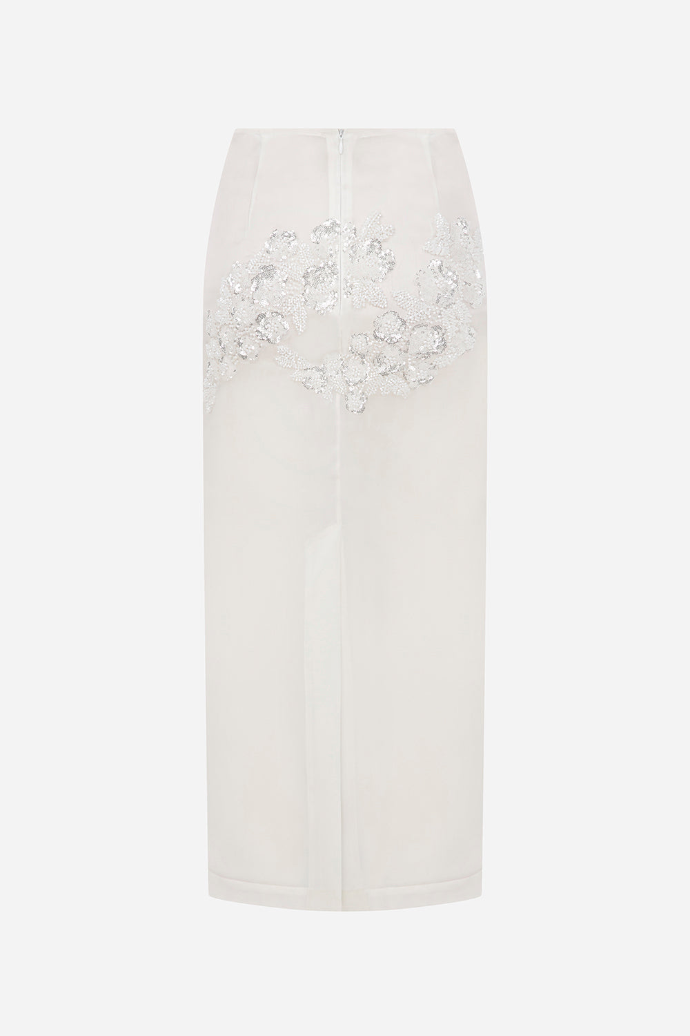 - Applique Detailed Silk Organza Pencil Skirt
