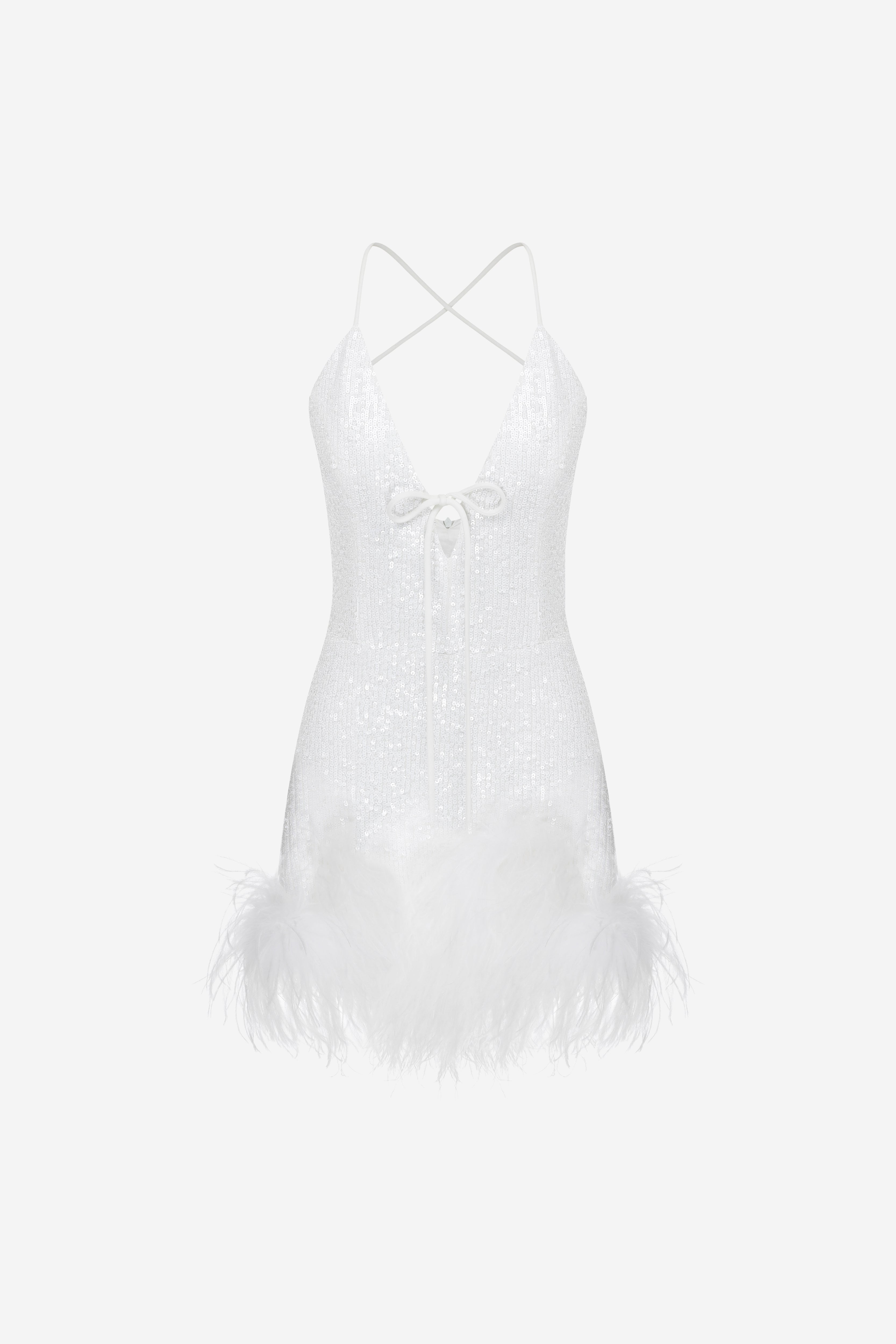 Tulip - V Neck Mini Sequin Dress With Feather Trim