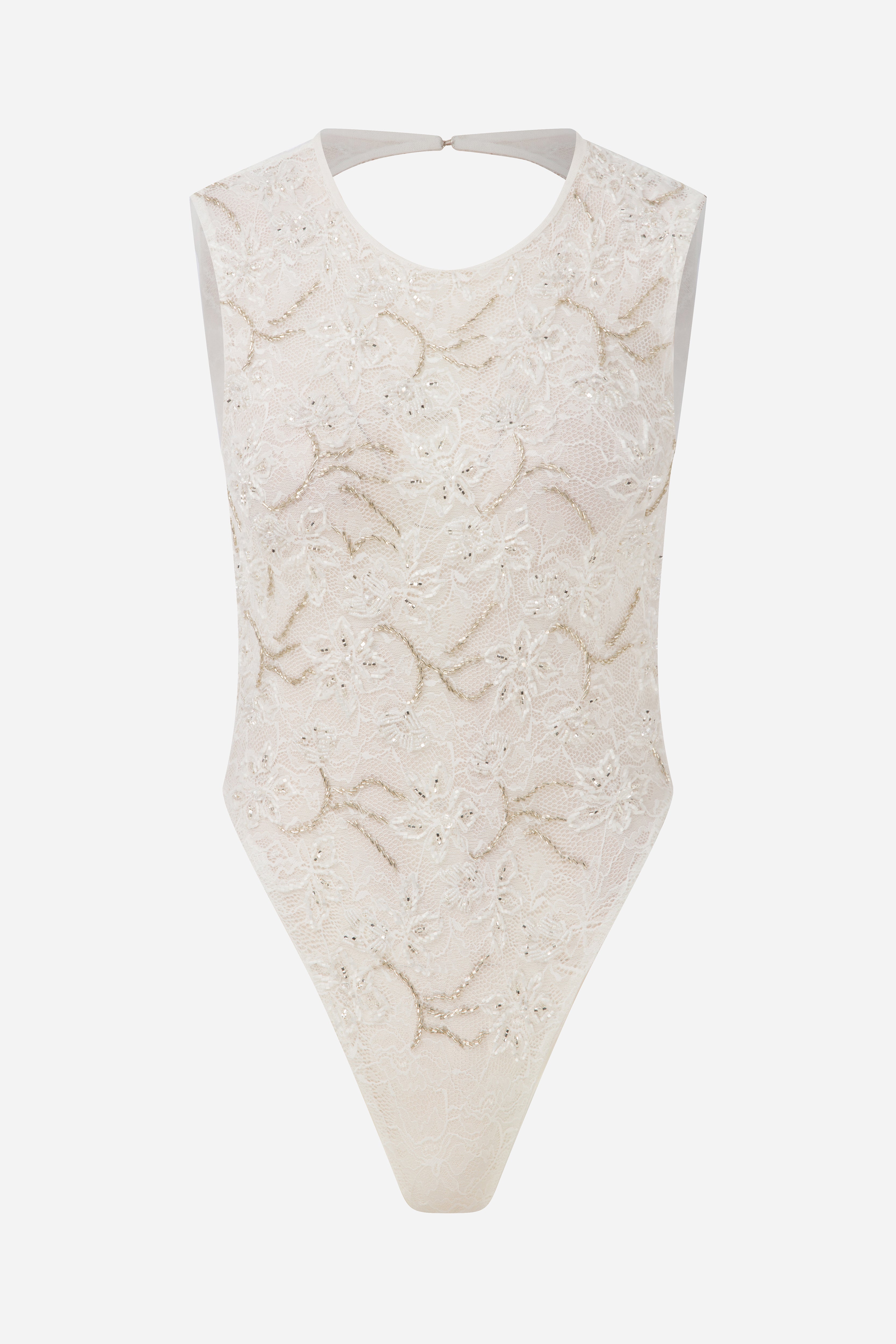 Naomi - Hand-Embroidered Backless Lace Bodysuit