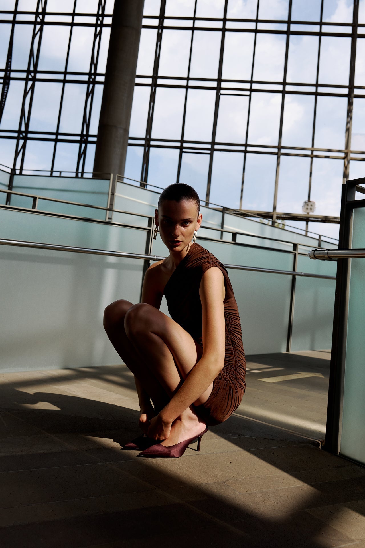 Teresa - Drapped Detailed One Shoulder Mini Jersey Dress
