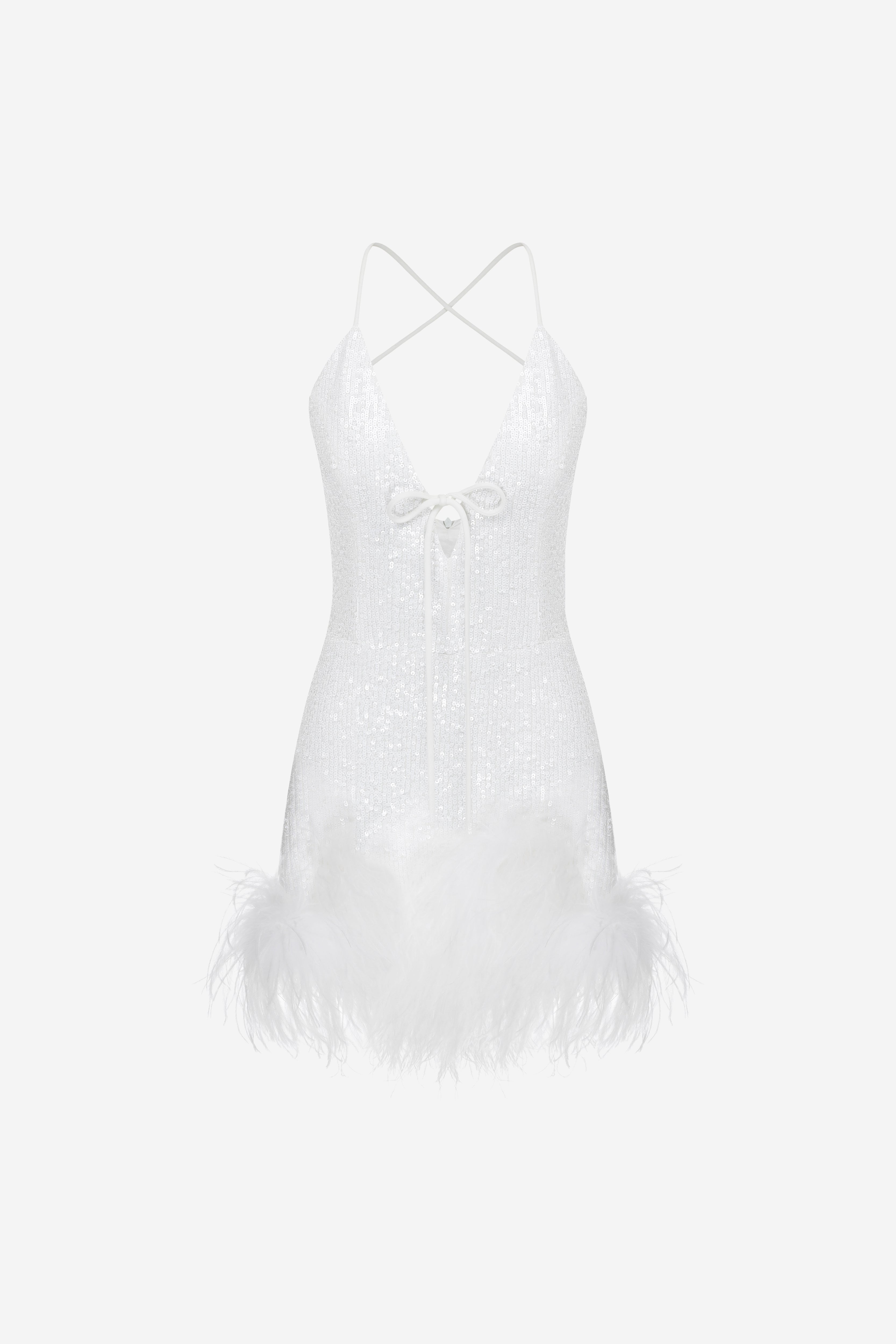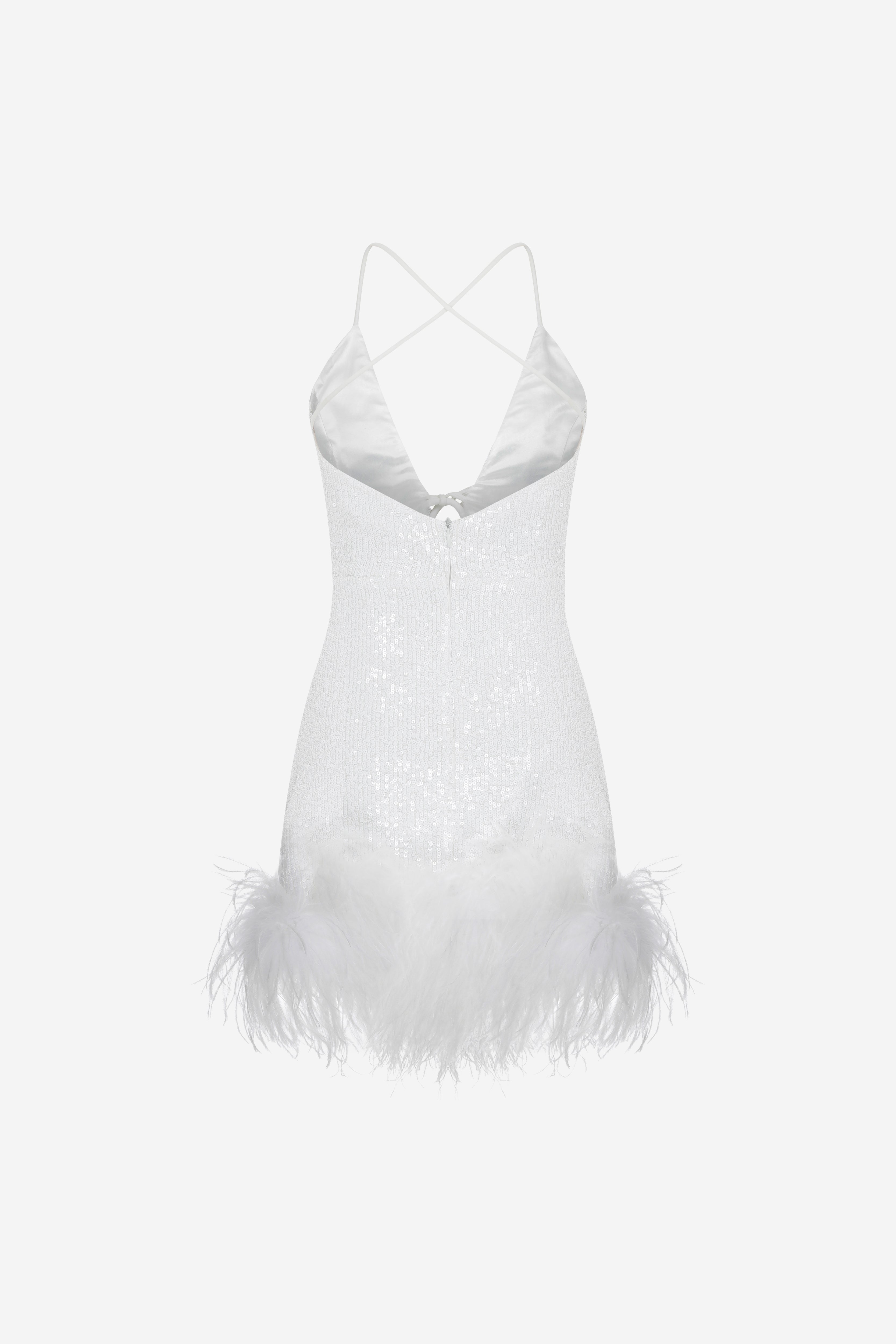 Tulip - V Neck Mini Sequin Dress With Feather Trim