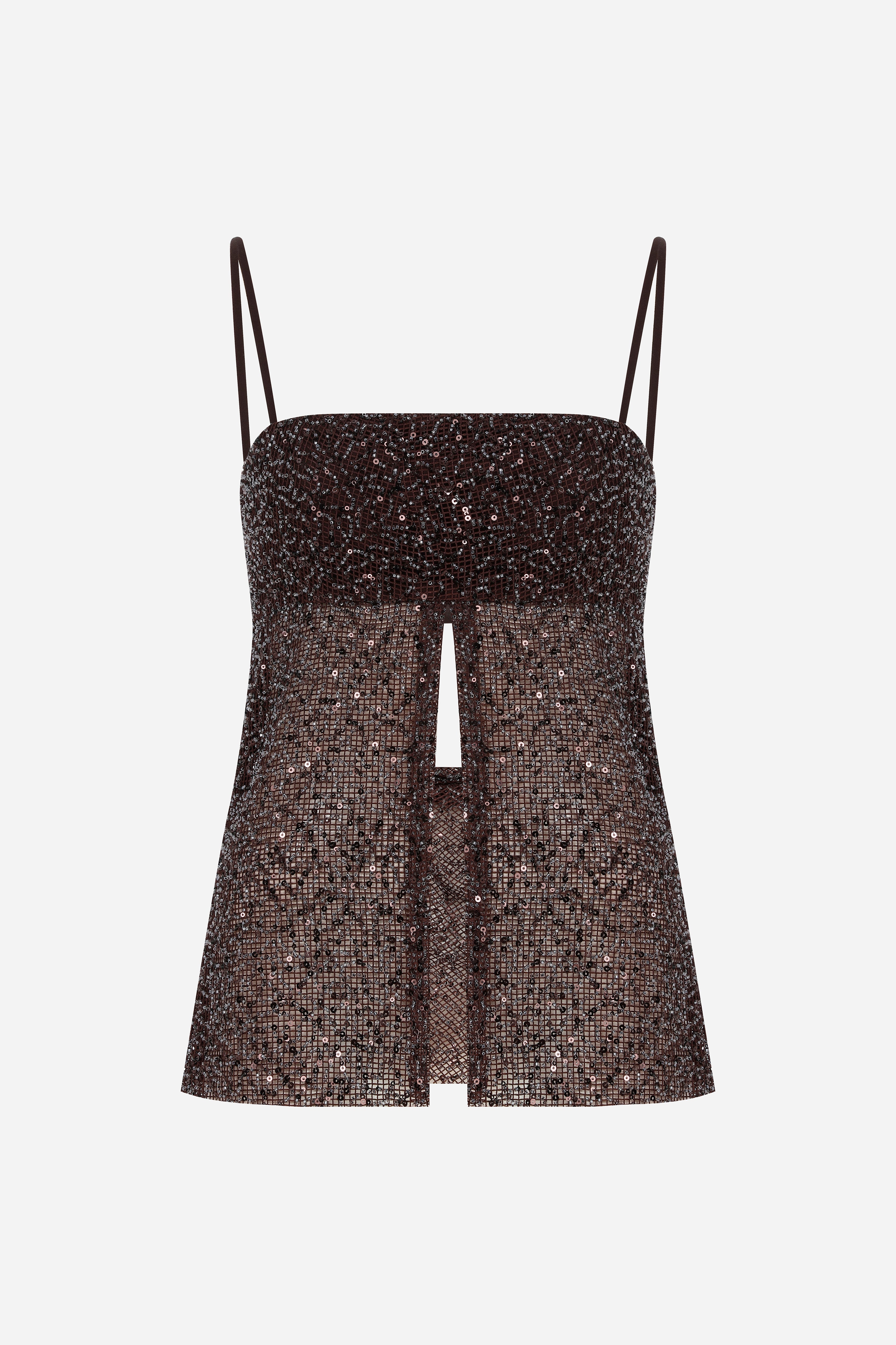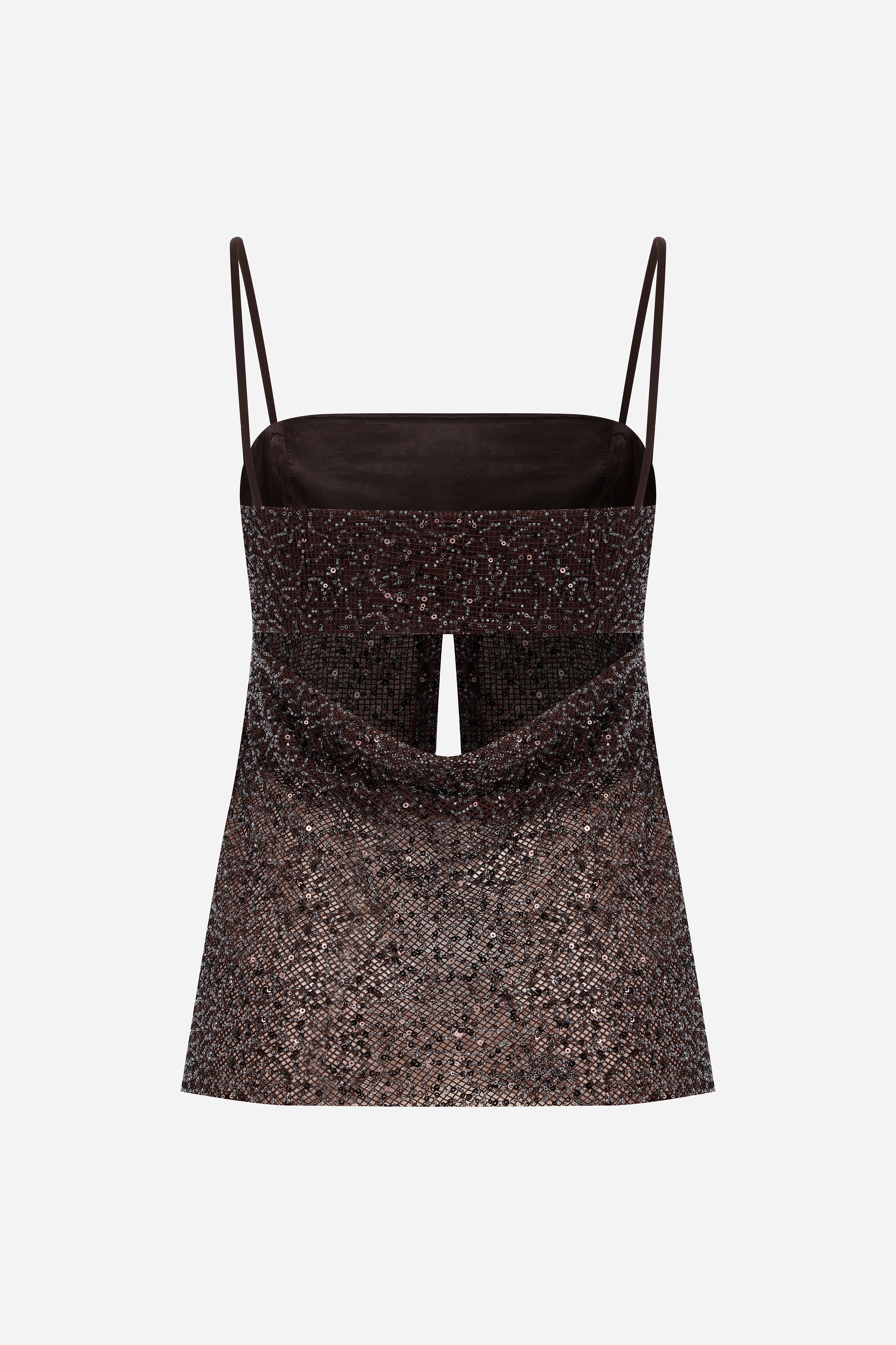 Asita - Sequin Top with Front Slit and Cowl Back in Brown