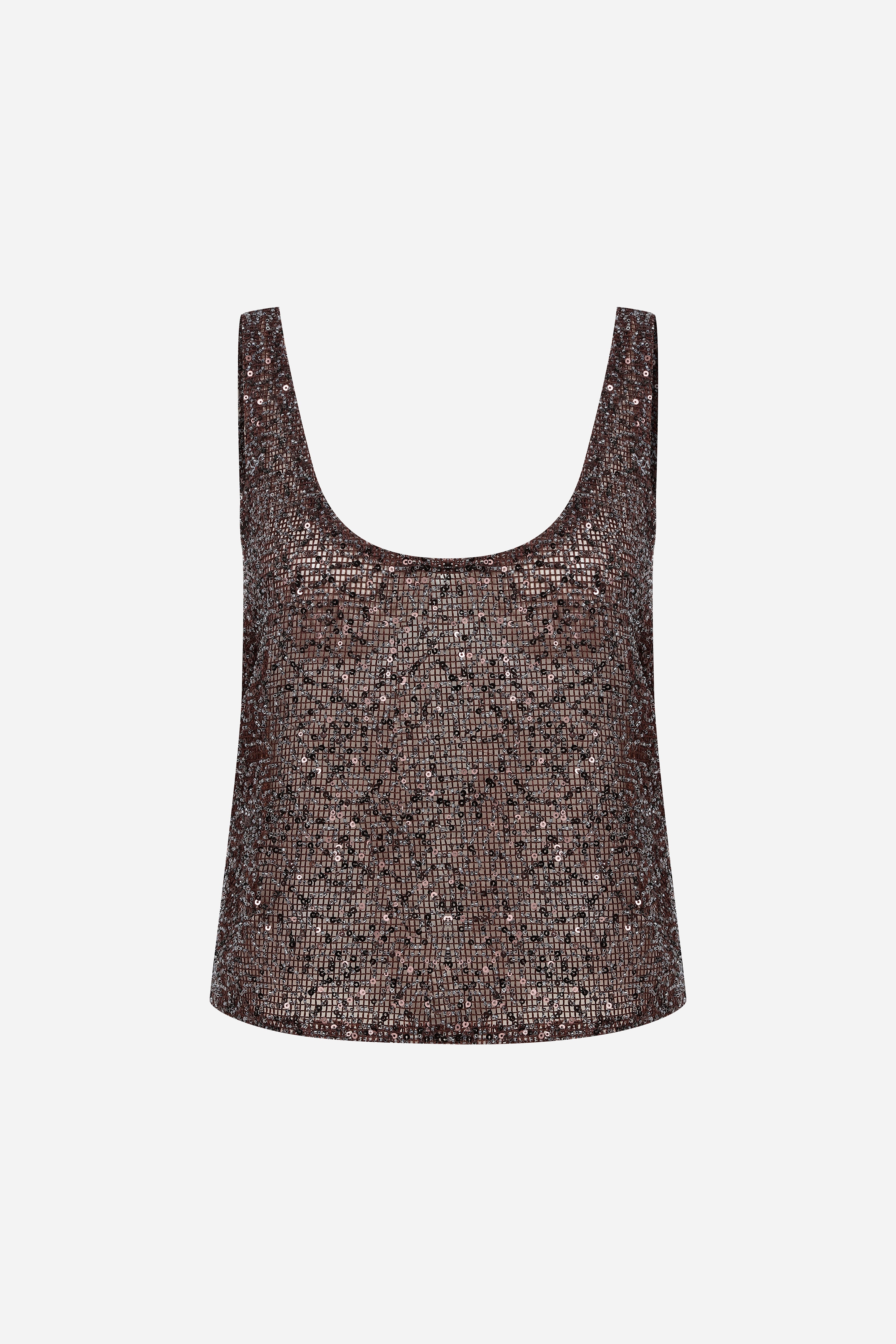 Lend - U-Neck Sequin Tank Top in Brown