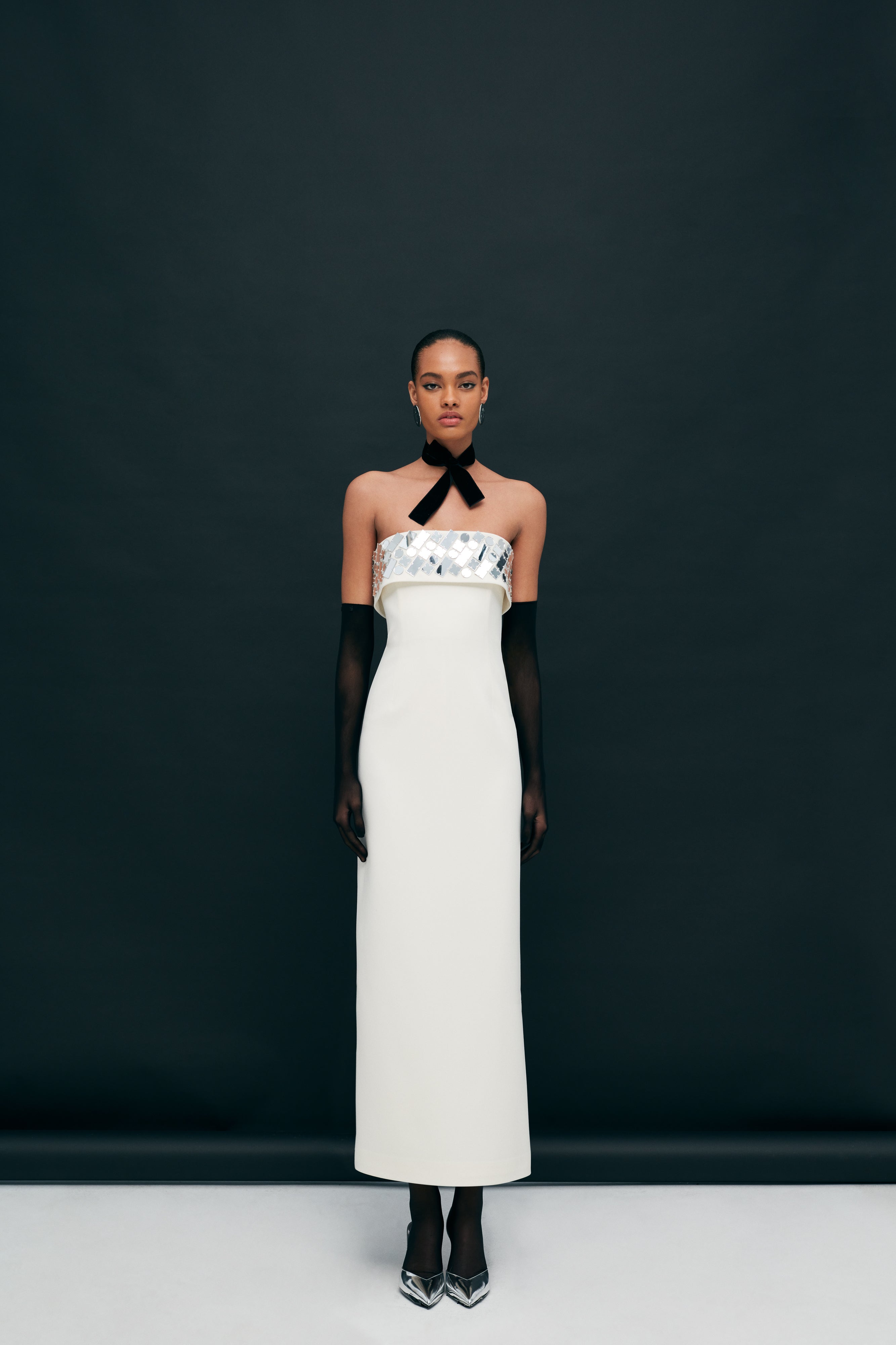Grace - Strapless Midi Dress With Hand Stitched Mirrors