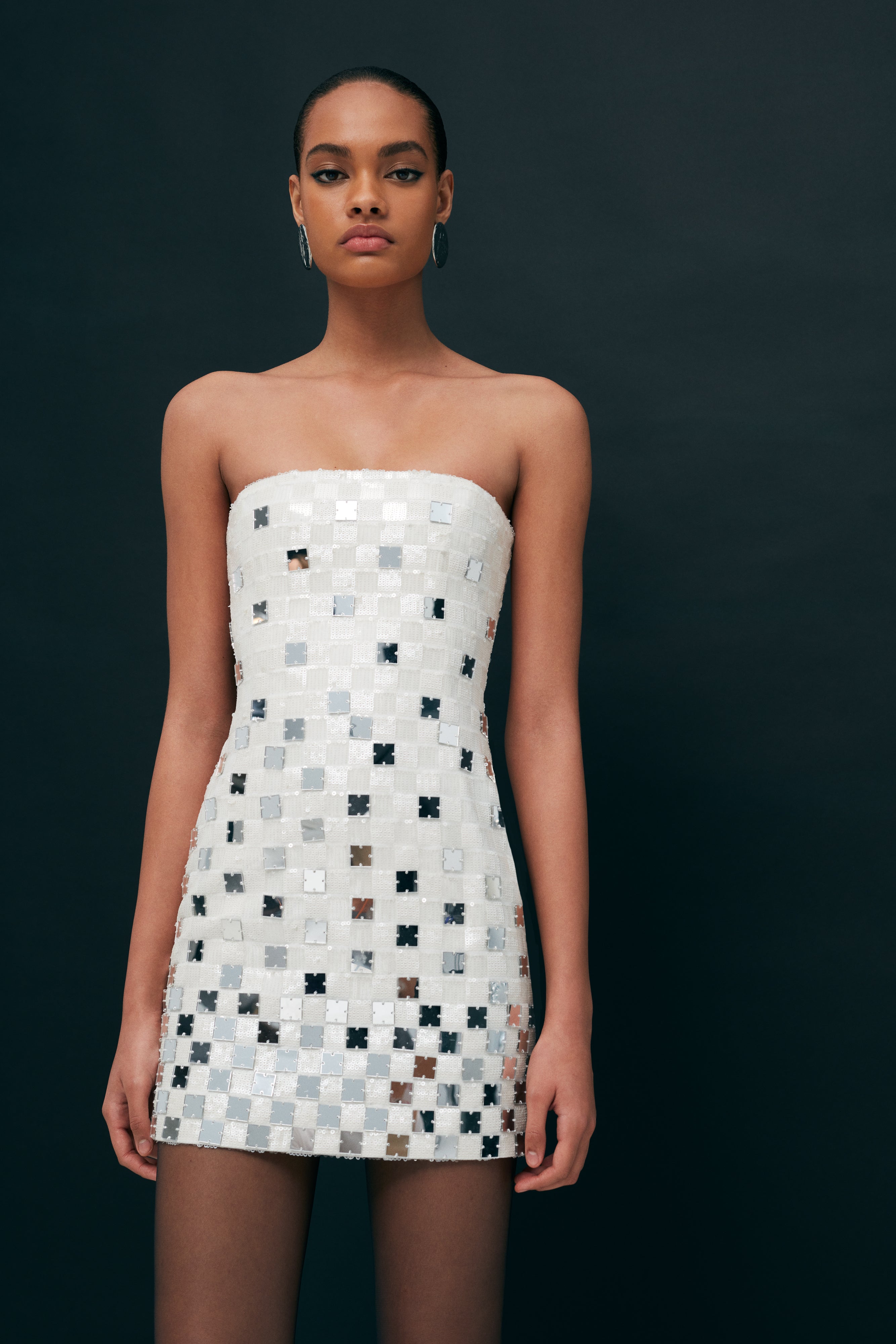 Vivian - Strapless Mini Sequin Dress With Hand Stitched Mirrors