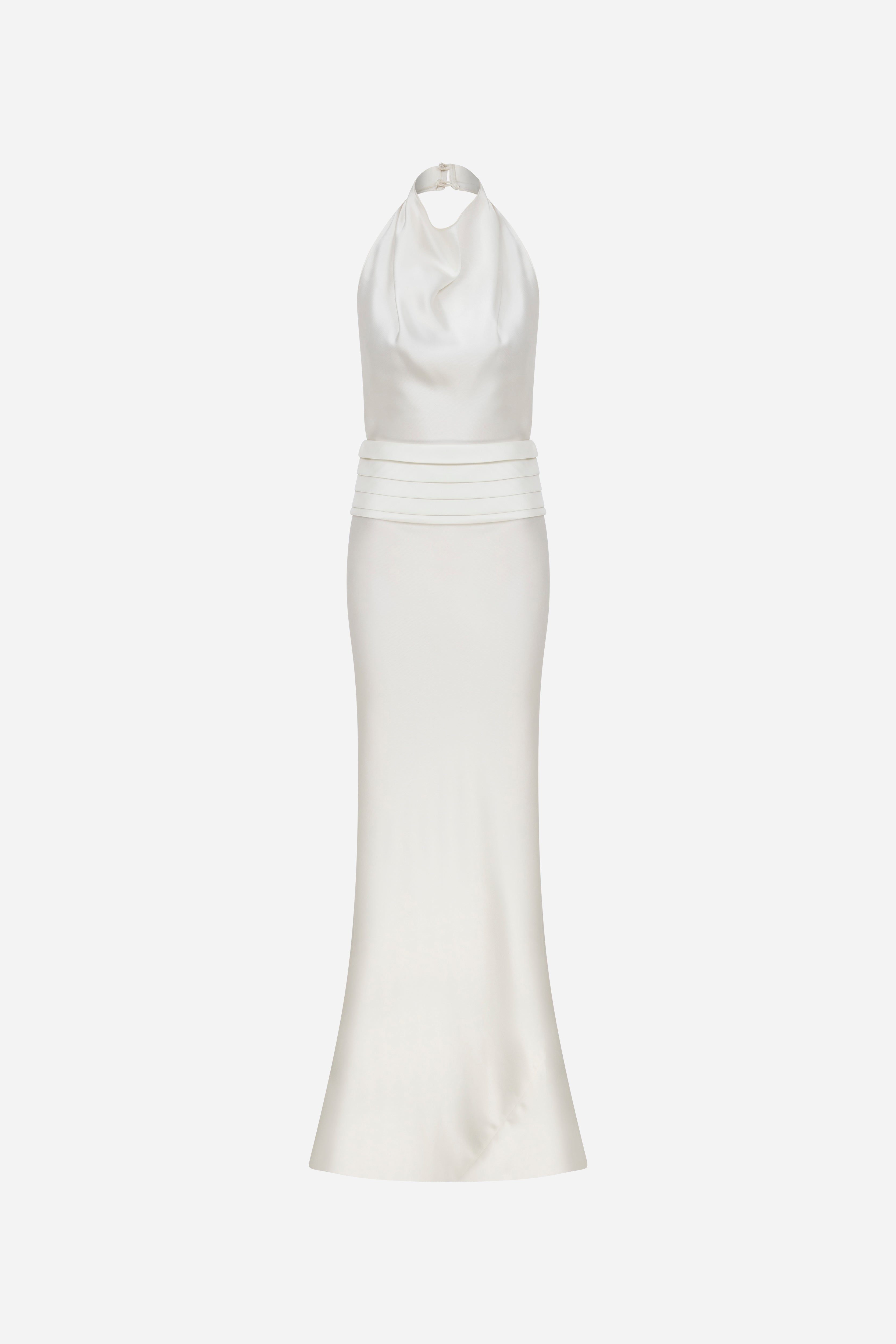 Sidney - Draped High Neck Bias Cut Satin Maxi Dress With Tuxedo Belt