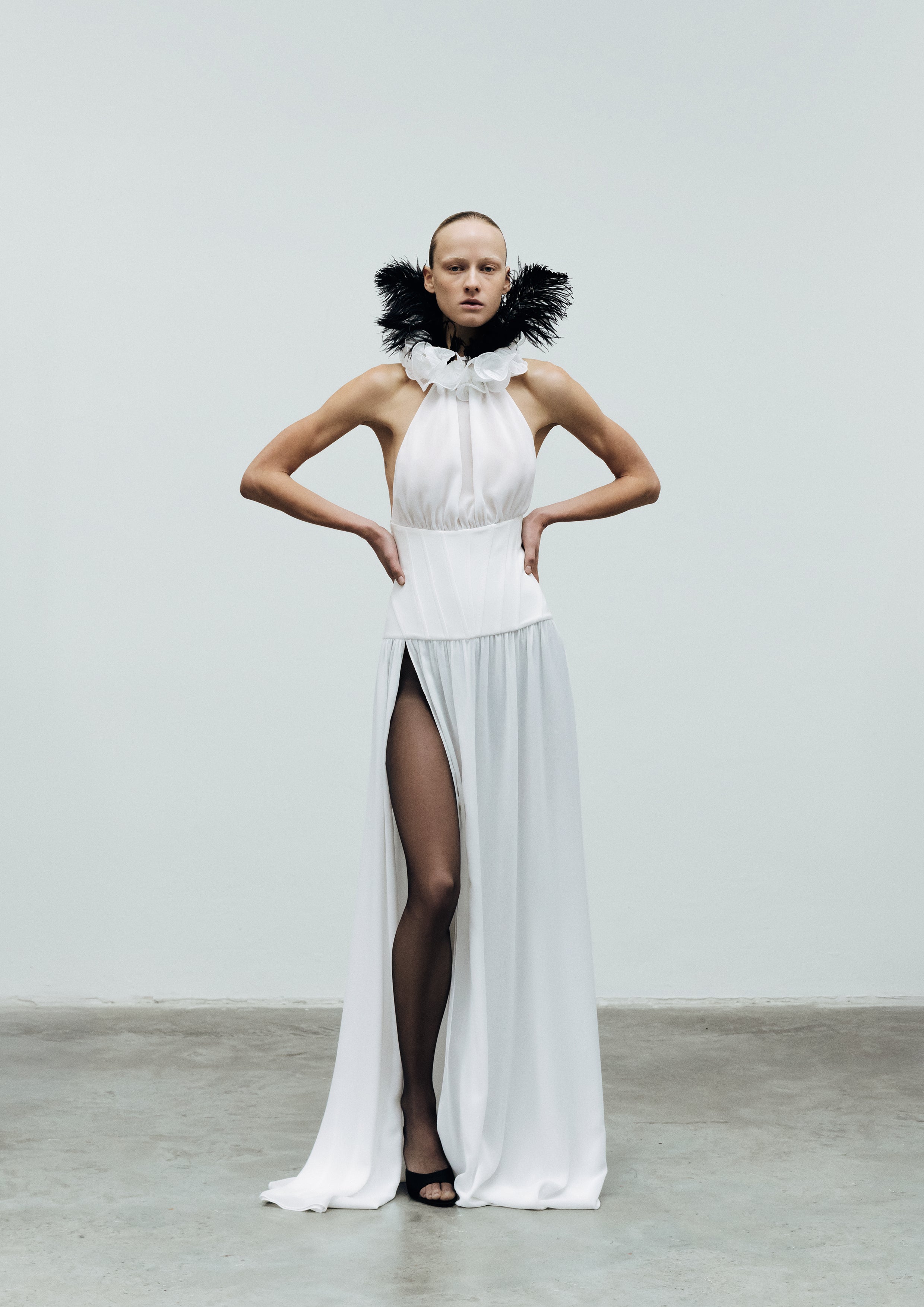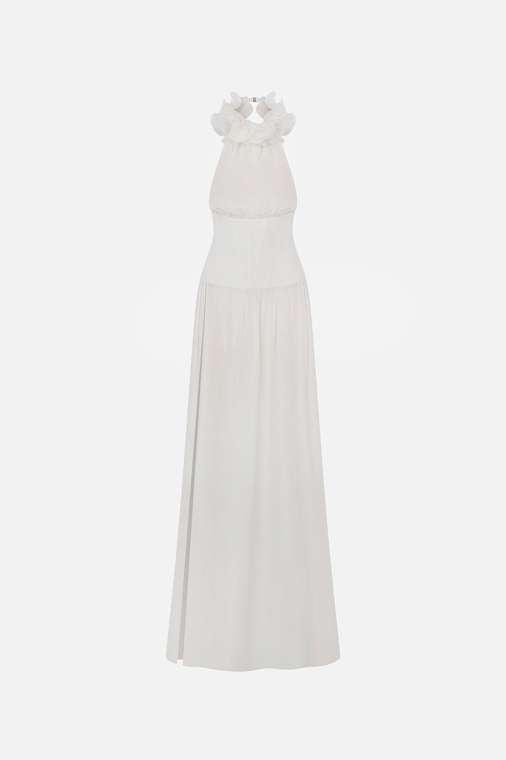 Lune - Halter-Neck Chiffon Maxi Dress With Corset Detail