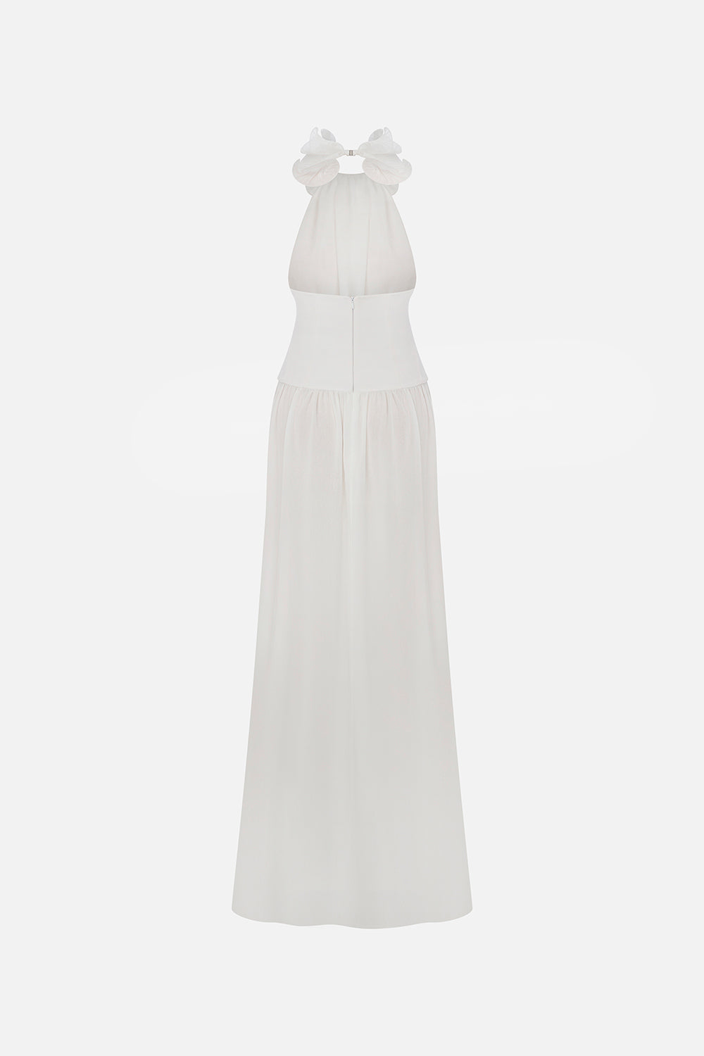 - Halter-Neck Chiffon Maxi Dress With Corset Detail