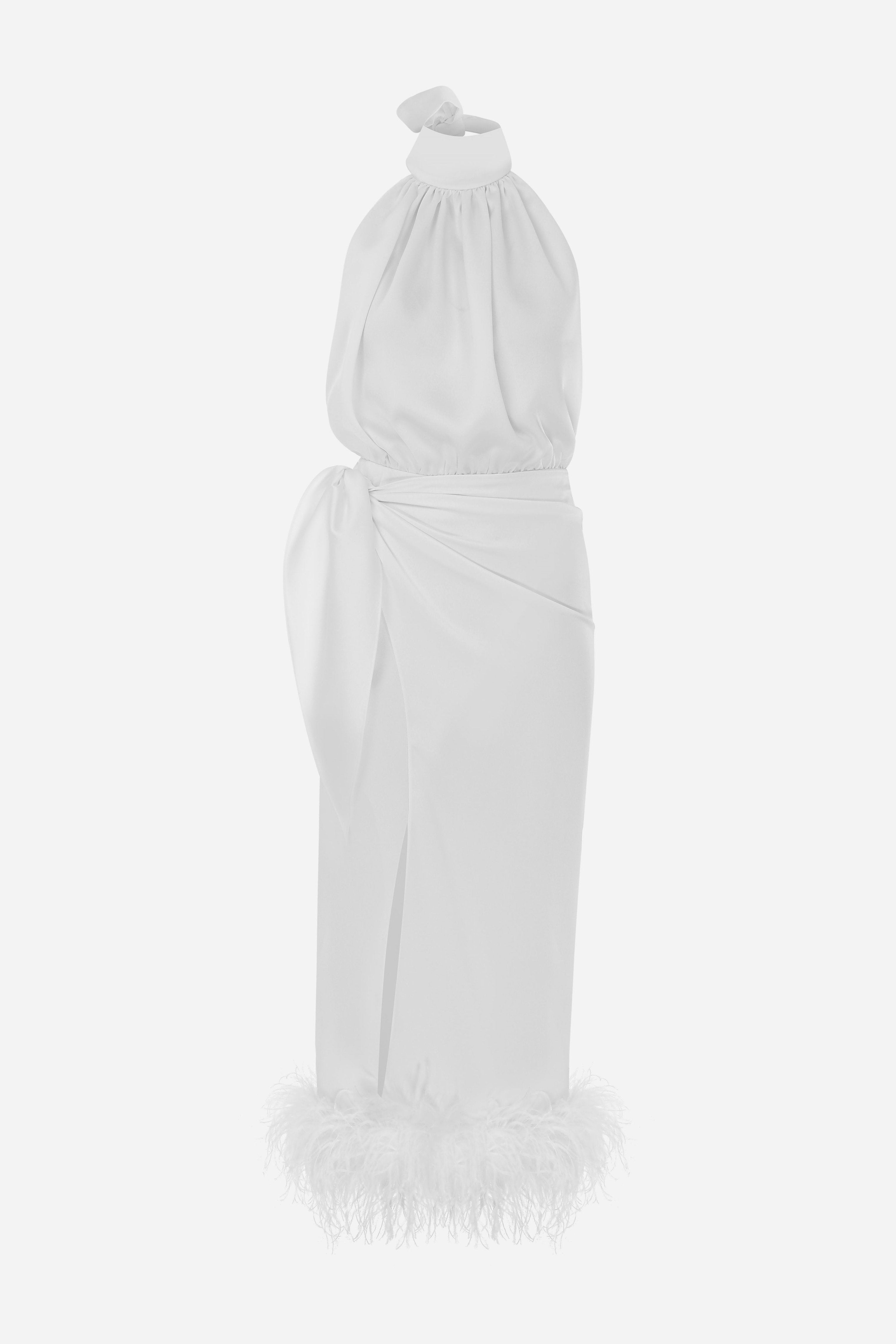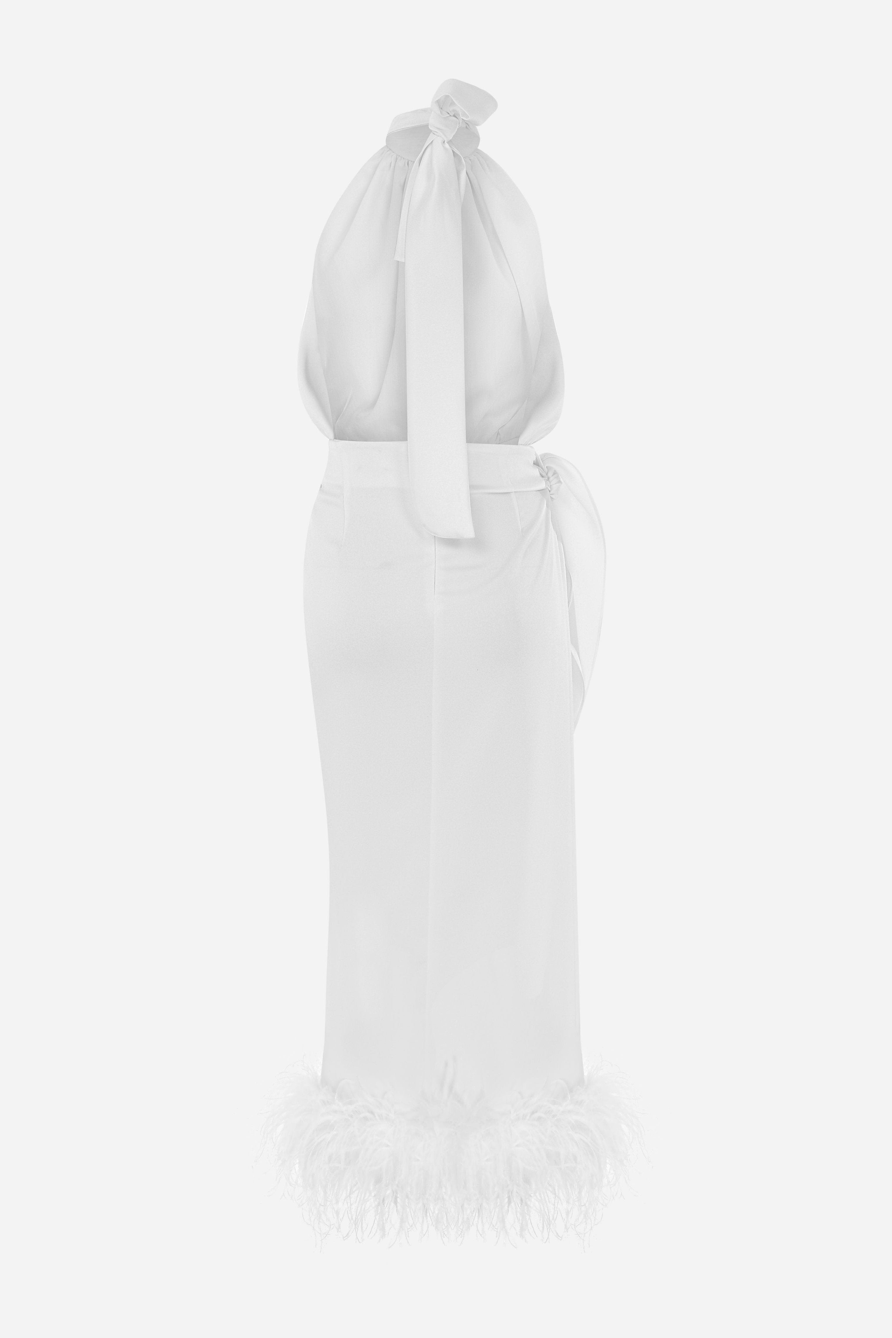Amanda - Wrap-Up Backless Dress with Ostrich Details