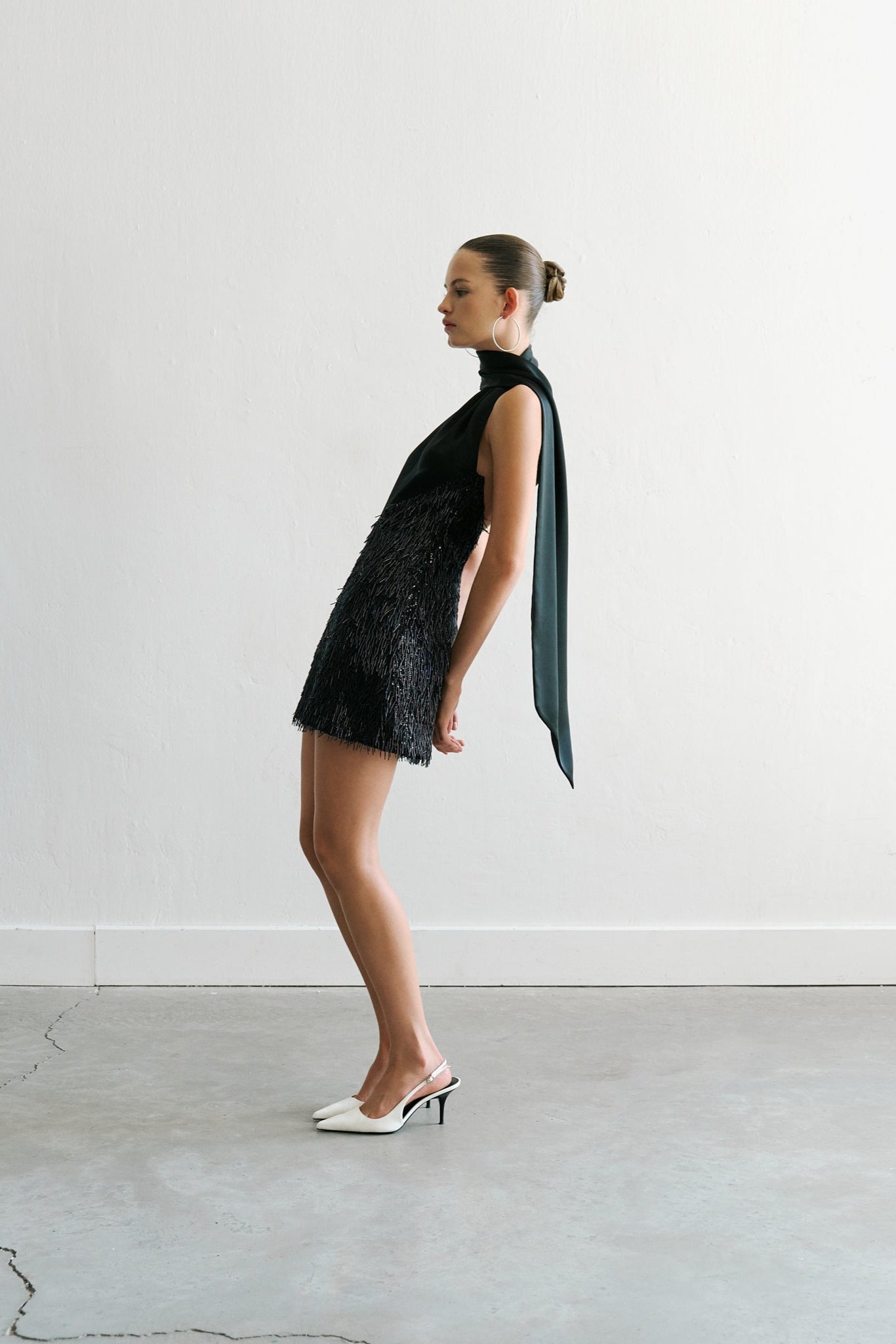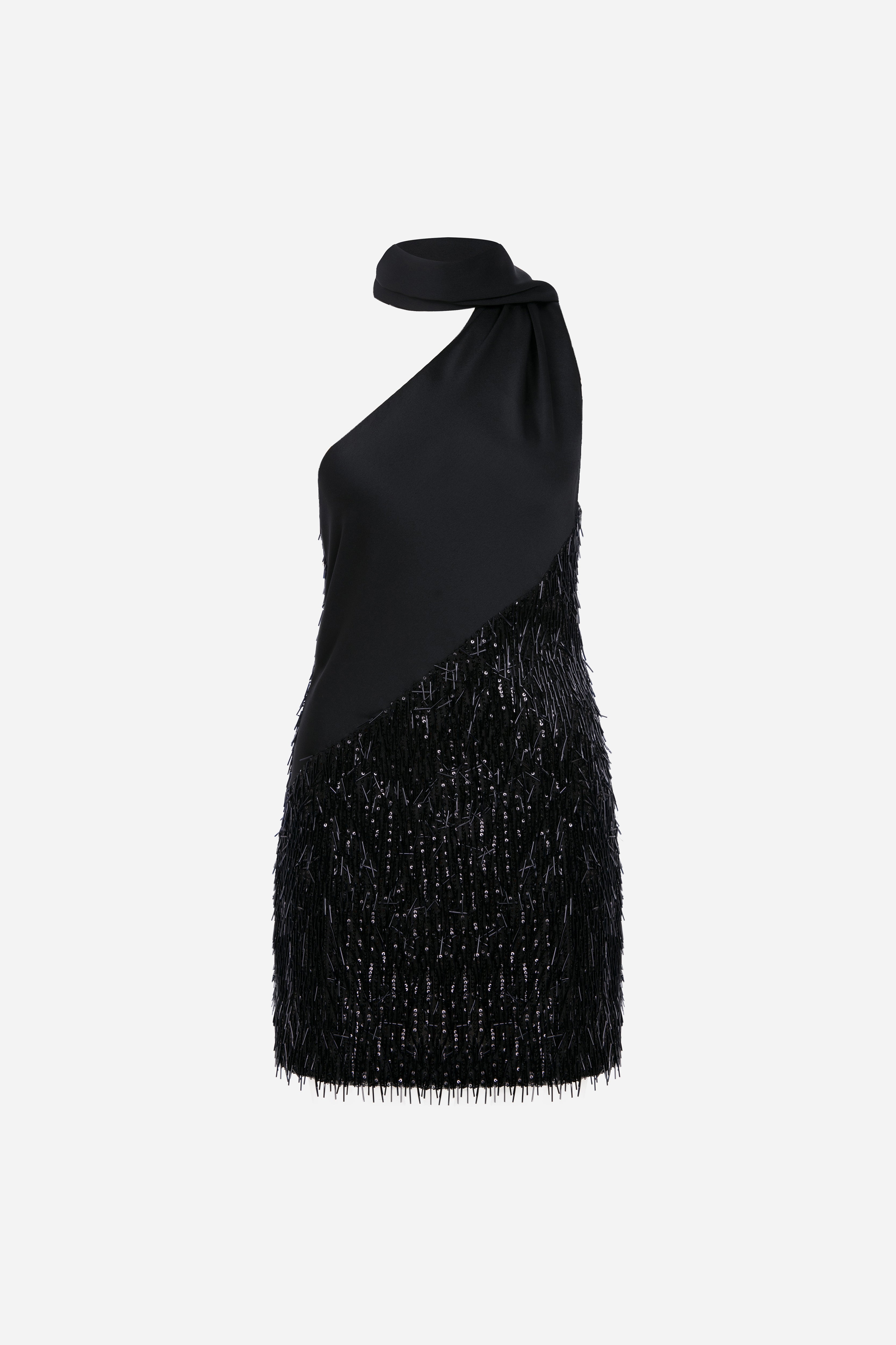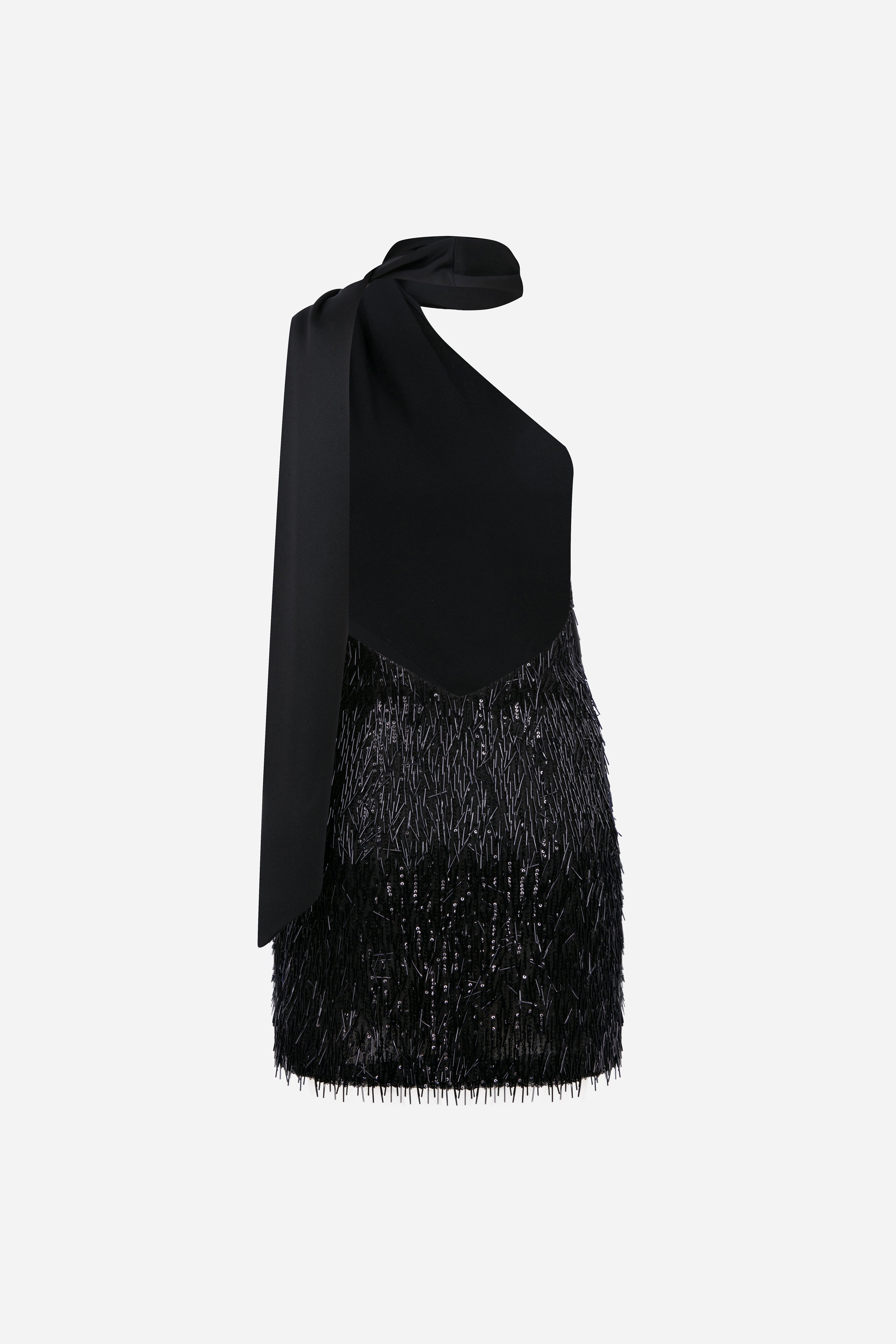 - One Shoulder Satin and Sequin Detailed Mini Dress