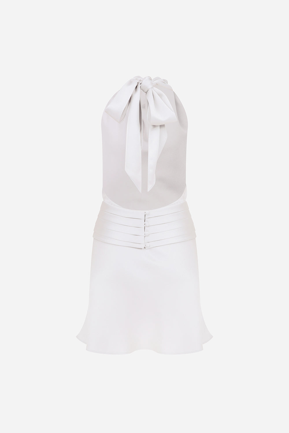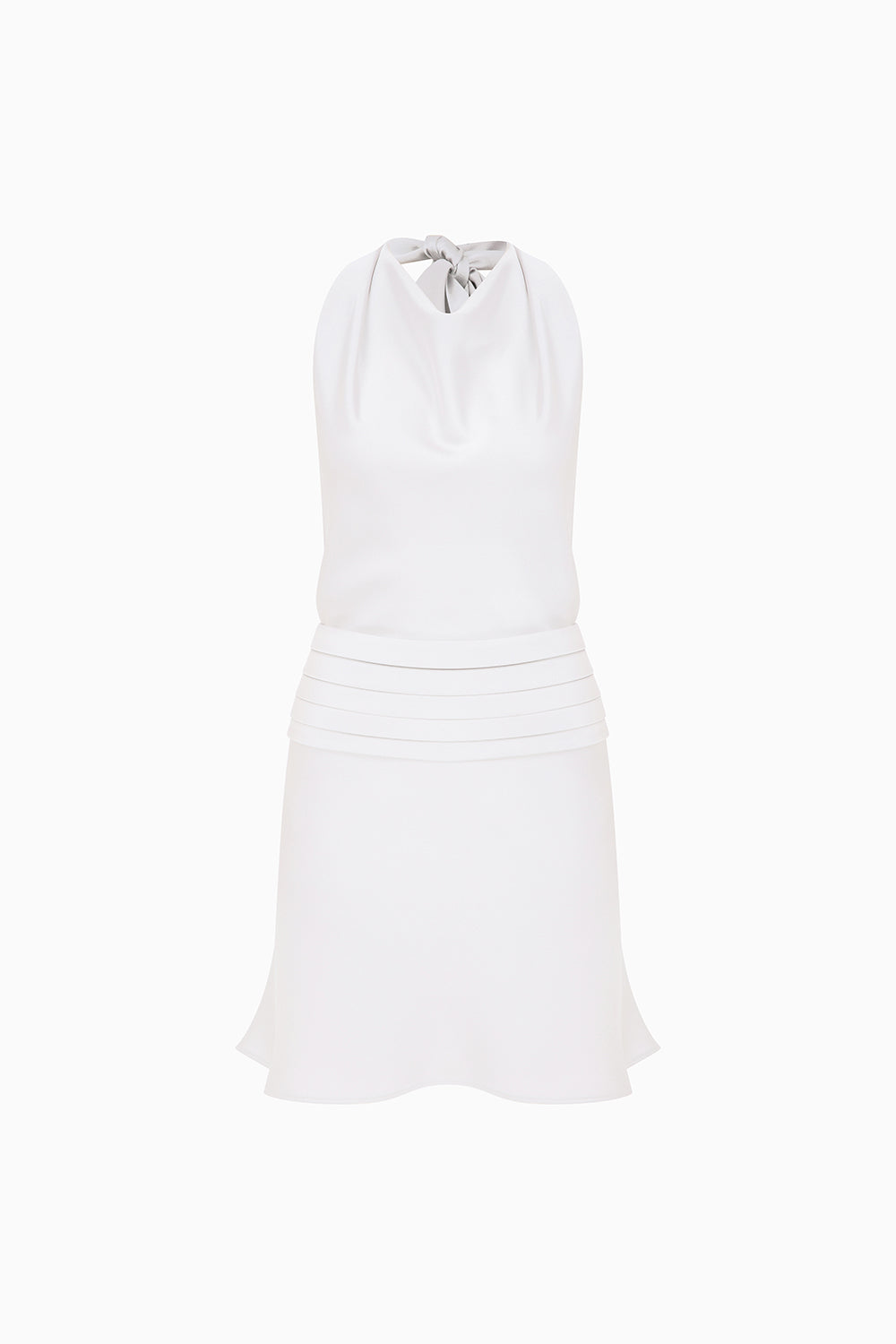 Monica - Draped High Neck Bias Cut Satin Mini Dress in White