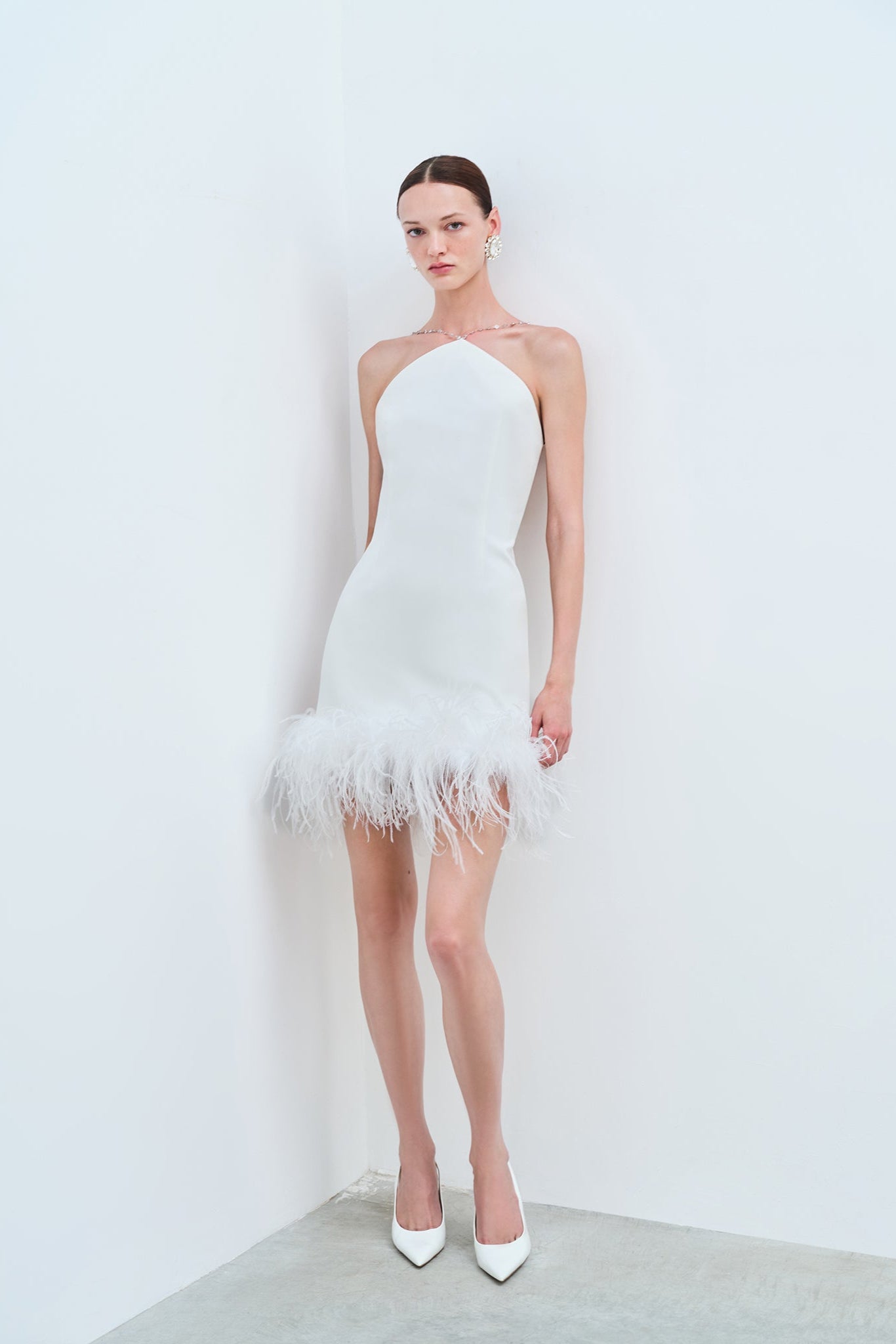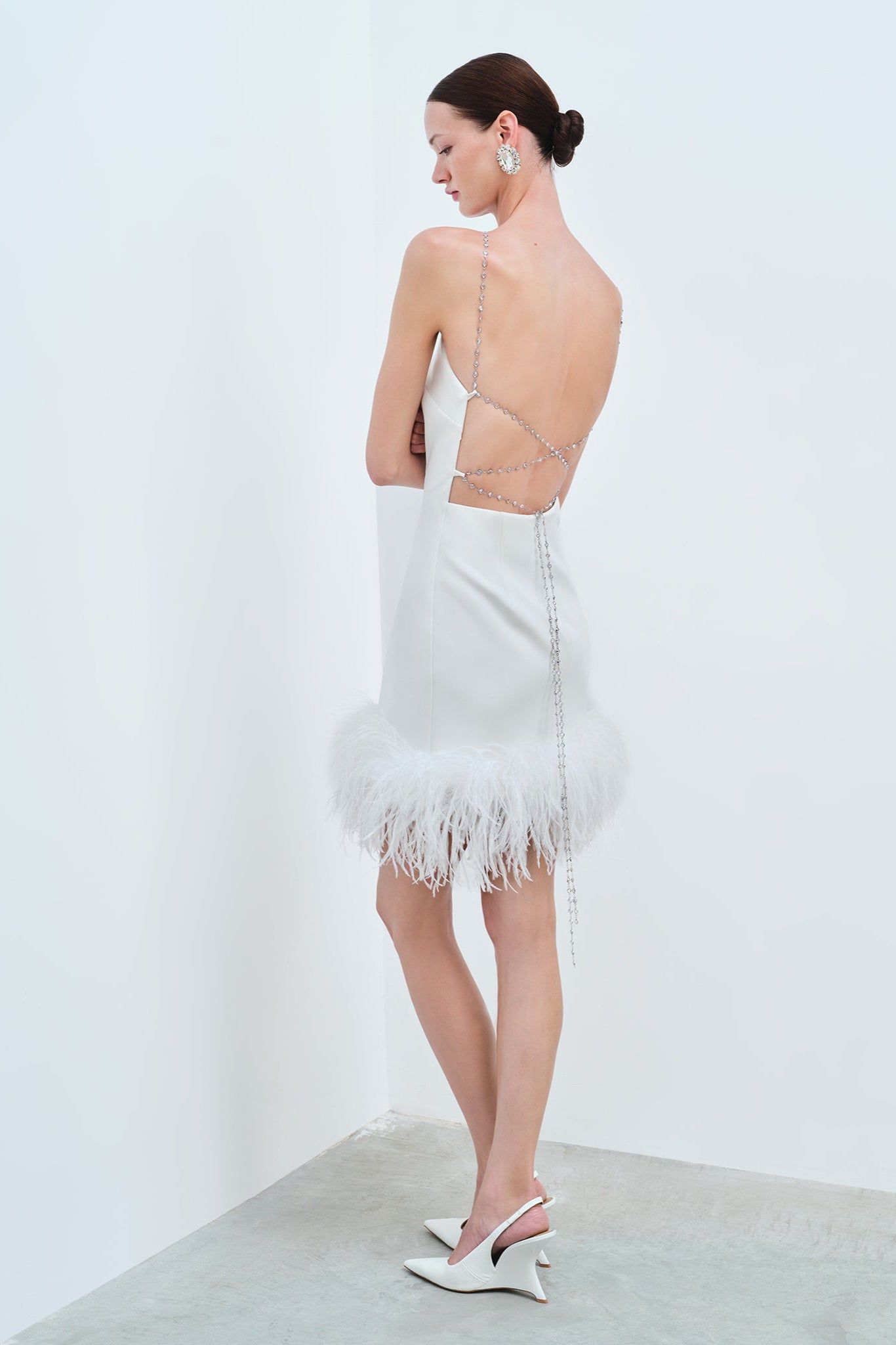 Katy - Backless Ostrich Feather Trimmed Mini Dress