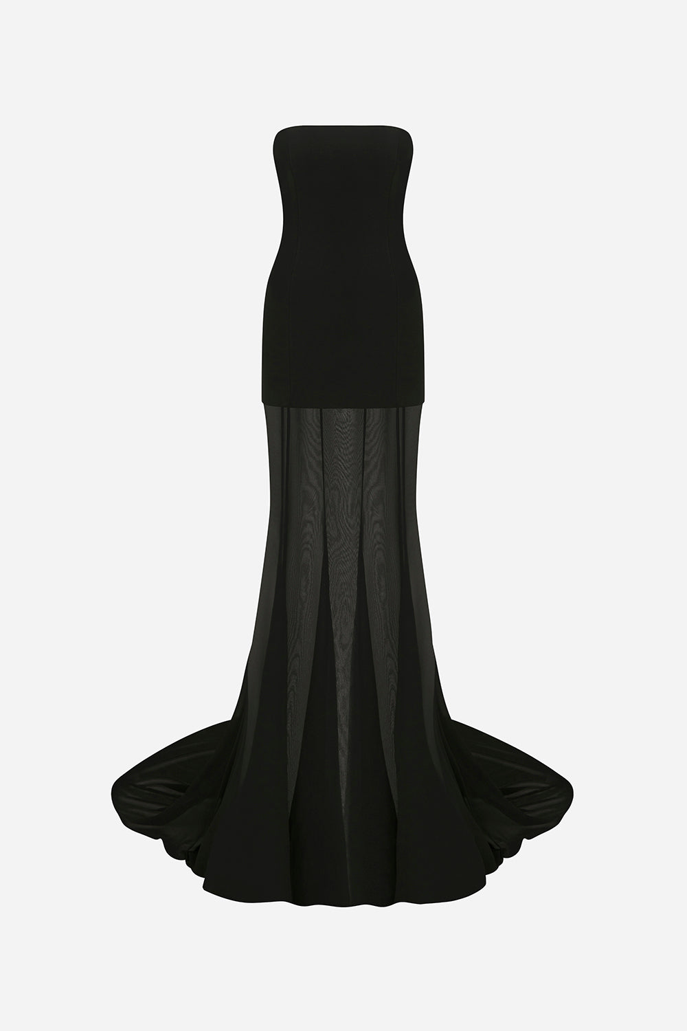 Isabel - Strapless Chiffon Maxi Dress in Black