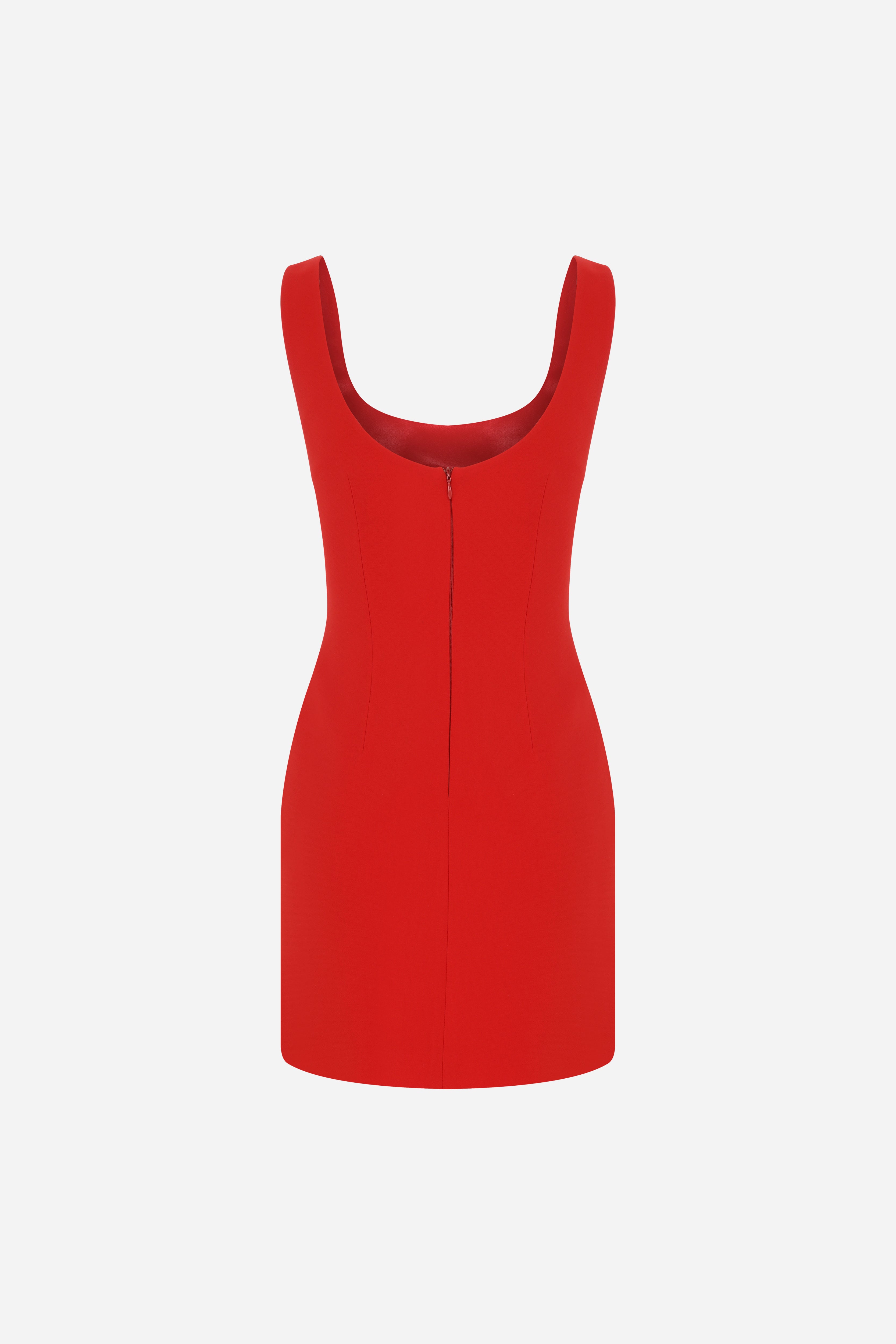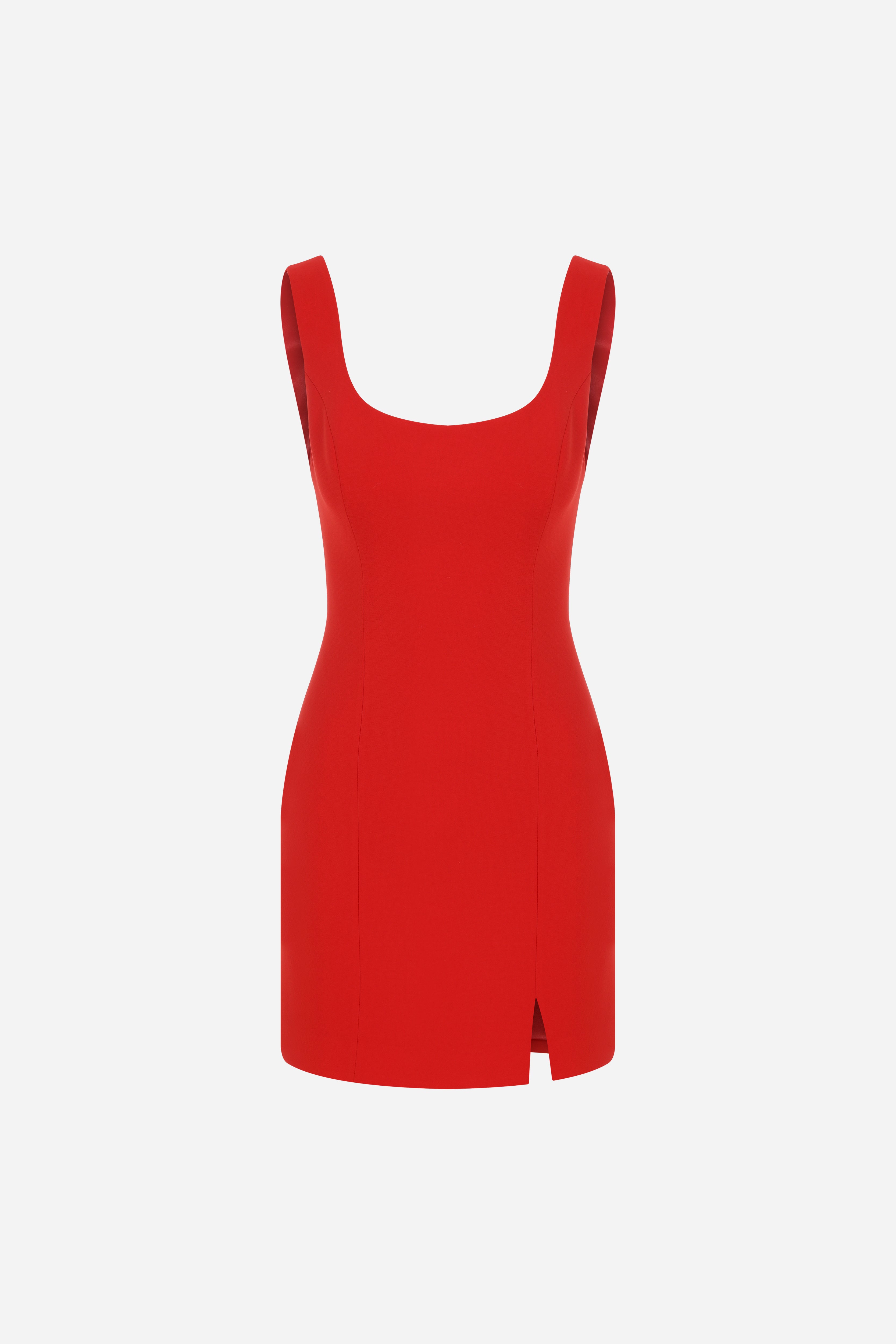 Isadora- U-Neck Mini Dress With Front Slit in Red