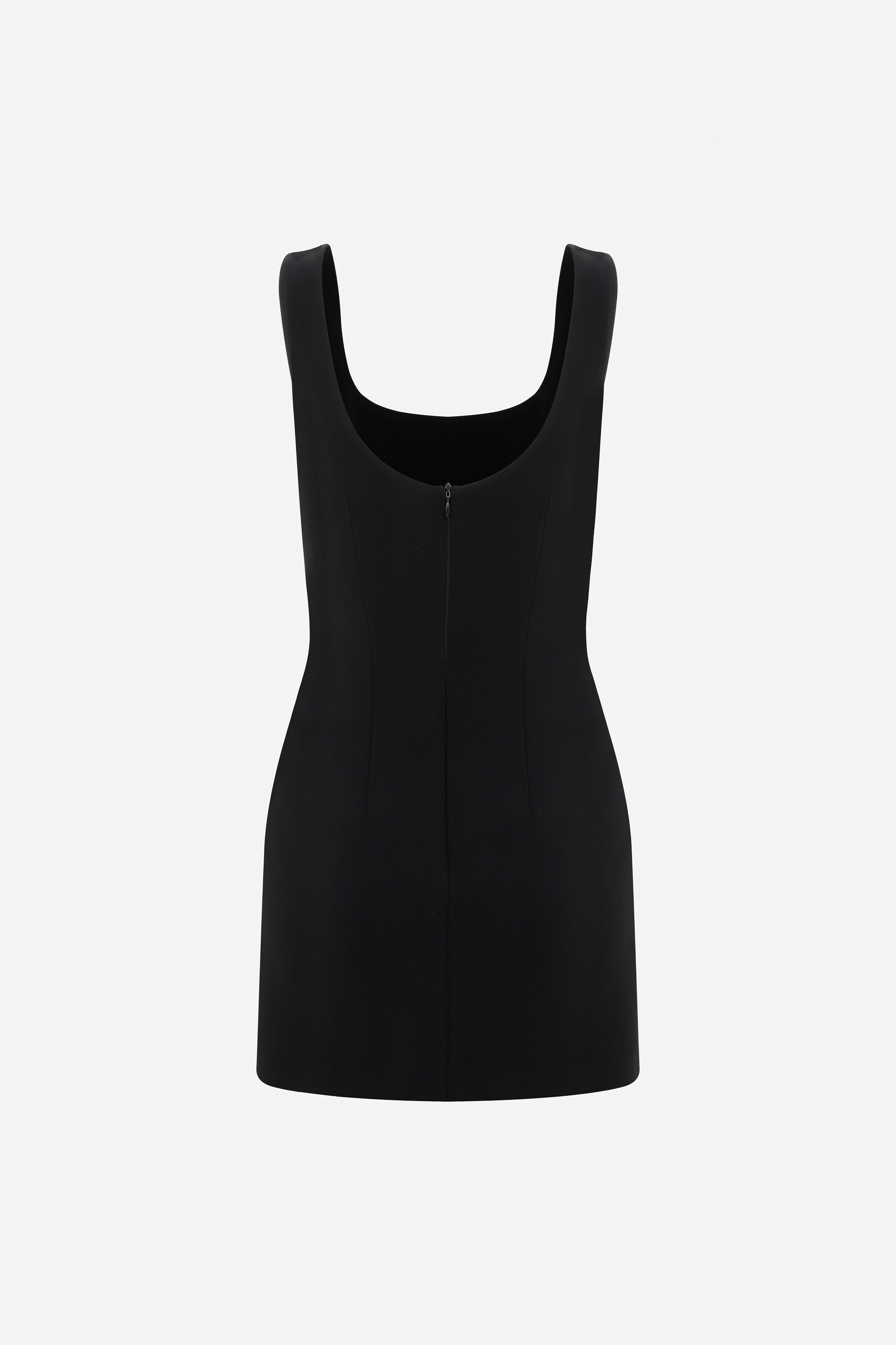 Isadora - U-Neck Mini Dress With Front Slit in Black