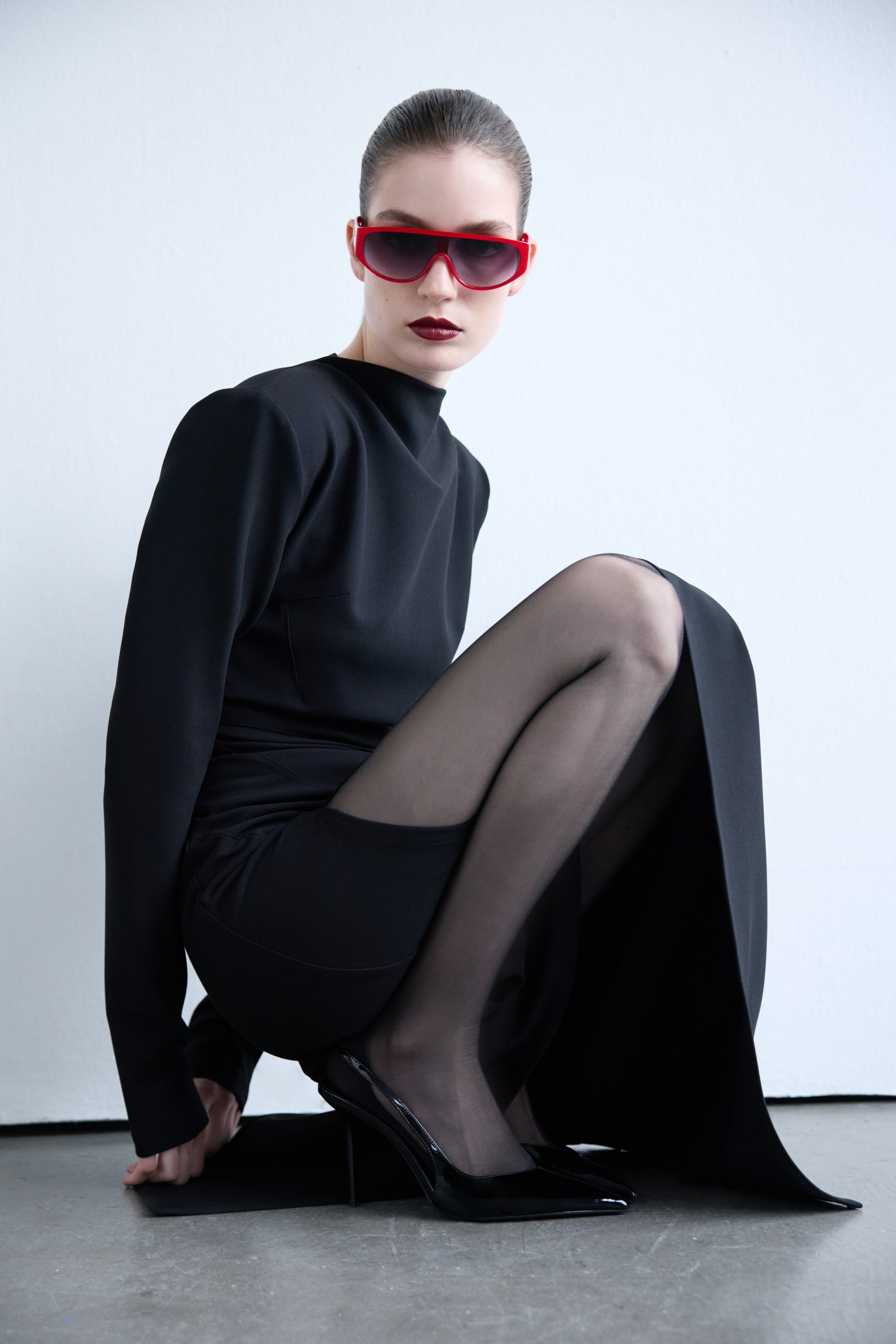 Rosa - Turtle Neck Dress with Assymetrical Detail