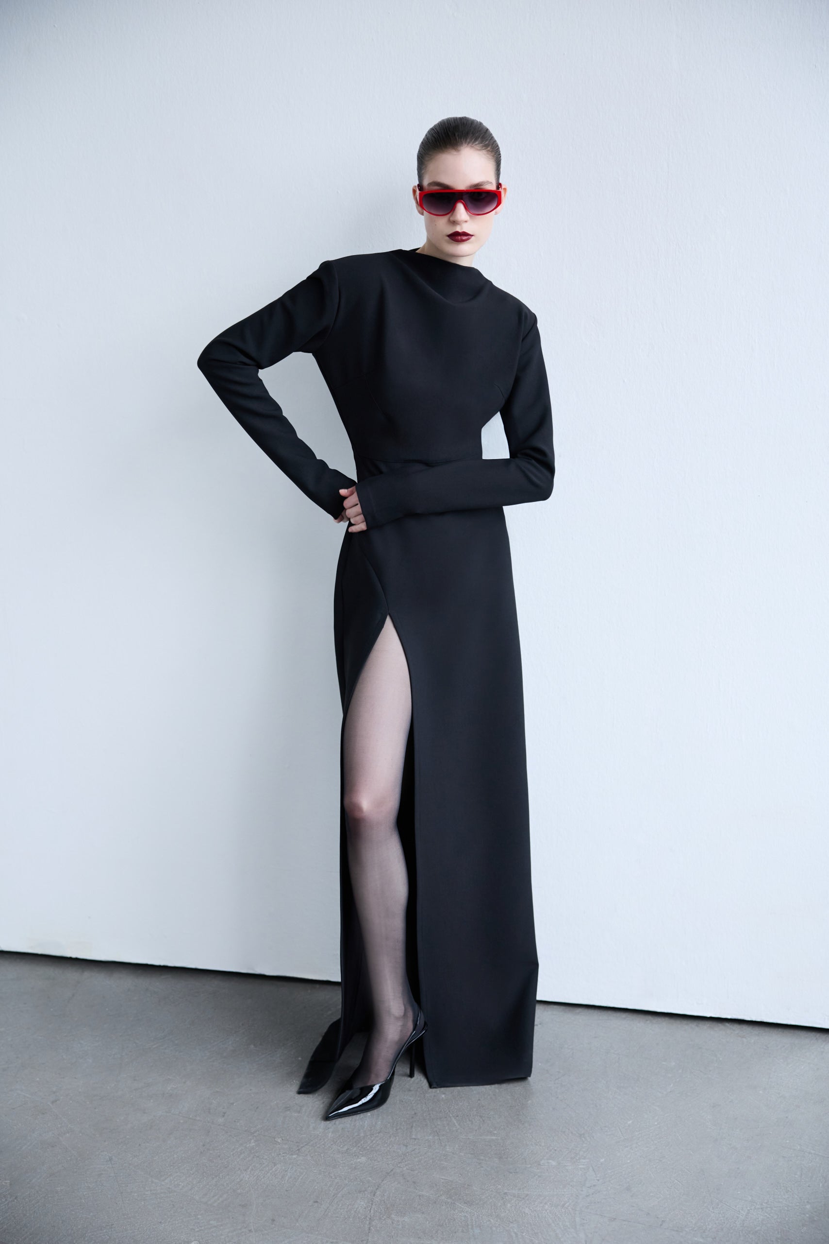Noemie - Long Sleeve Dress with Front Slit Detail