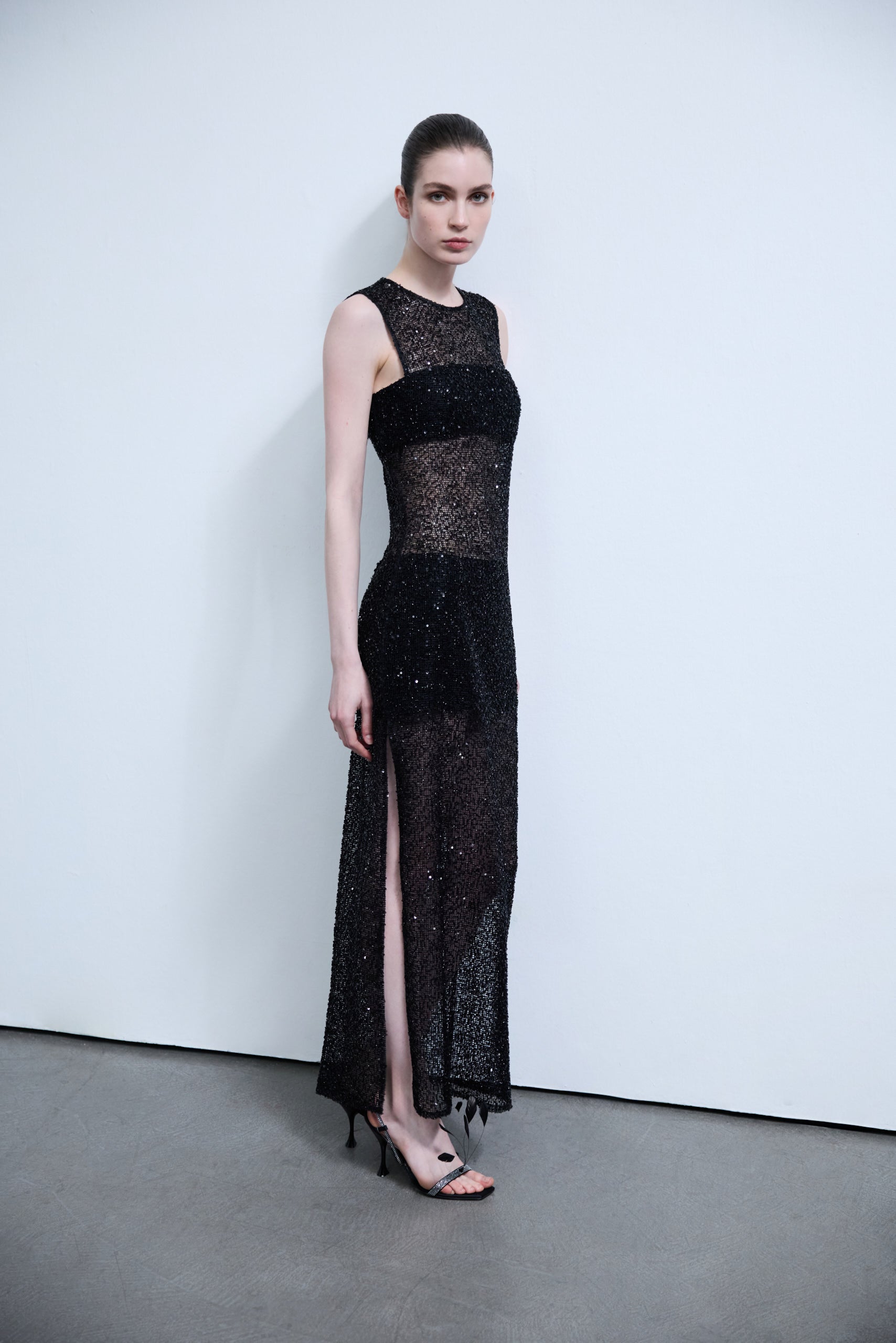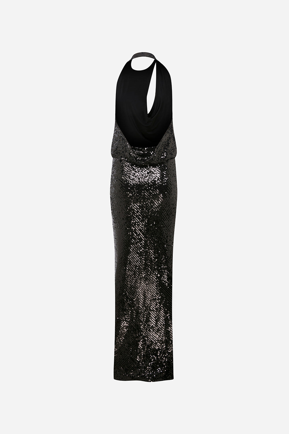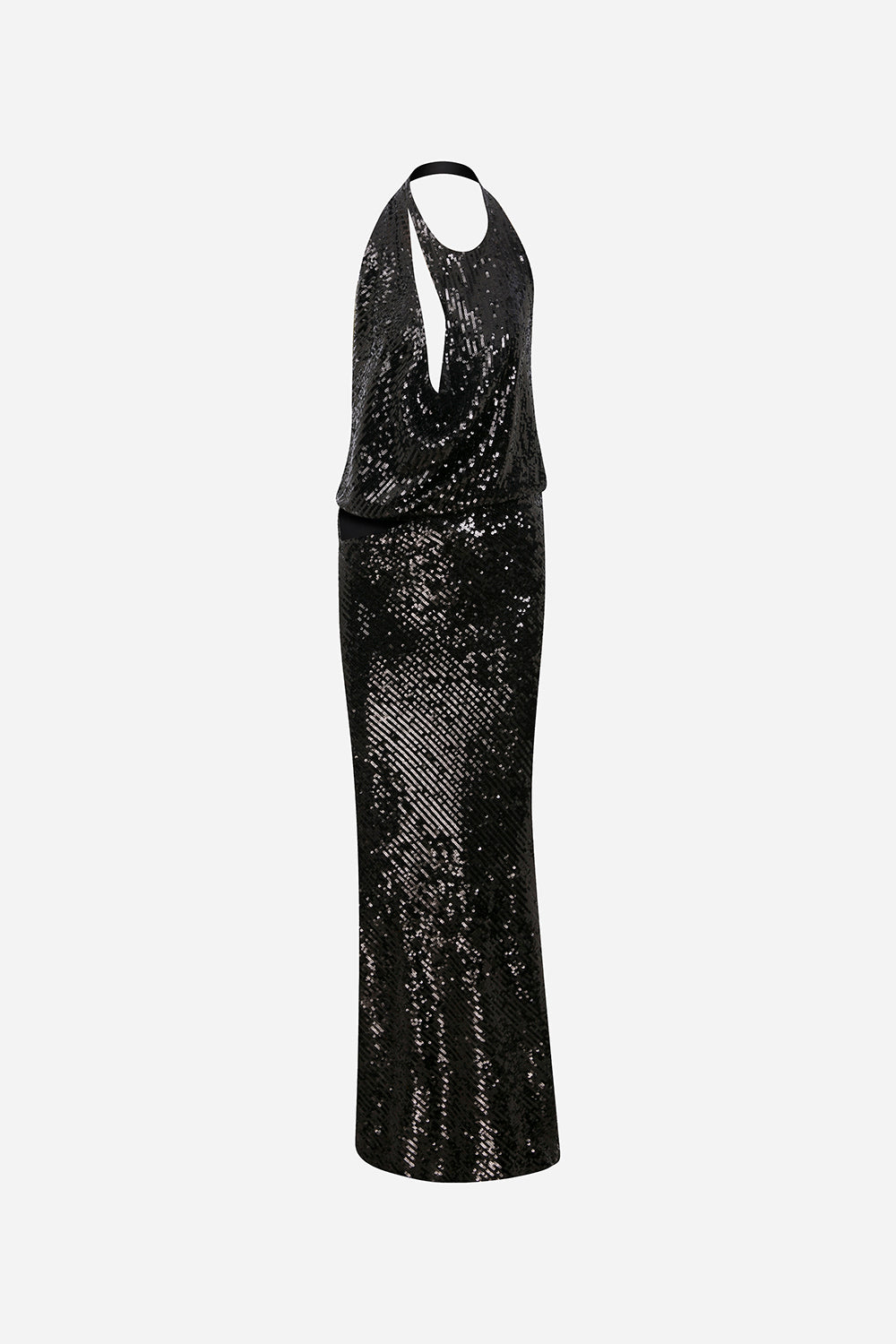 Lone - Cowl Neck Cut Out Detailed Black Sequin Maxi Dress