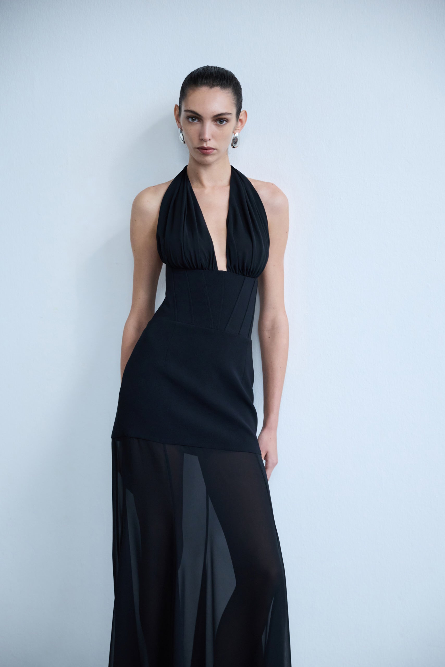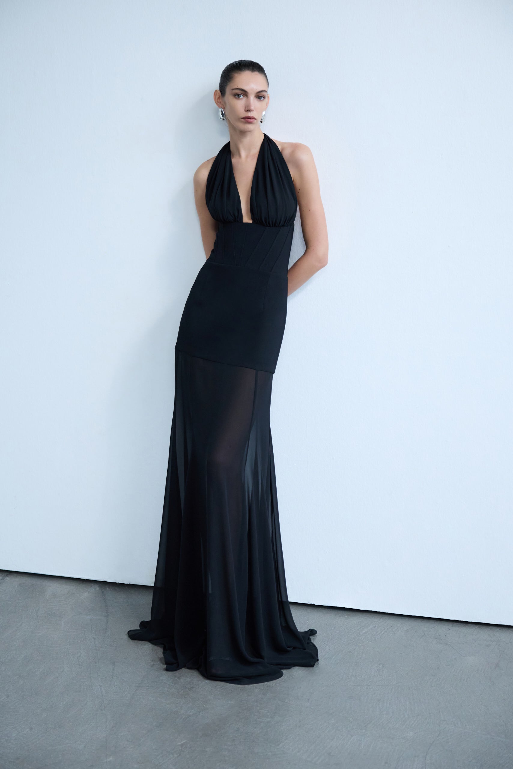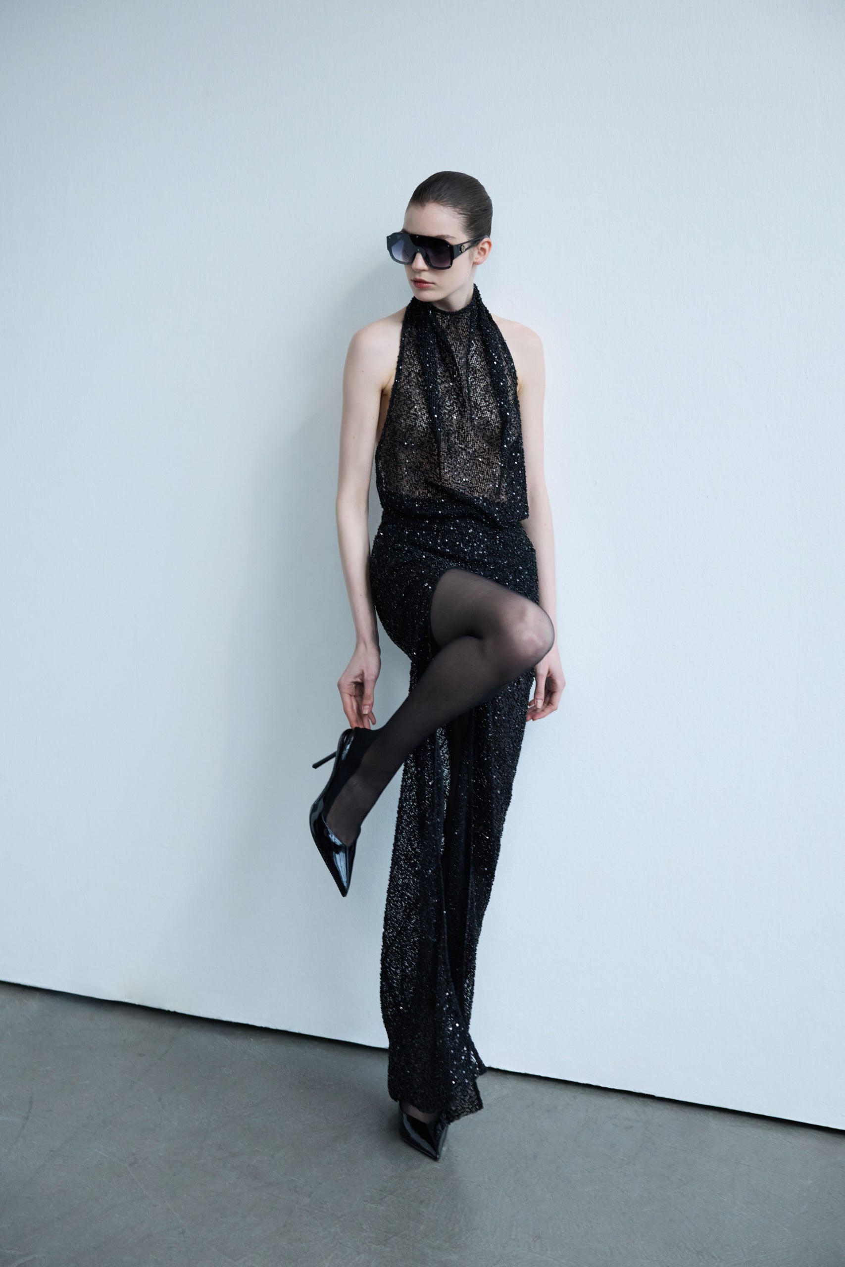 Lone - Cowl Neck Cut Out Detailed Black Sequin Maxi Dress