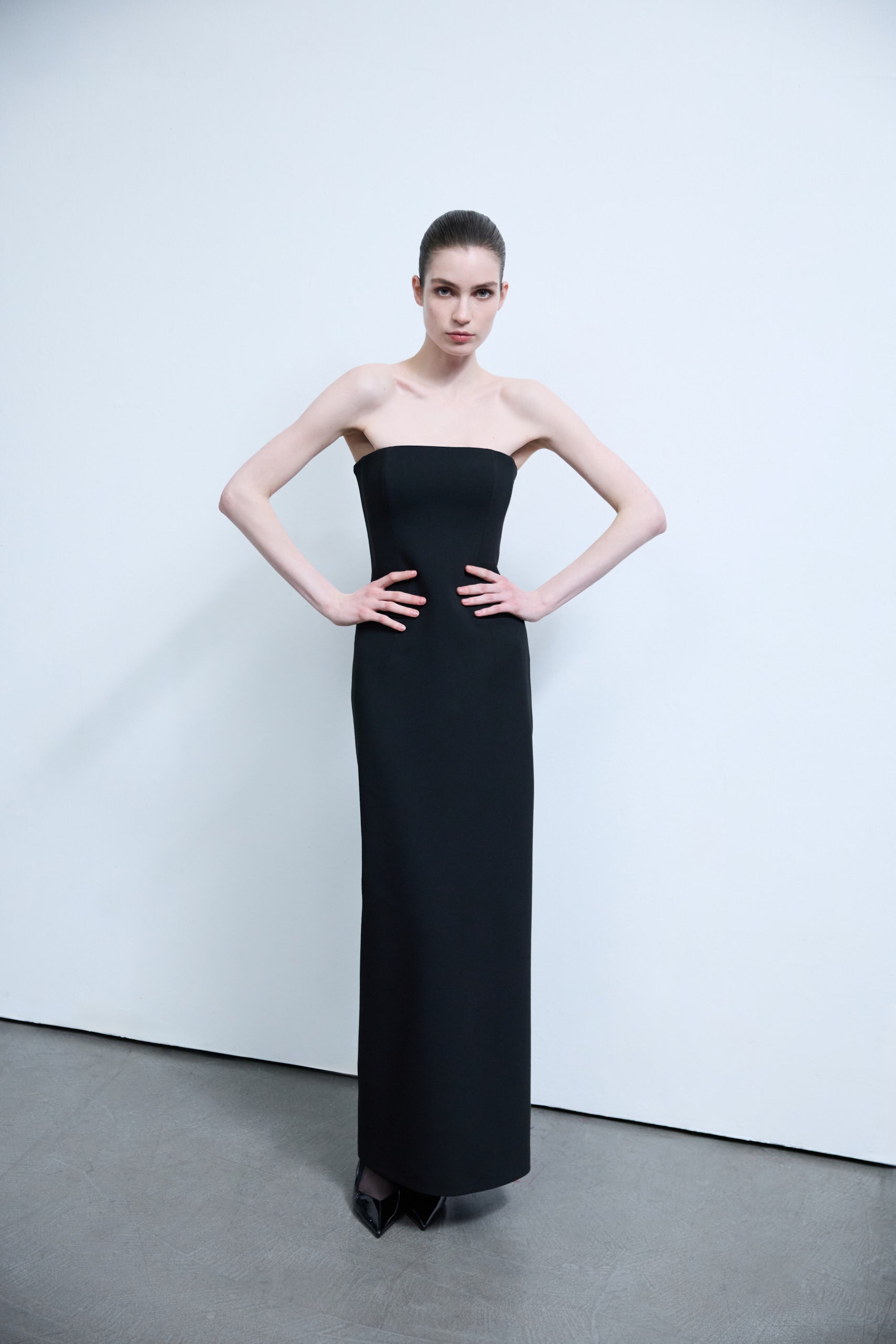 Alina - Satin Maxi Dress With Twist Detail in Black