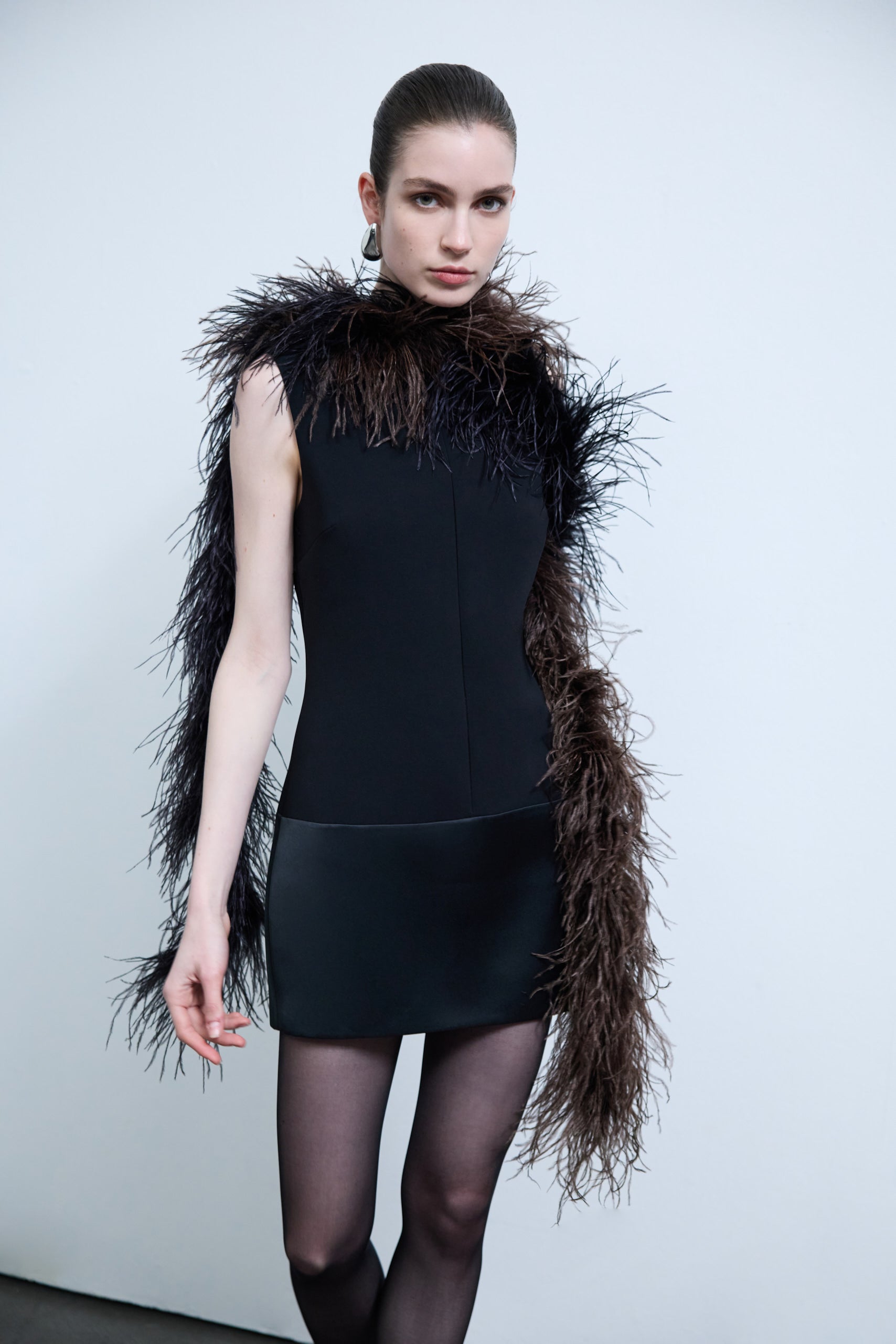 Sabine - V Neck Maxi Dress with Ostrich Feather Detail