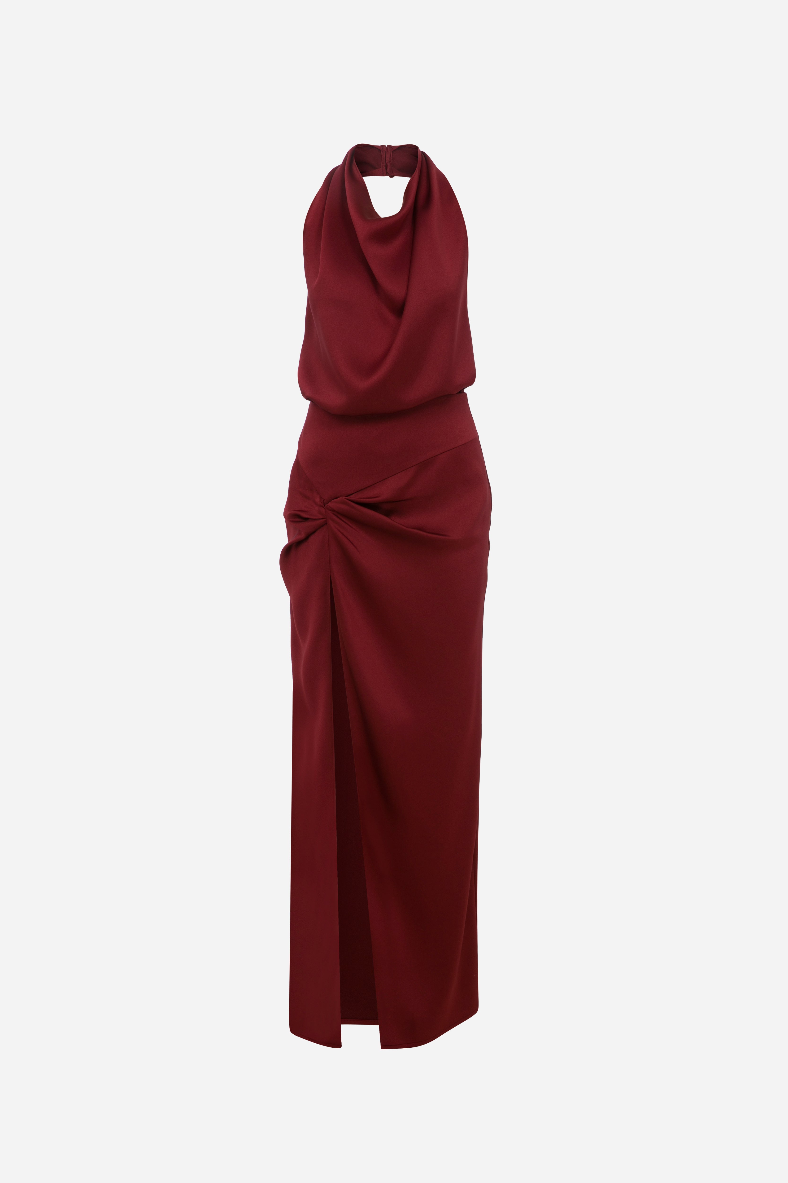 Alina - Satin Maxi Dress With Twist Detail in Burgundy
