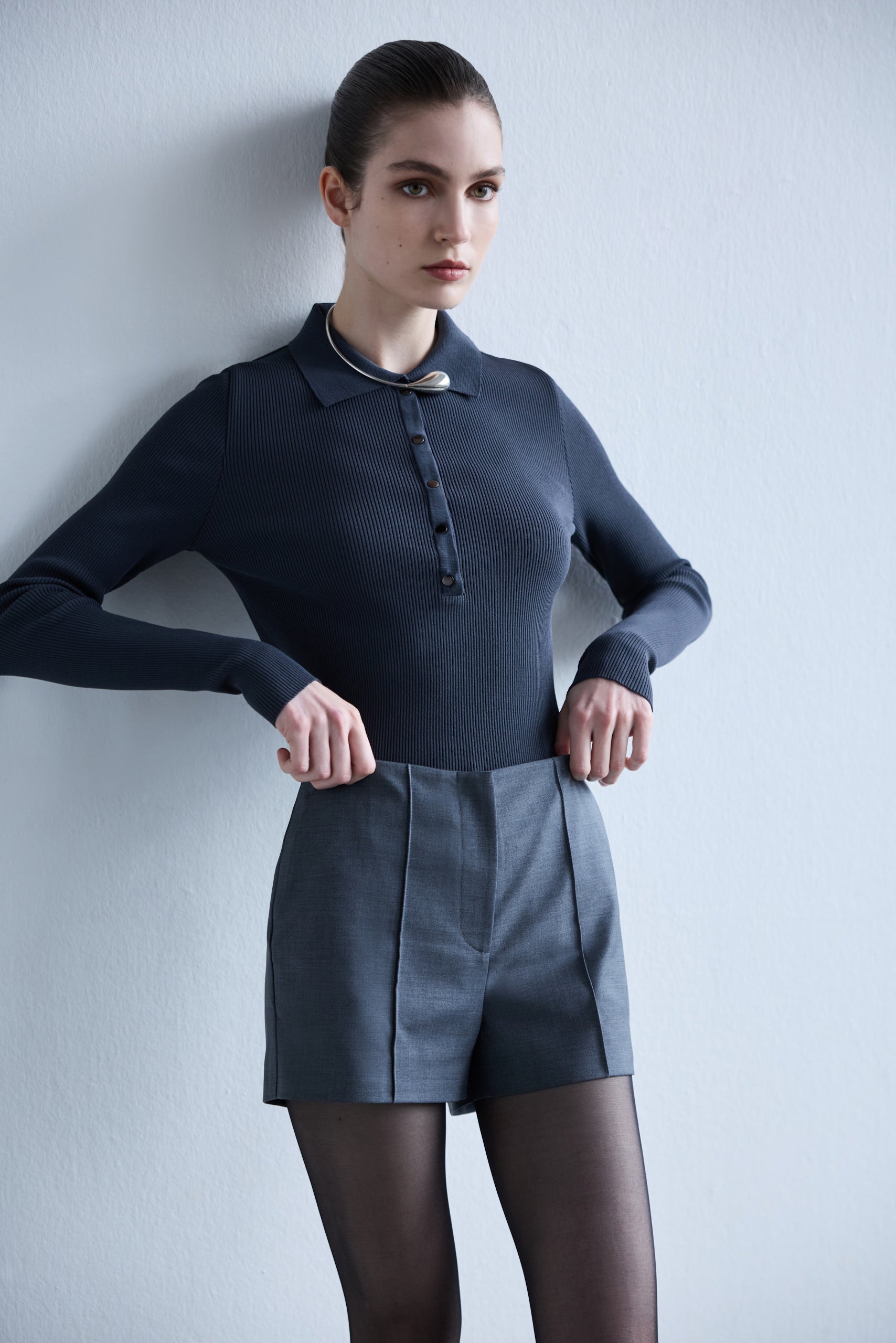 Iris - Mini Wool Shorts in Grey