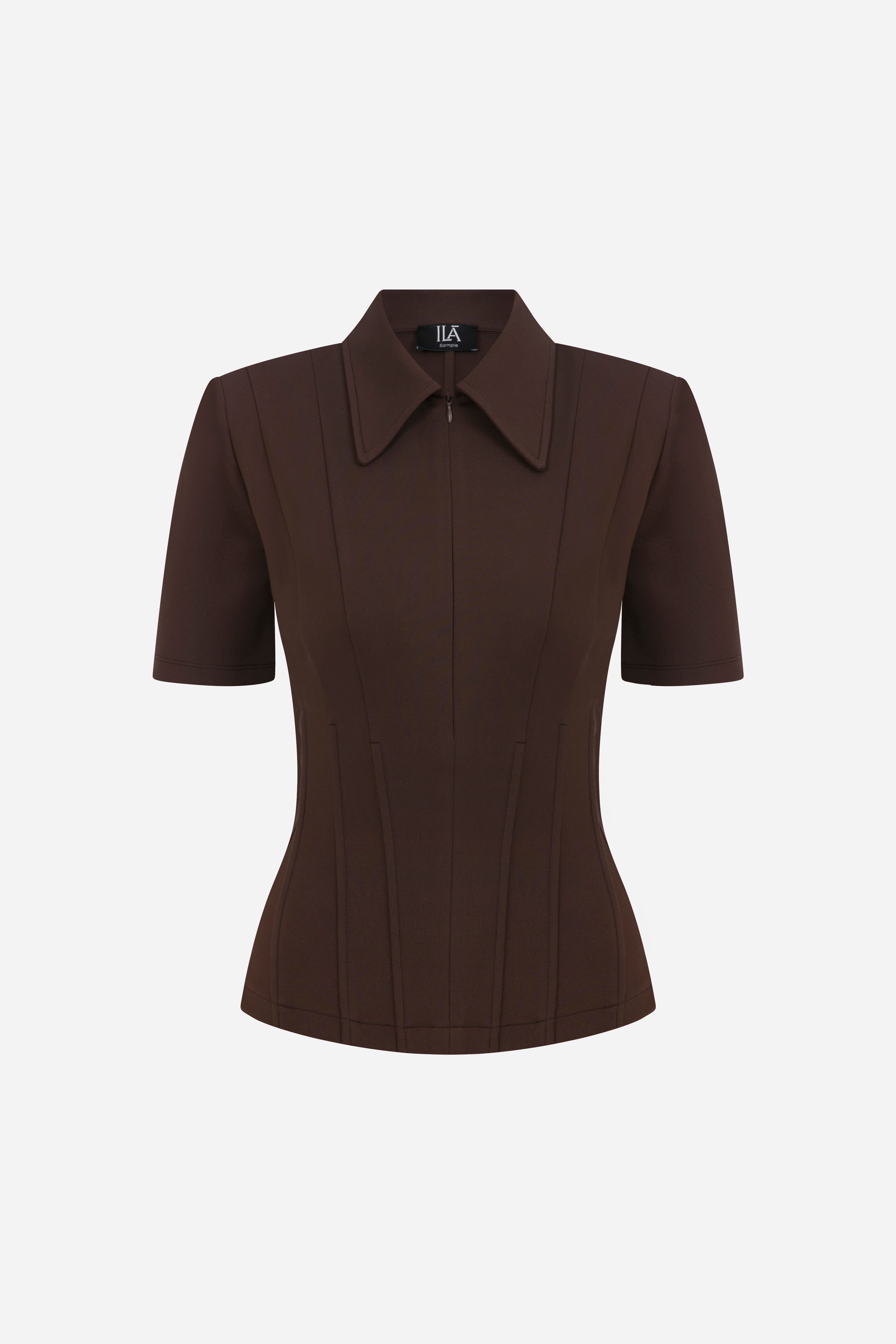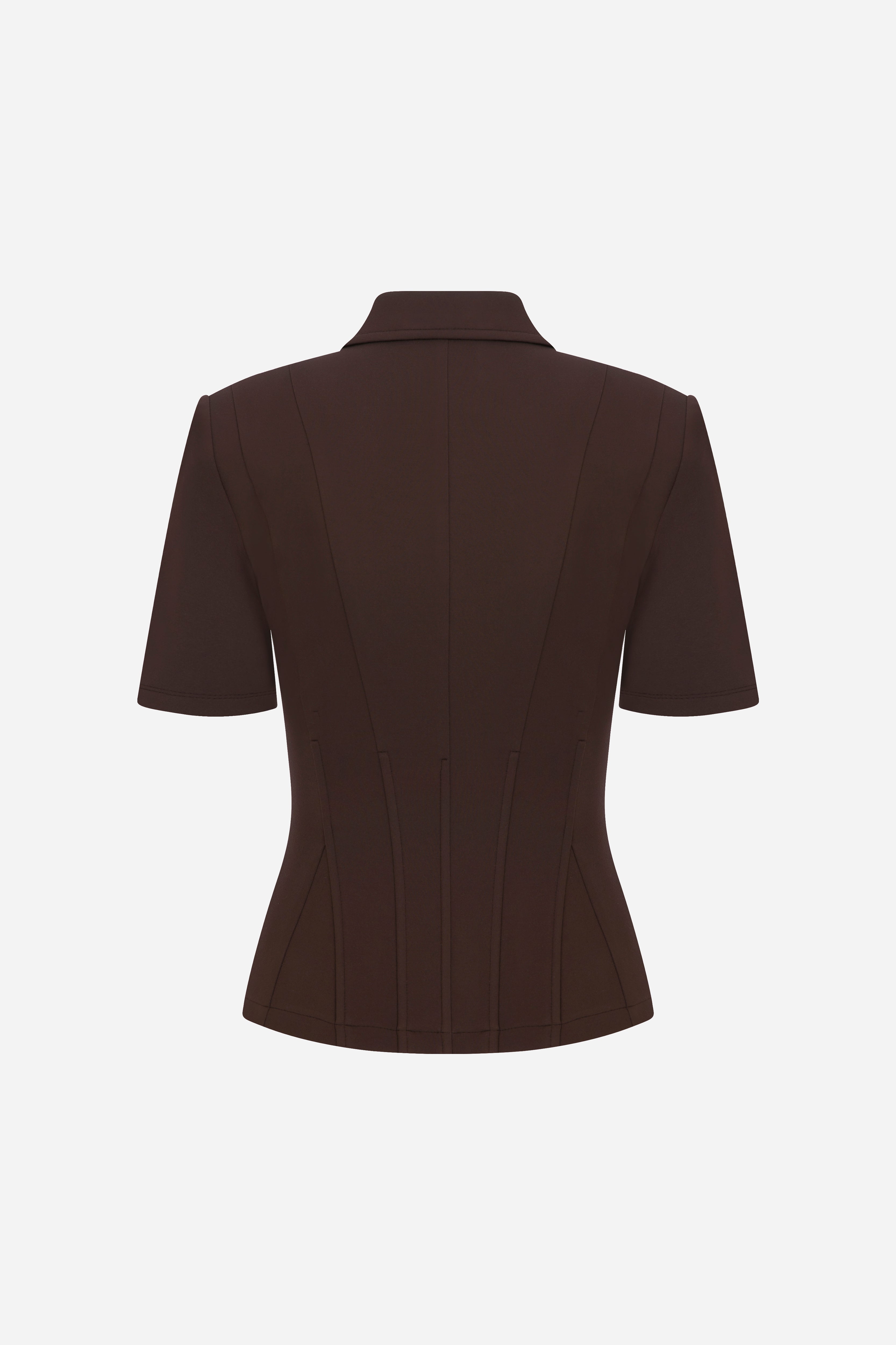 Kate - Polo Neck Corset Detailed T-Shirt in Brown