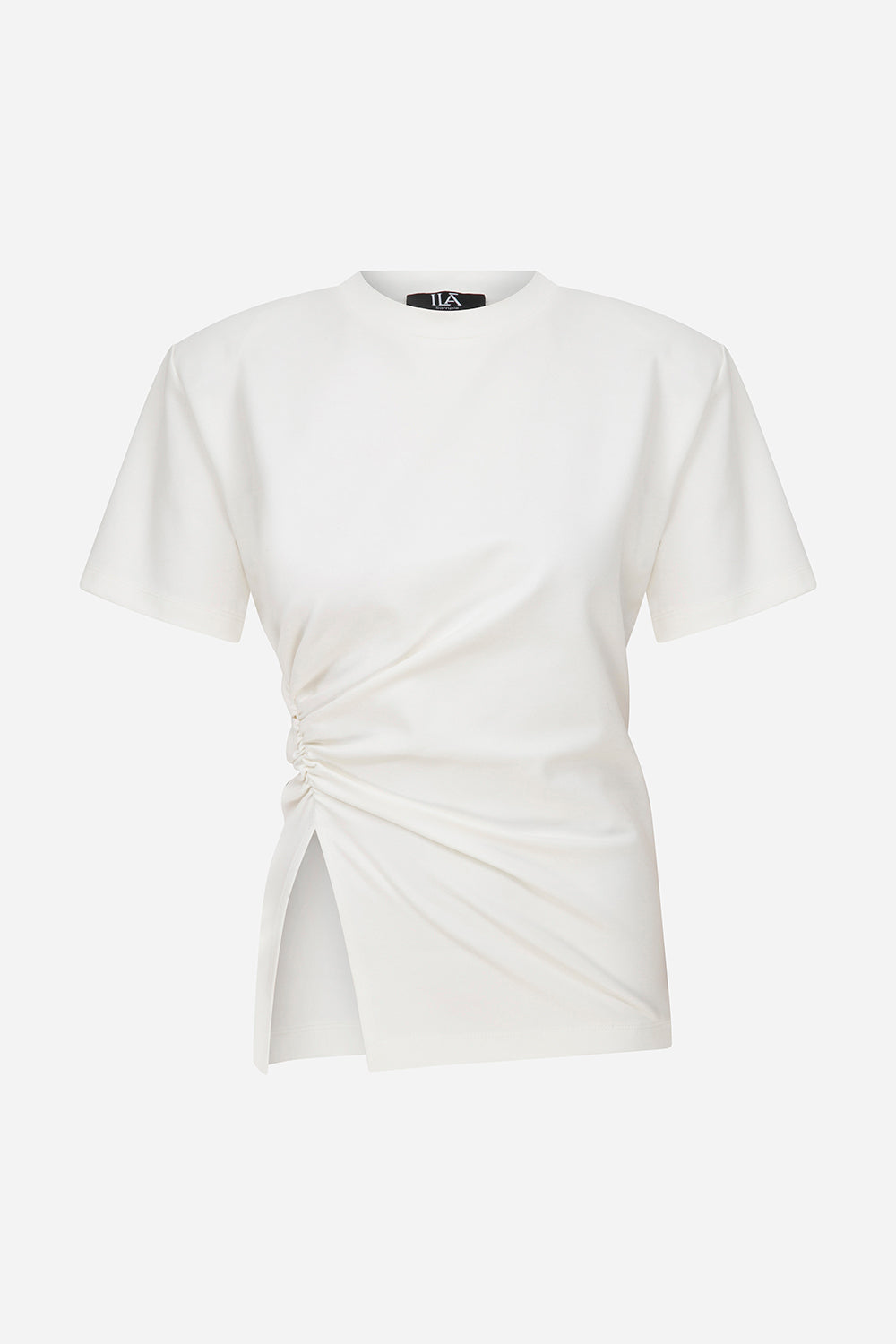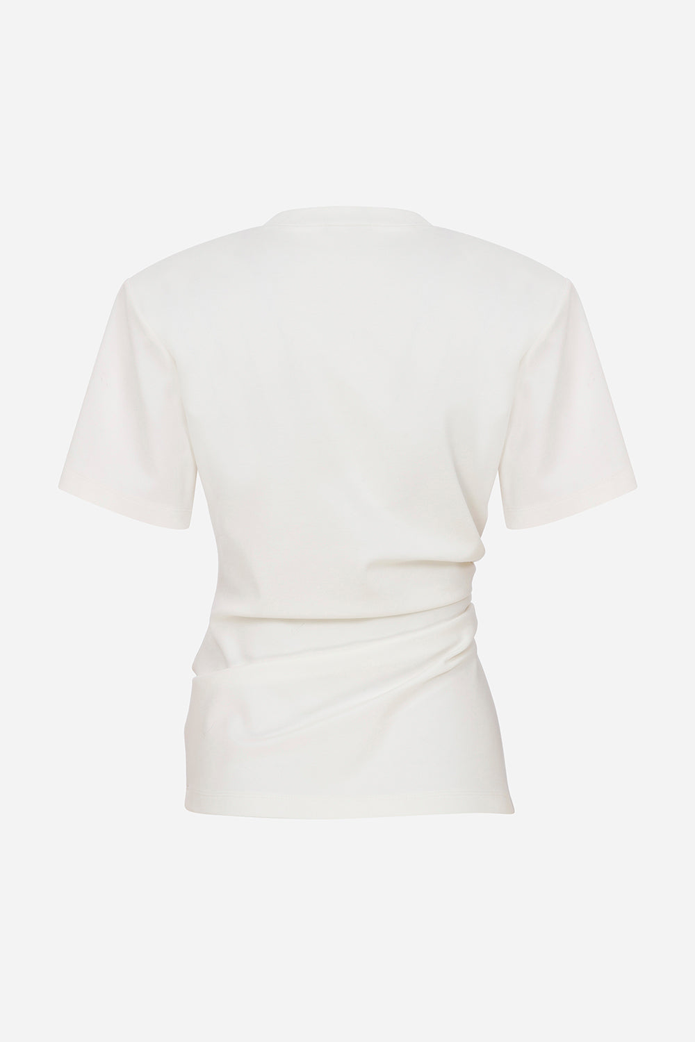 Lilia - Draped T-Shirt With Shoulder Pads in White