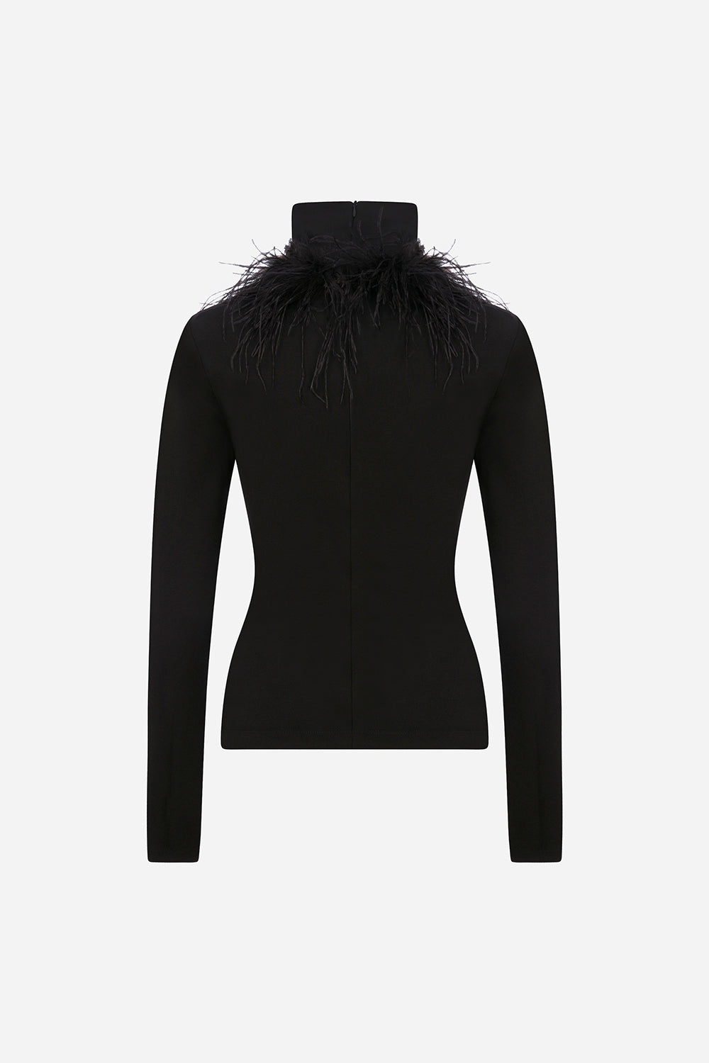 Mia - Ostrich Feather Detailed Turtle Neck Top