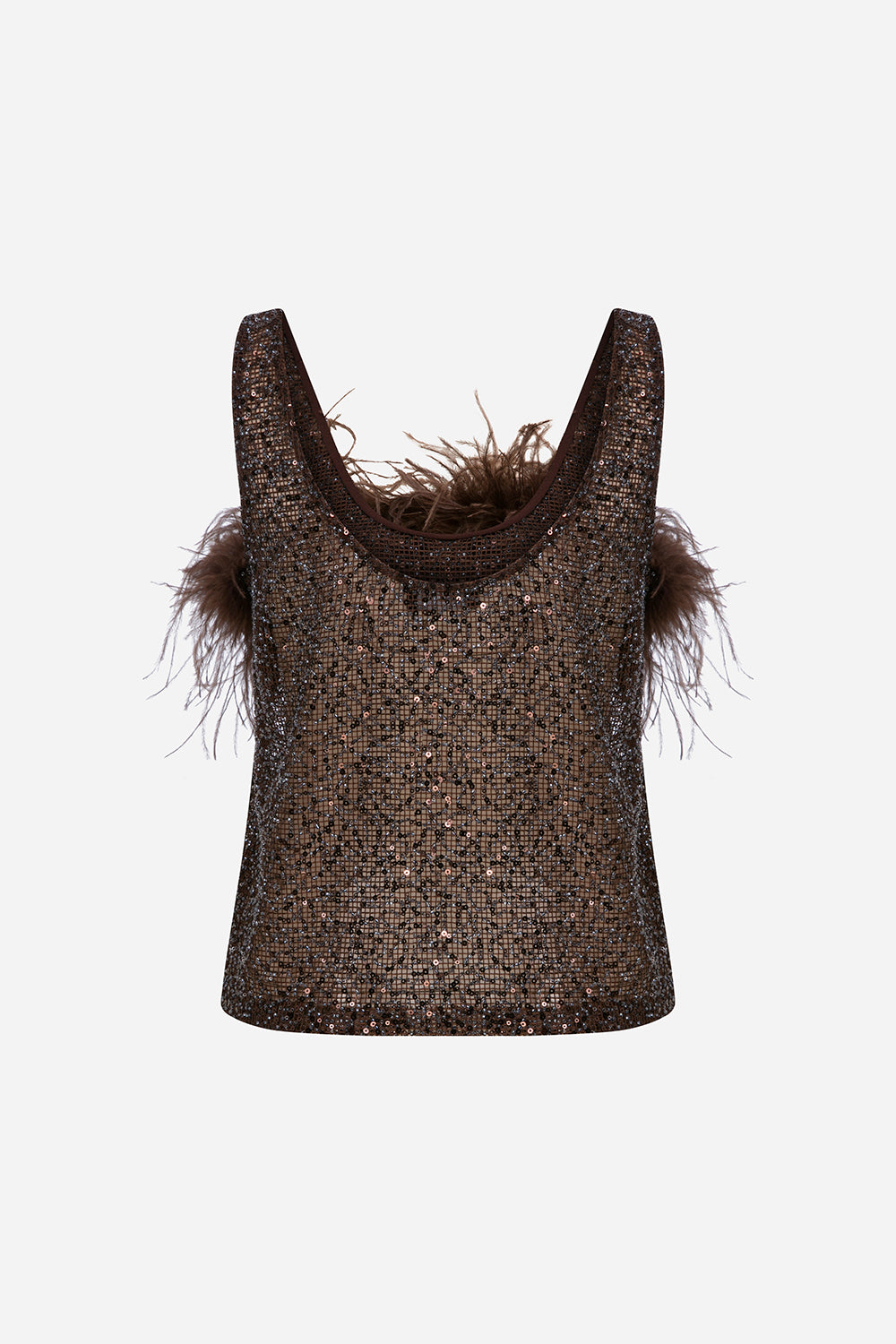 Reve - Ostrich Feather Detailed Sequin Top in Brown