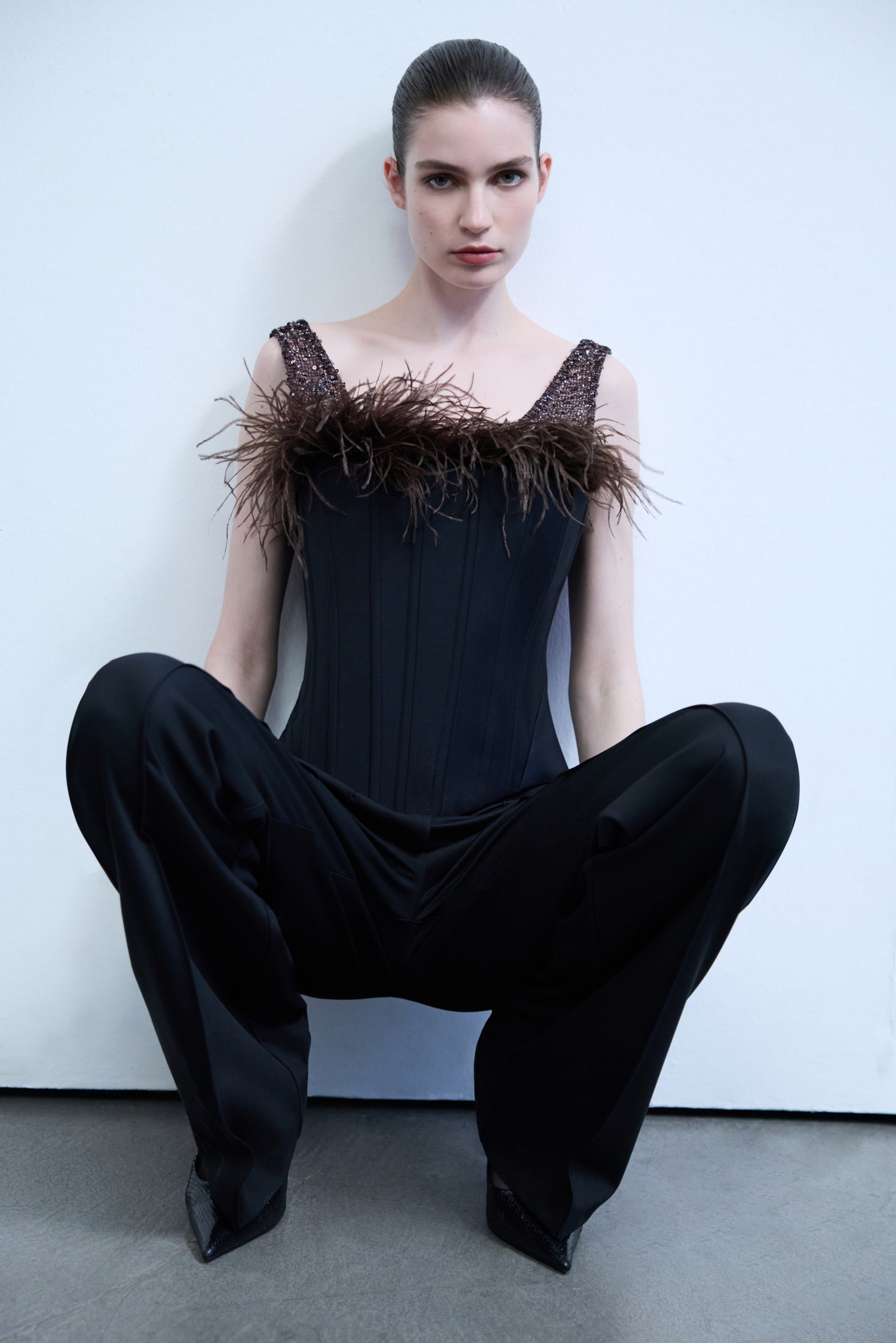- Ostrich Feather Detailed Sequin Top