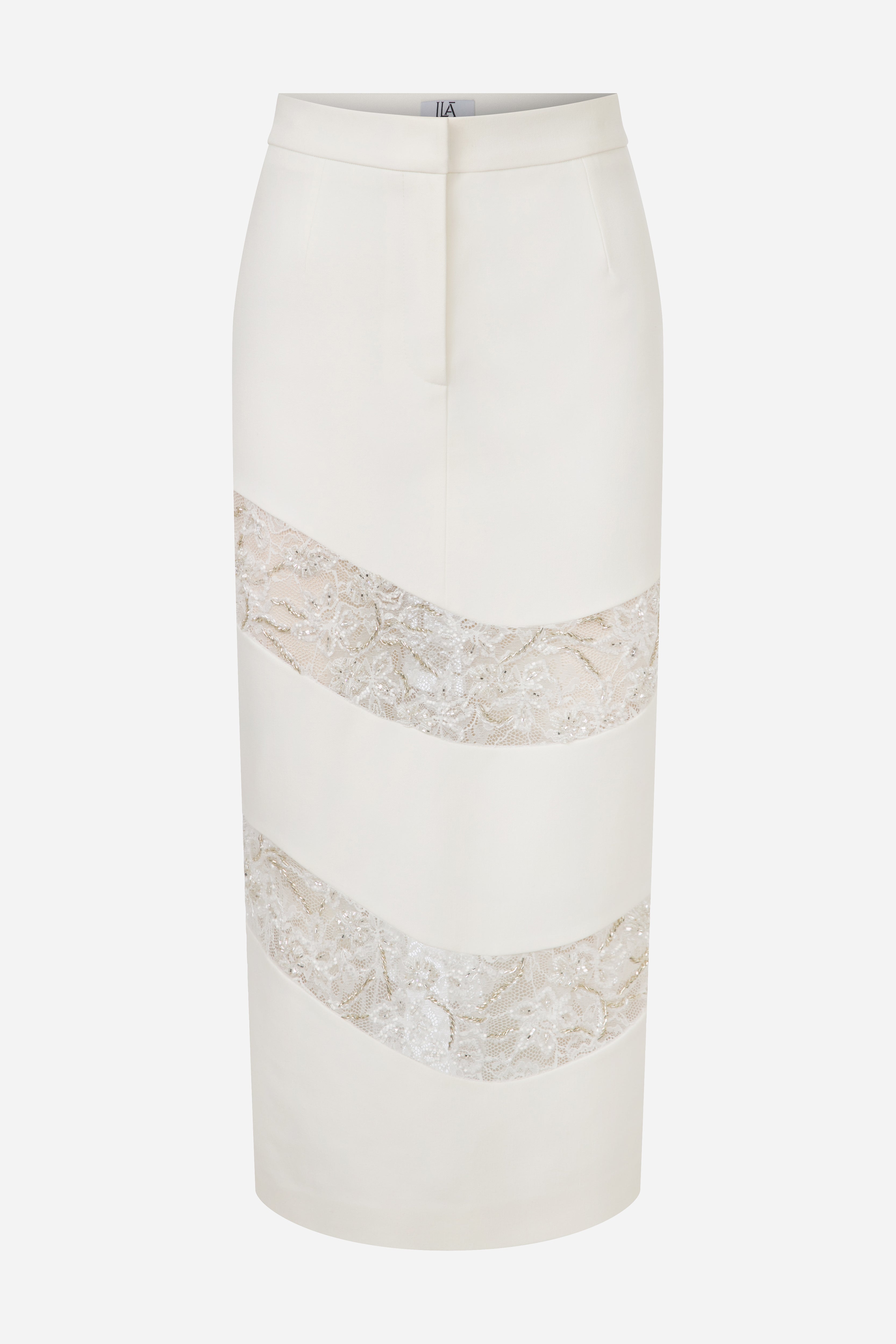 - Midi Skirt with Hand-Embroidered Lace Details