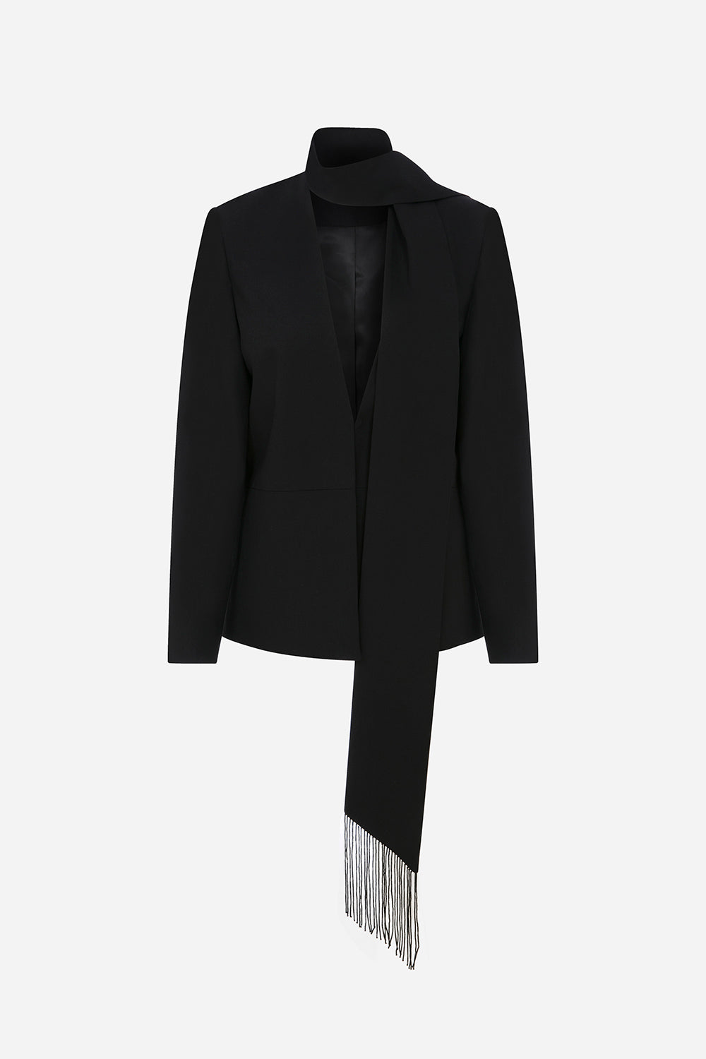 Roxy - Boxy Blazer With Beaded Fringe Detailed Shawl