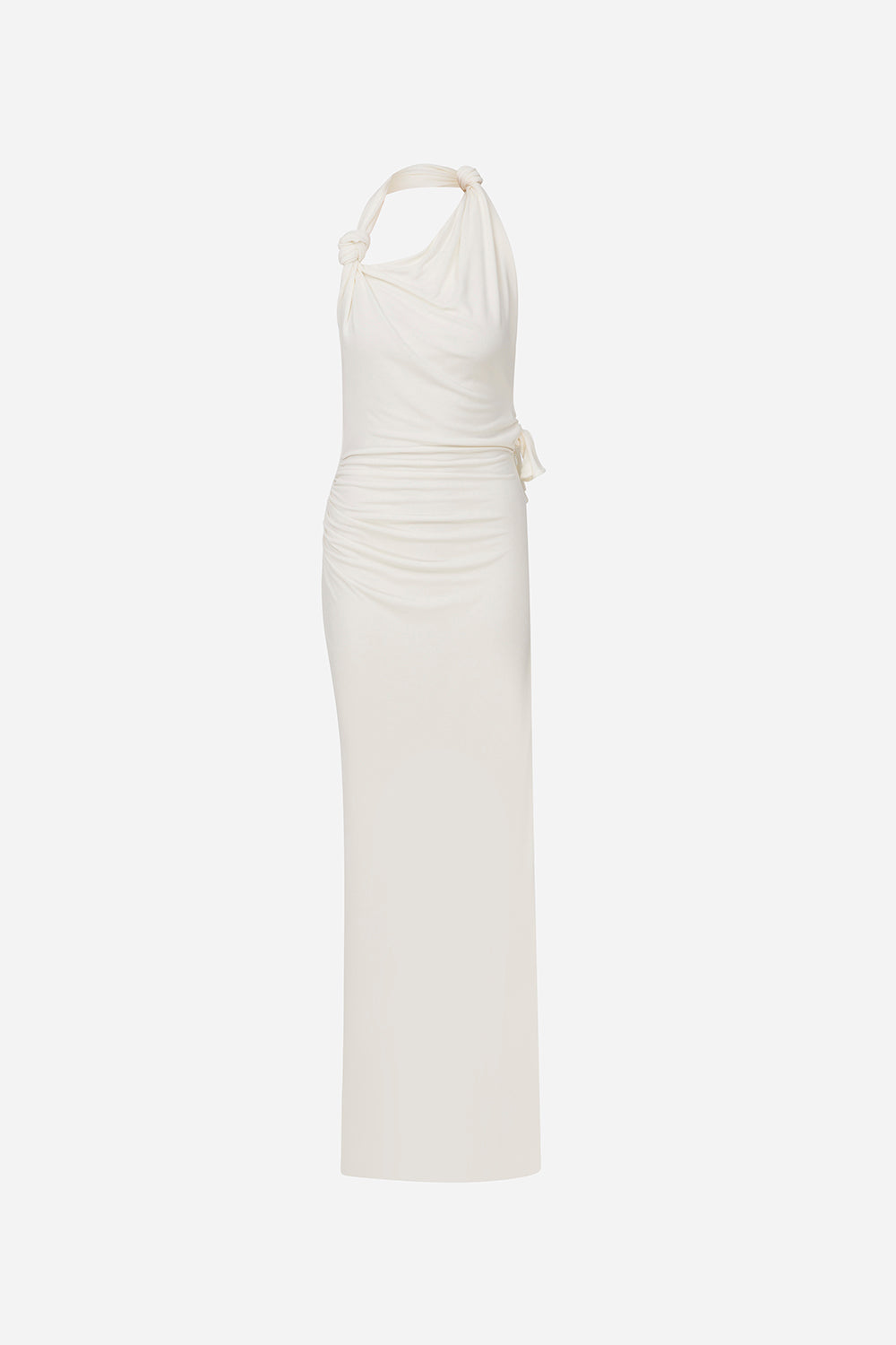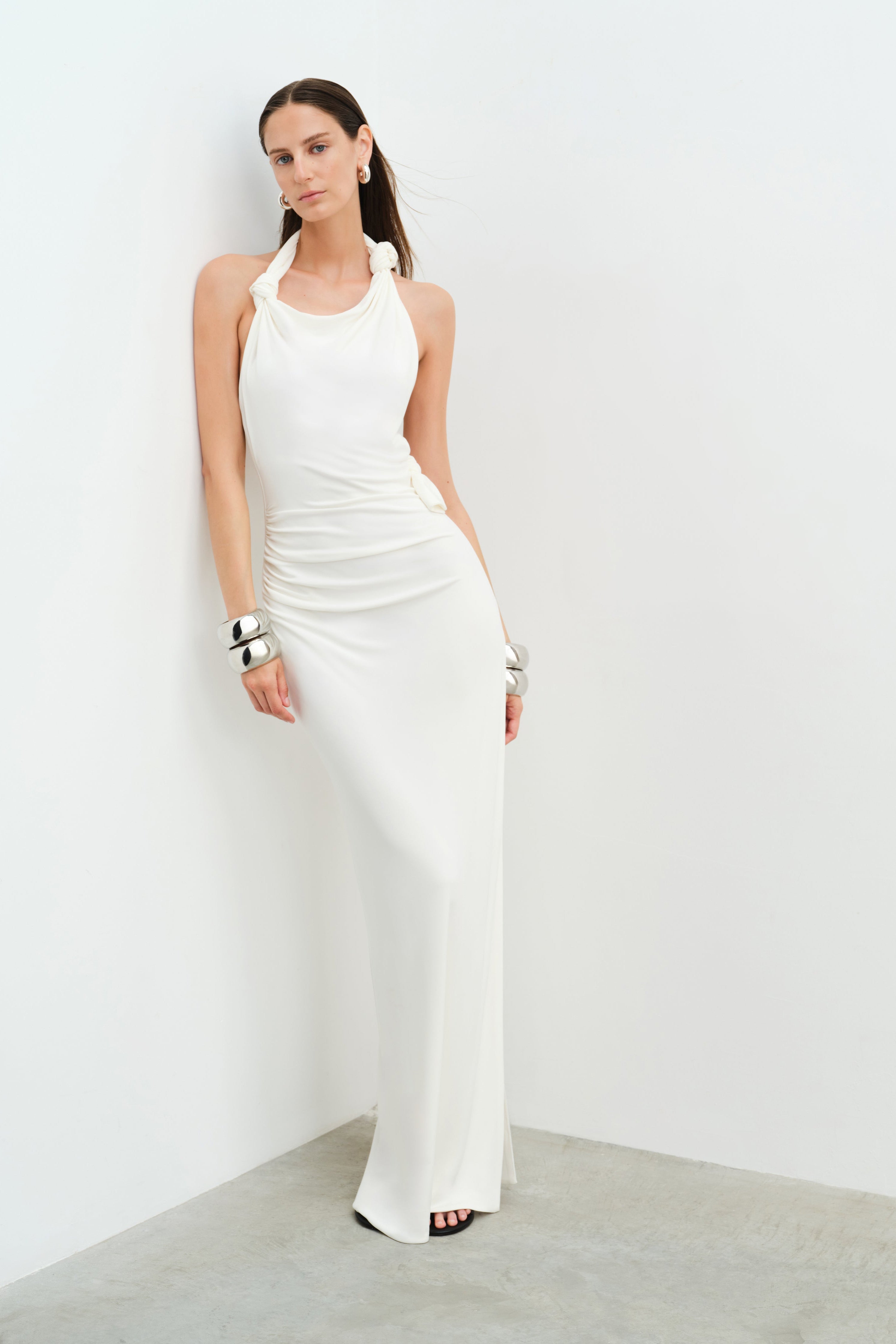 Harper - Asymmetric Cowl Neck Open-Back Jersey Maxi Dress in White