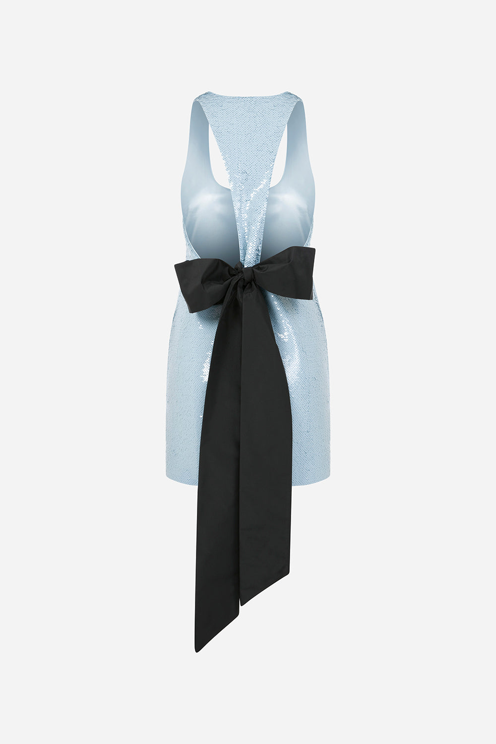 Chita - U Neck Sequin Mini Dress With Bow On The Back