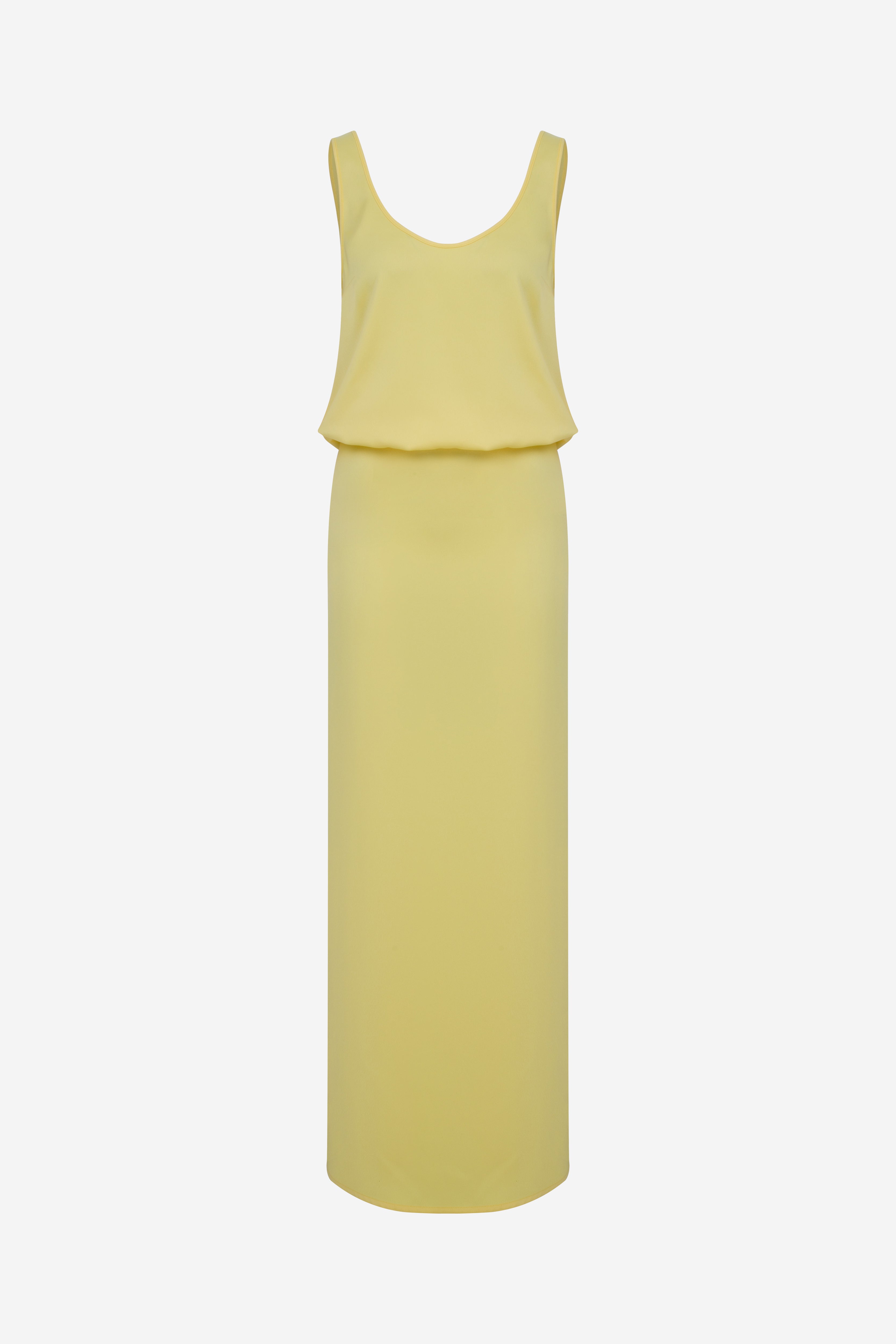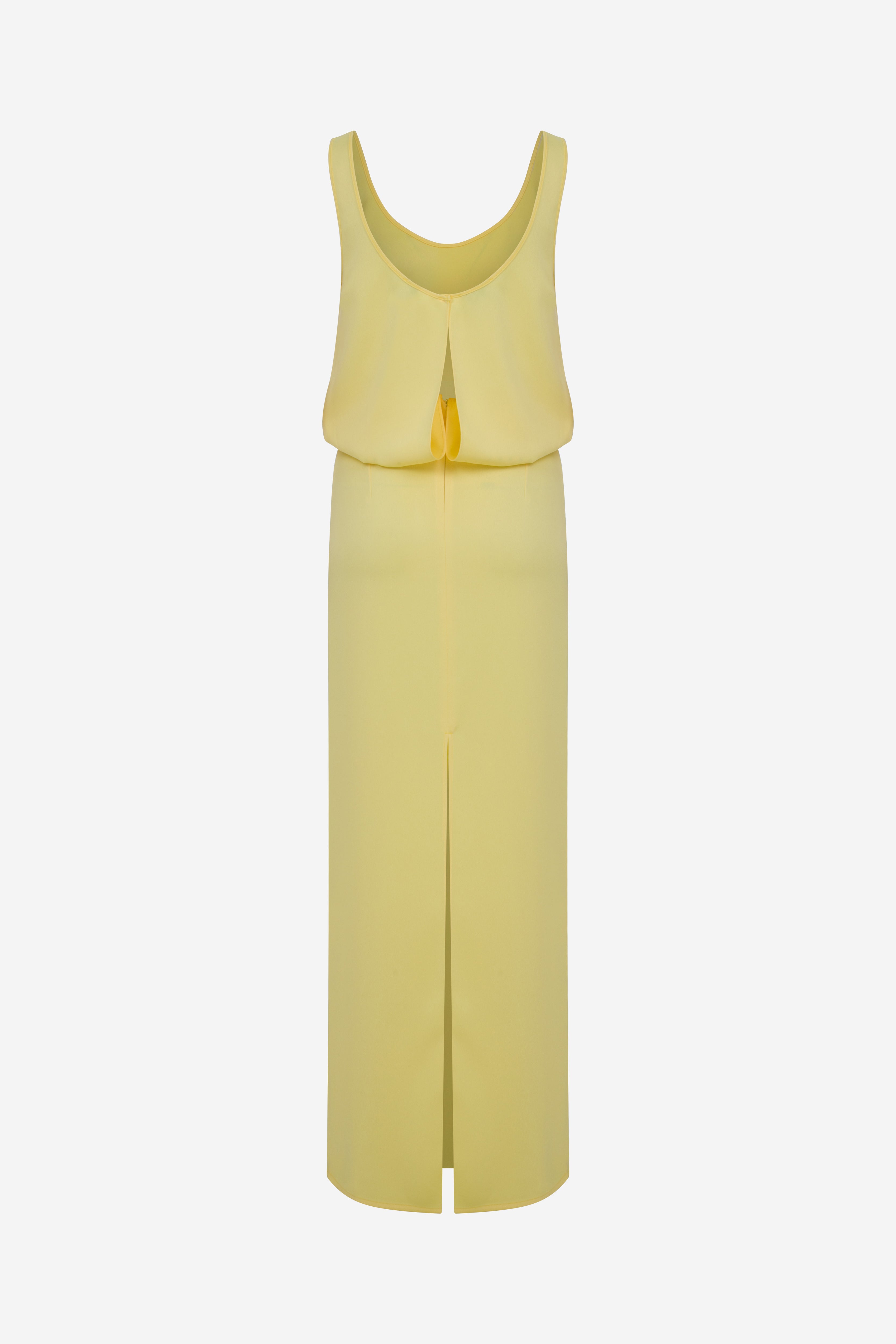 Hilda - U Neck Satin Maxi Dress in Yellow