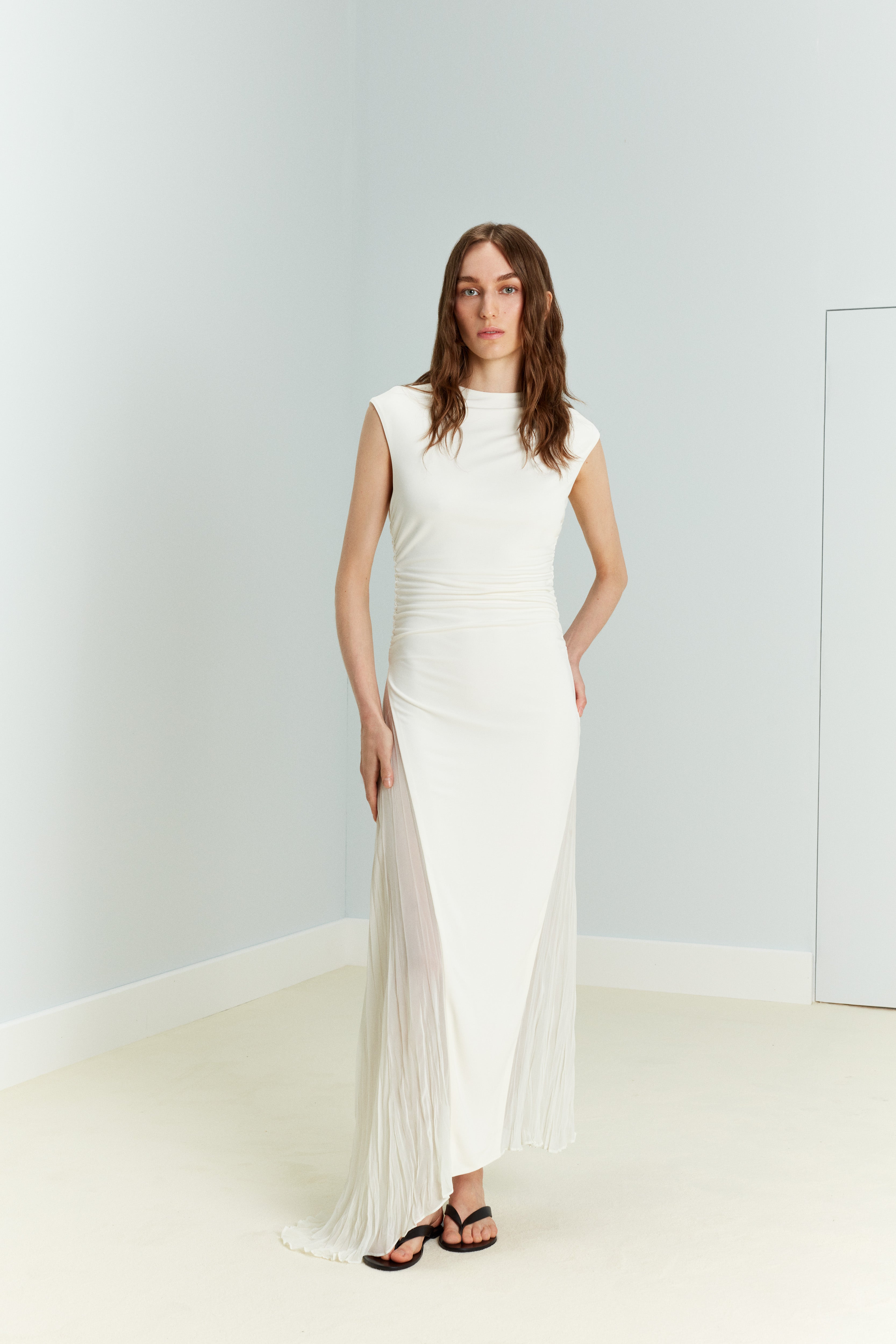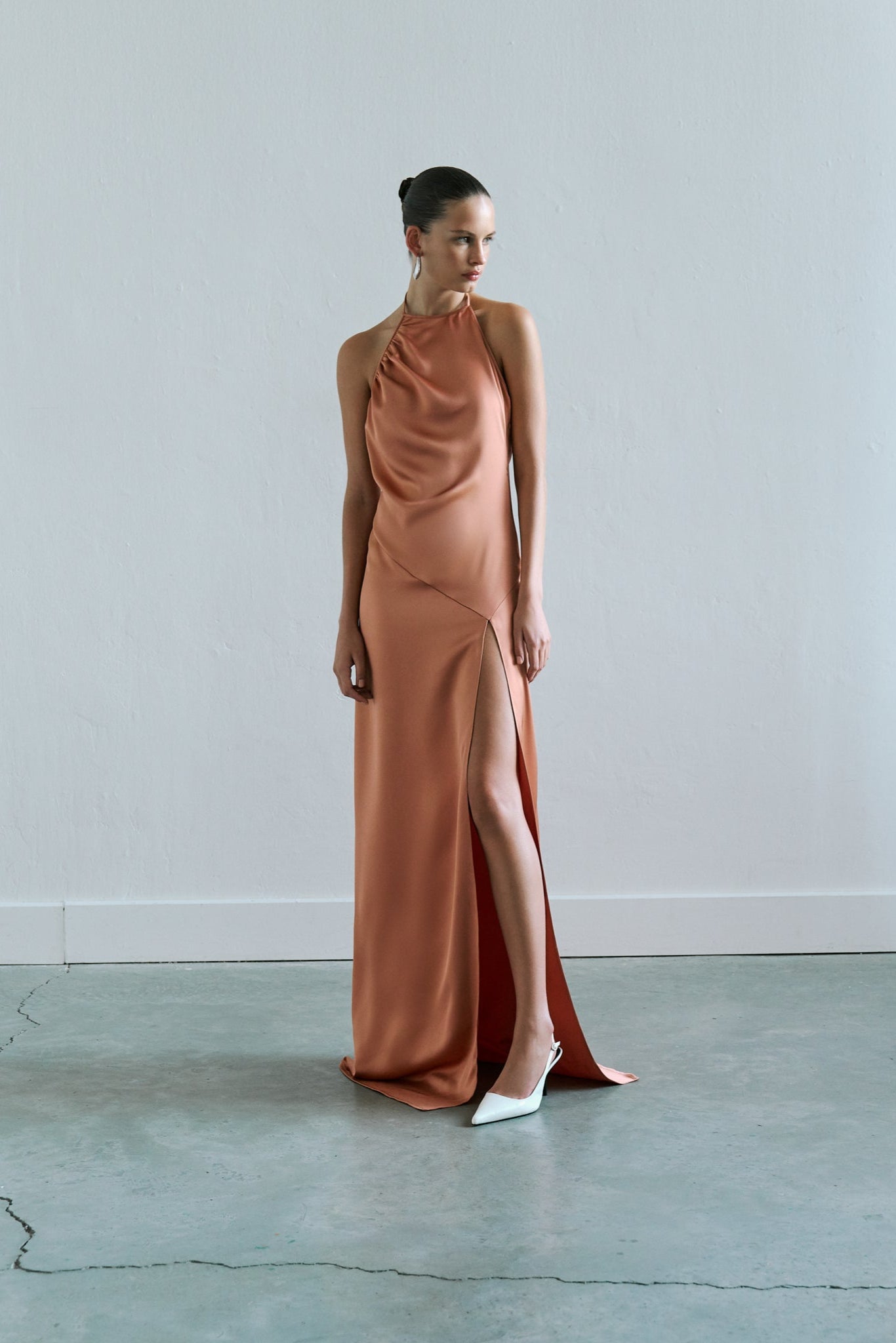 Marissa - Halter Neck Jersey Dress With Crushed Chiffon Details