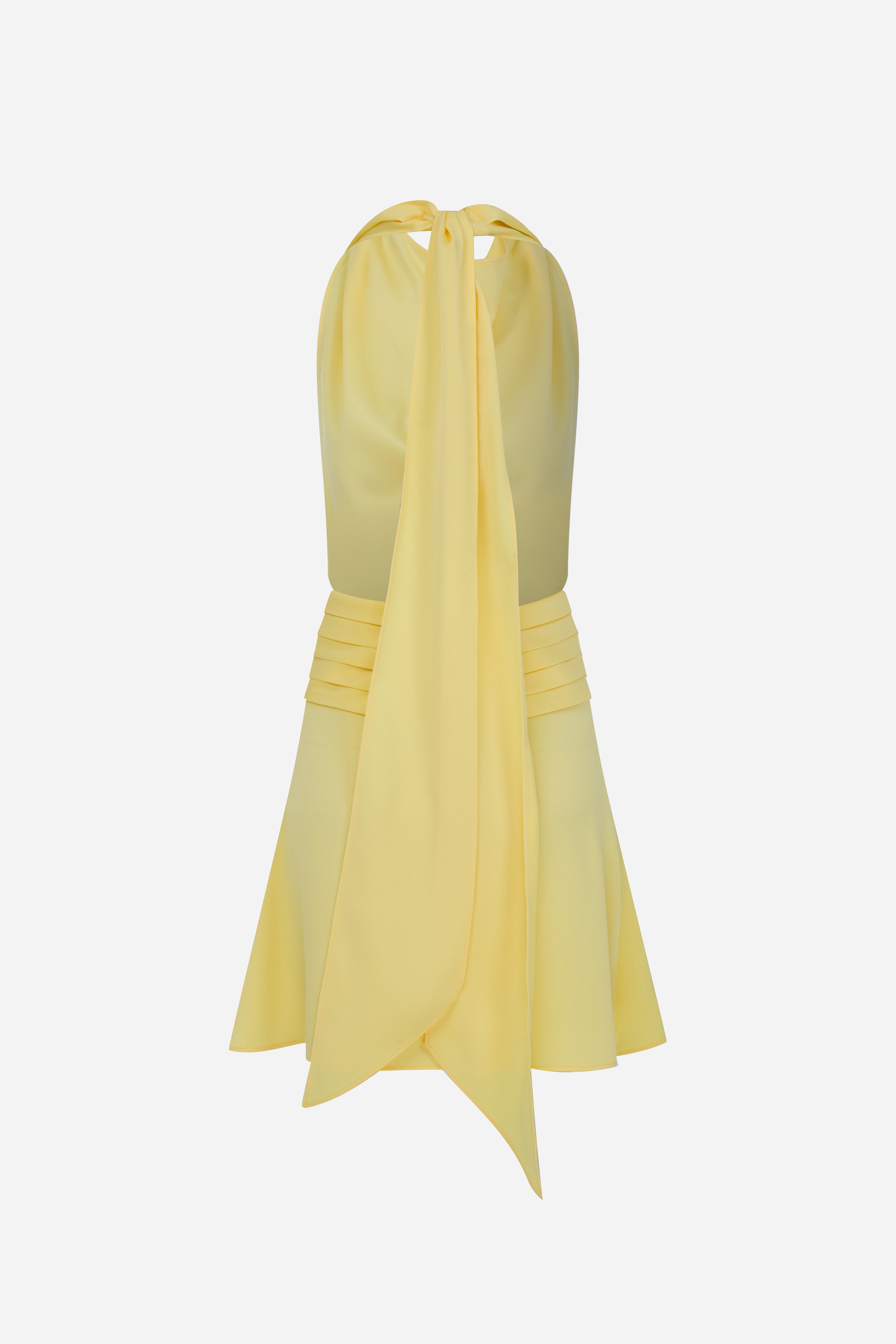 Monica - Draped High Neck Bias Cut Satin Mini Dress in Yellow
