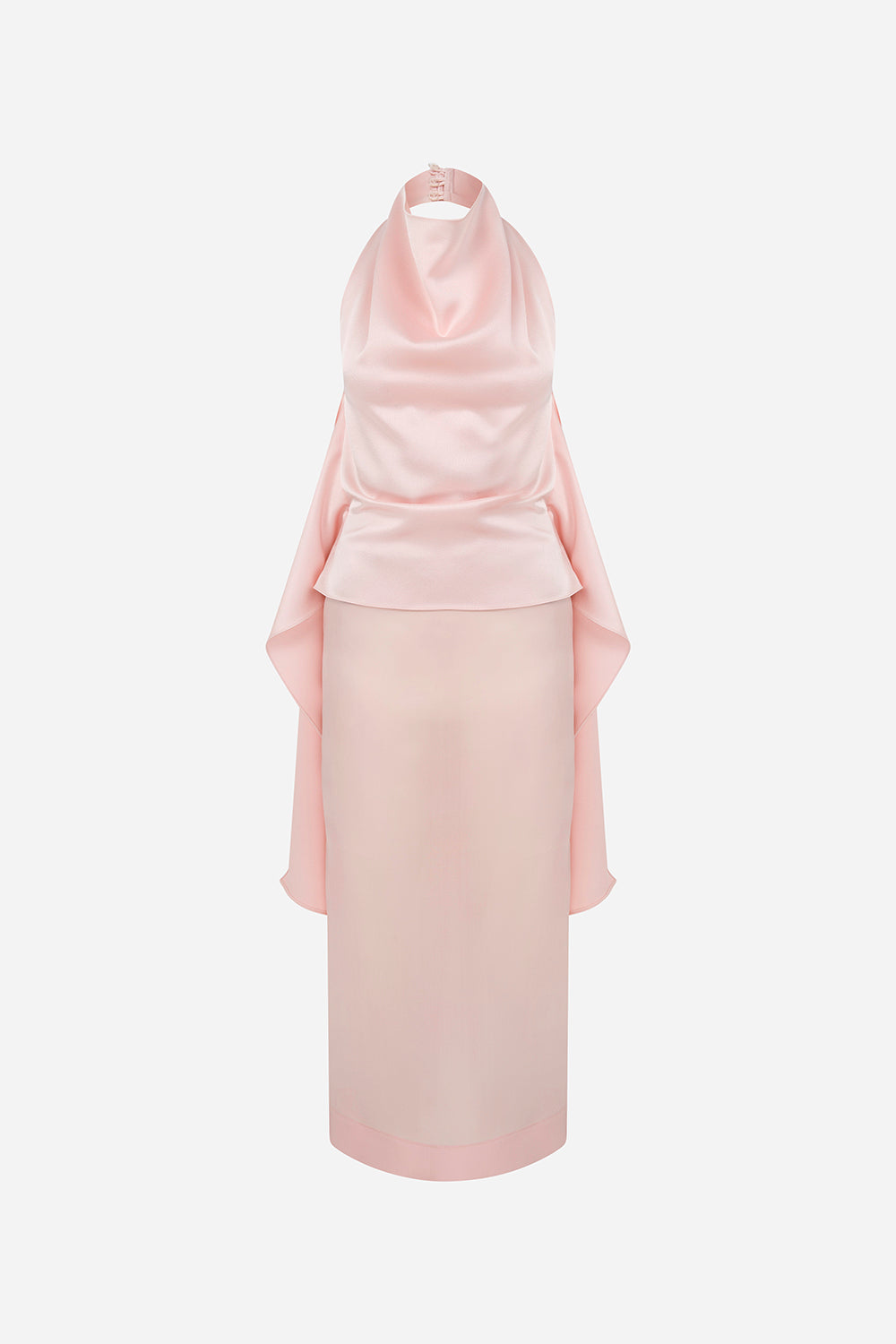 Mercy- Backless Satin Dress With Silk Organza Skirt