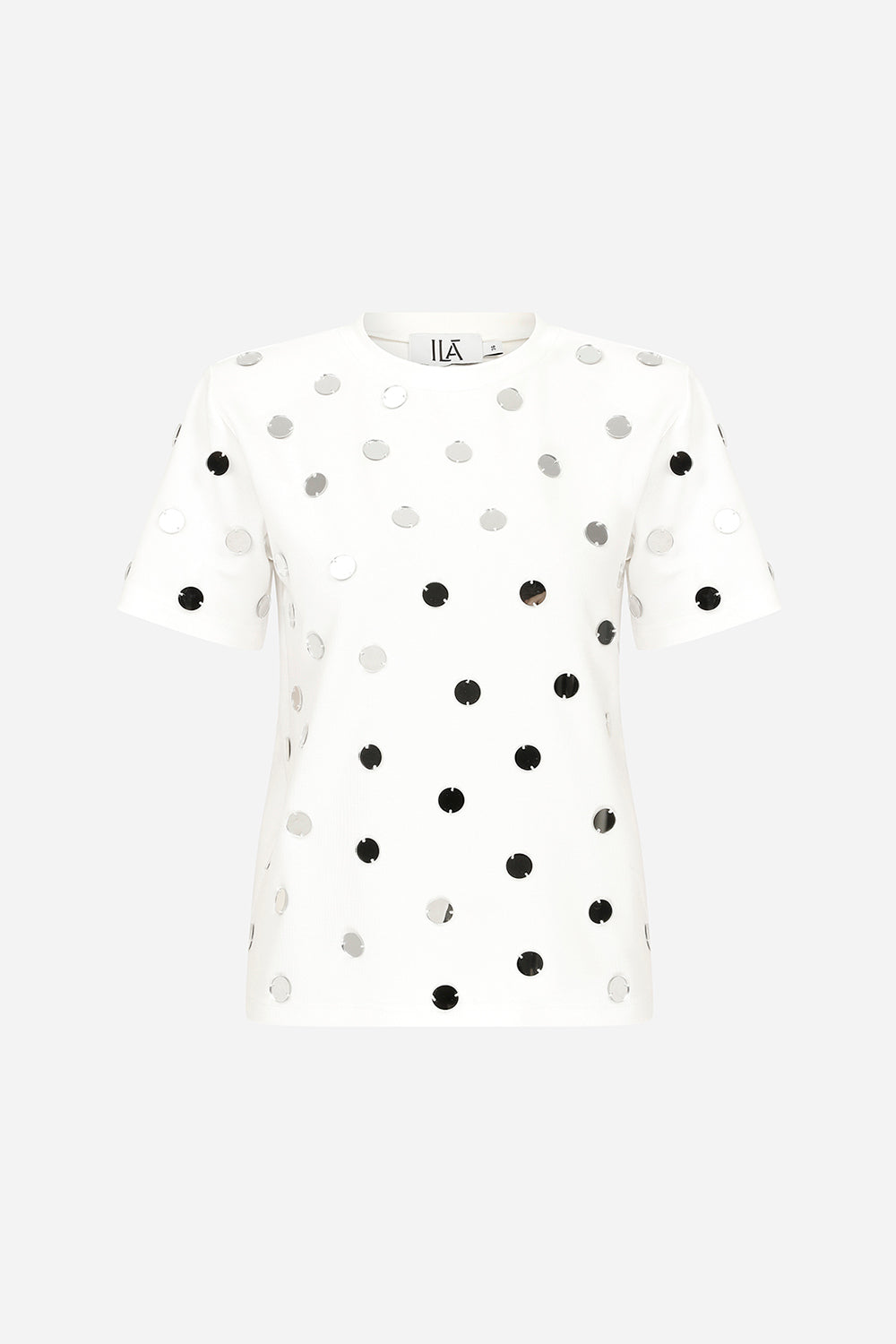 Miro - Handmade Mirror Detailed Tshirt With Shoulder Pads