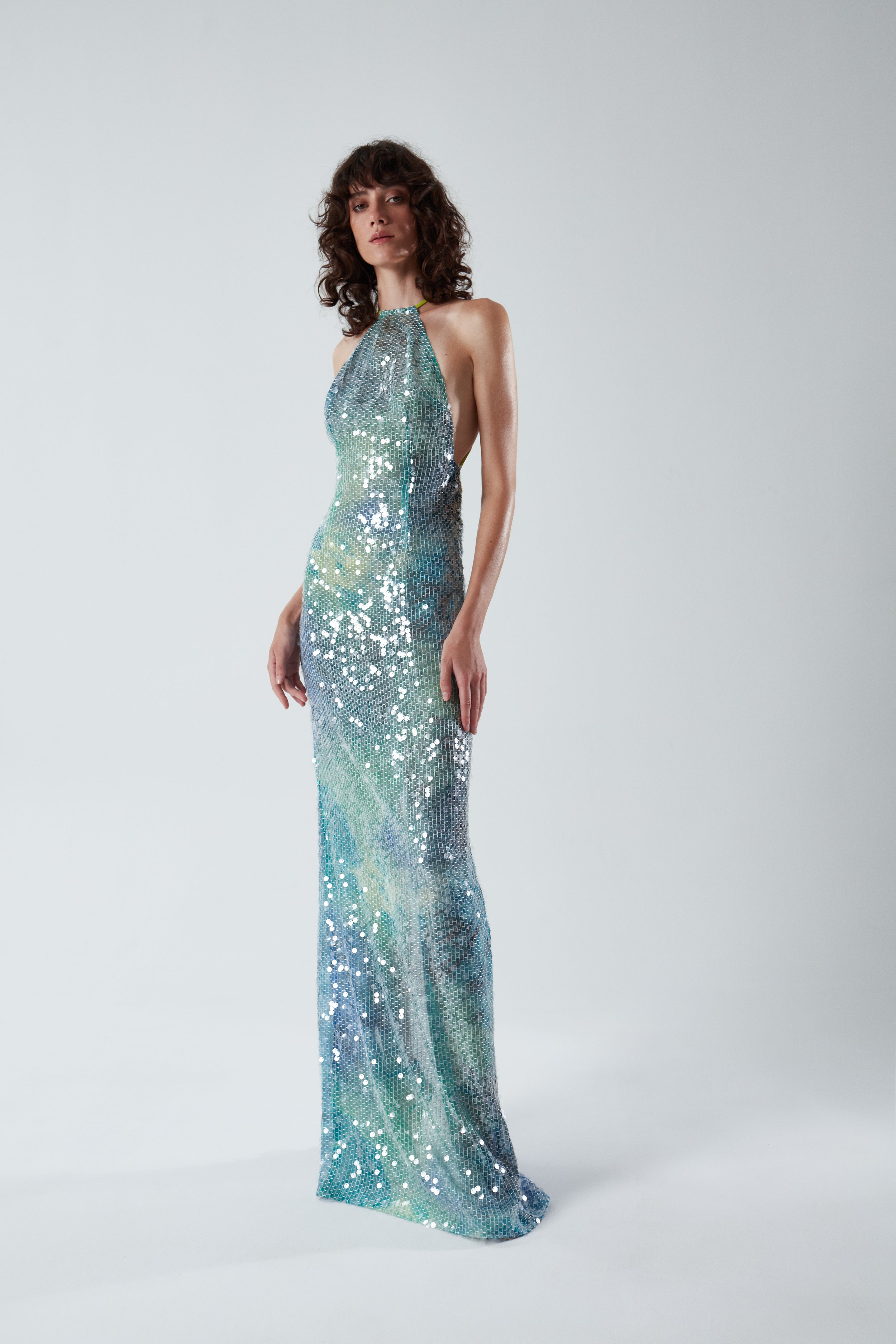 Mer - Gradient Sequin Maxi Dress With Open Back