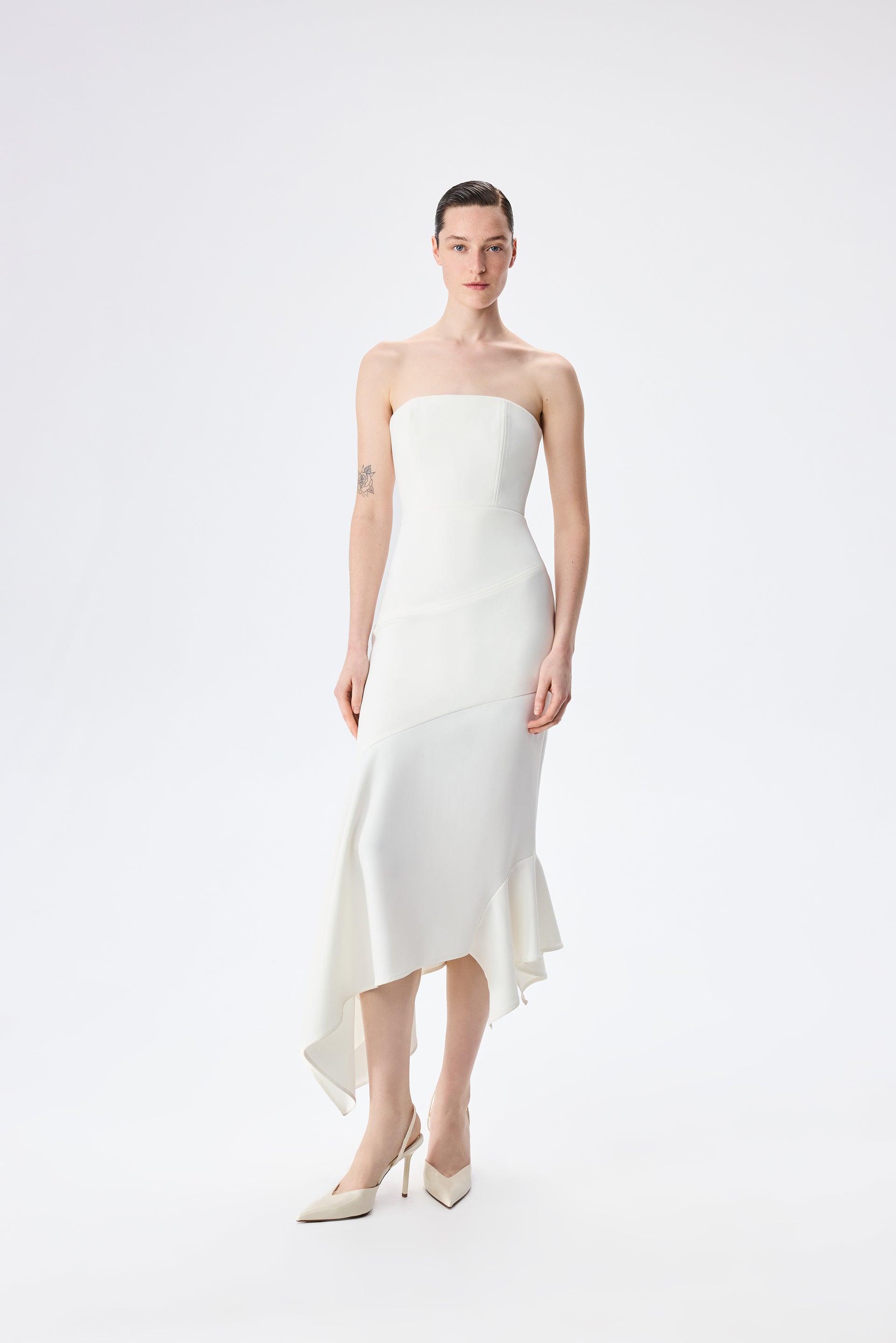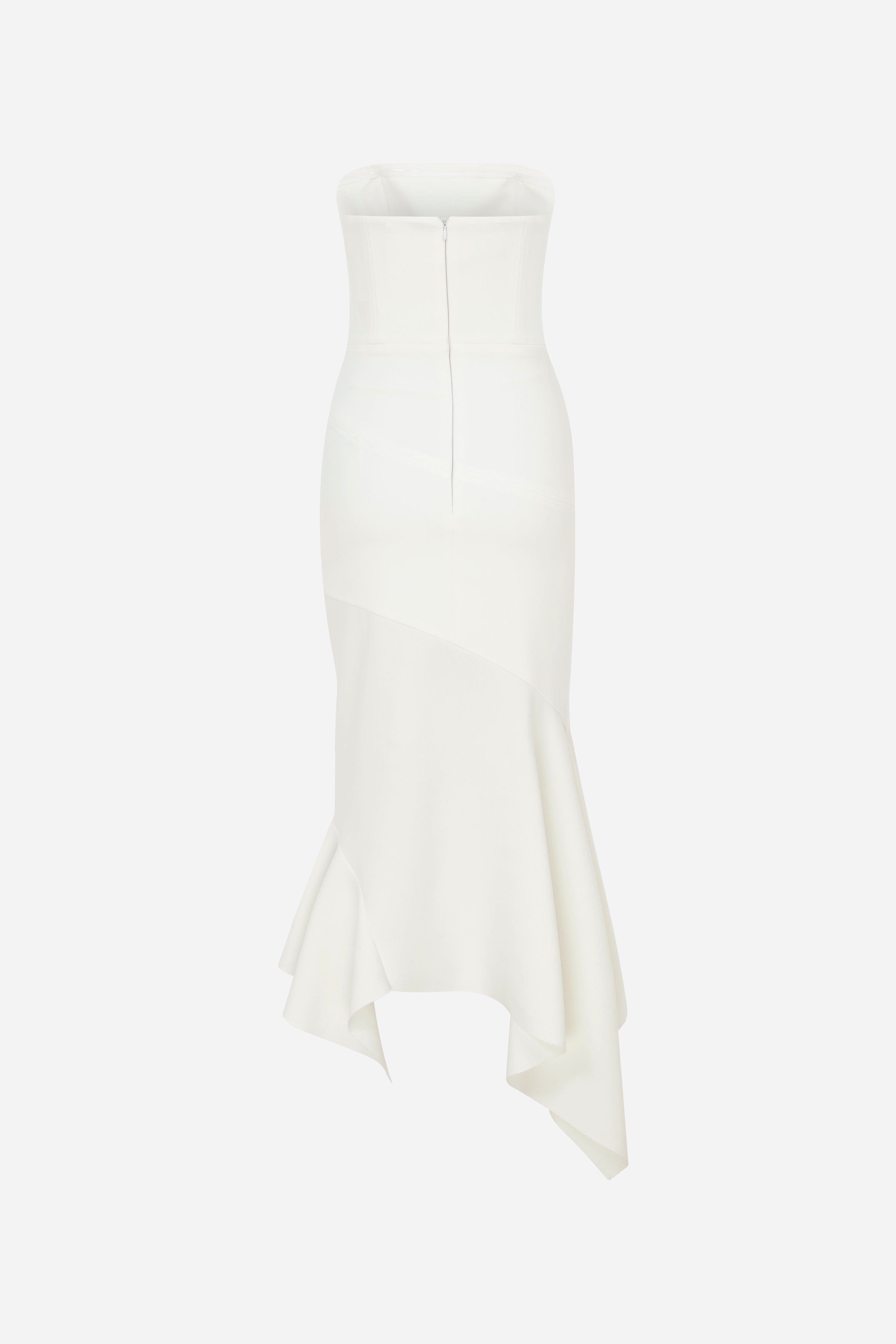- Strapless Midi Dress With Bias Cut Skirt